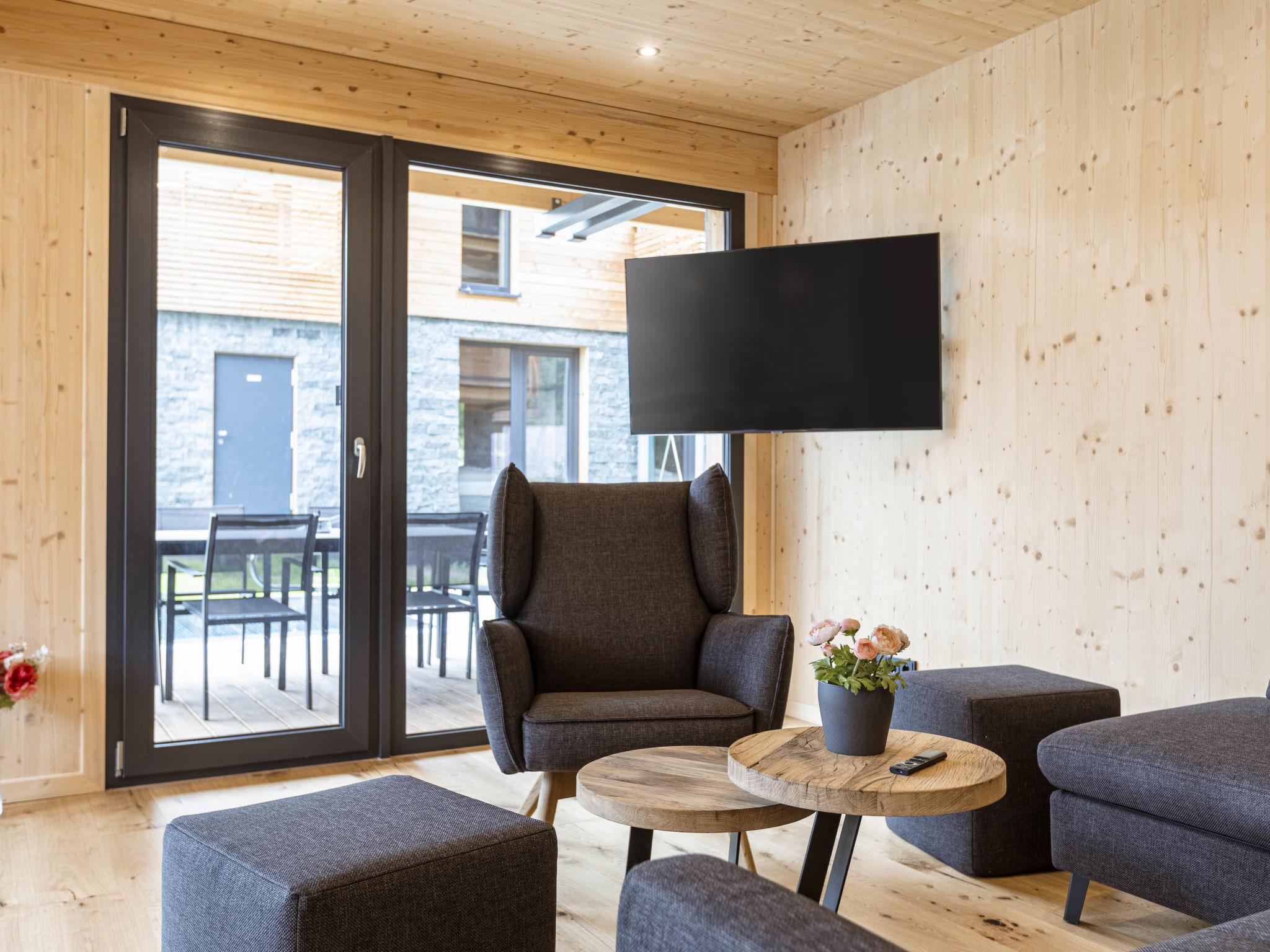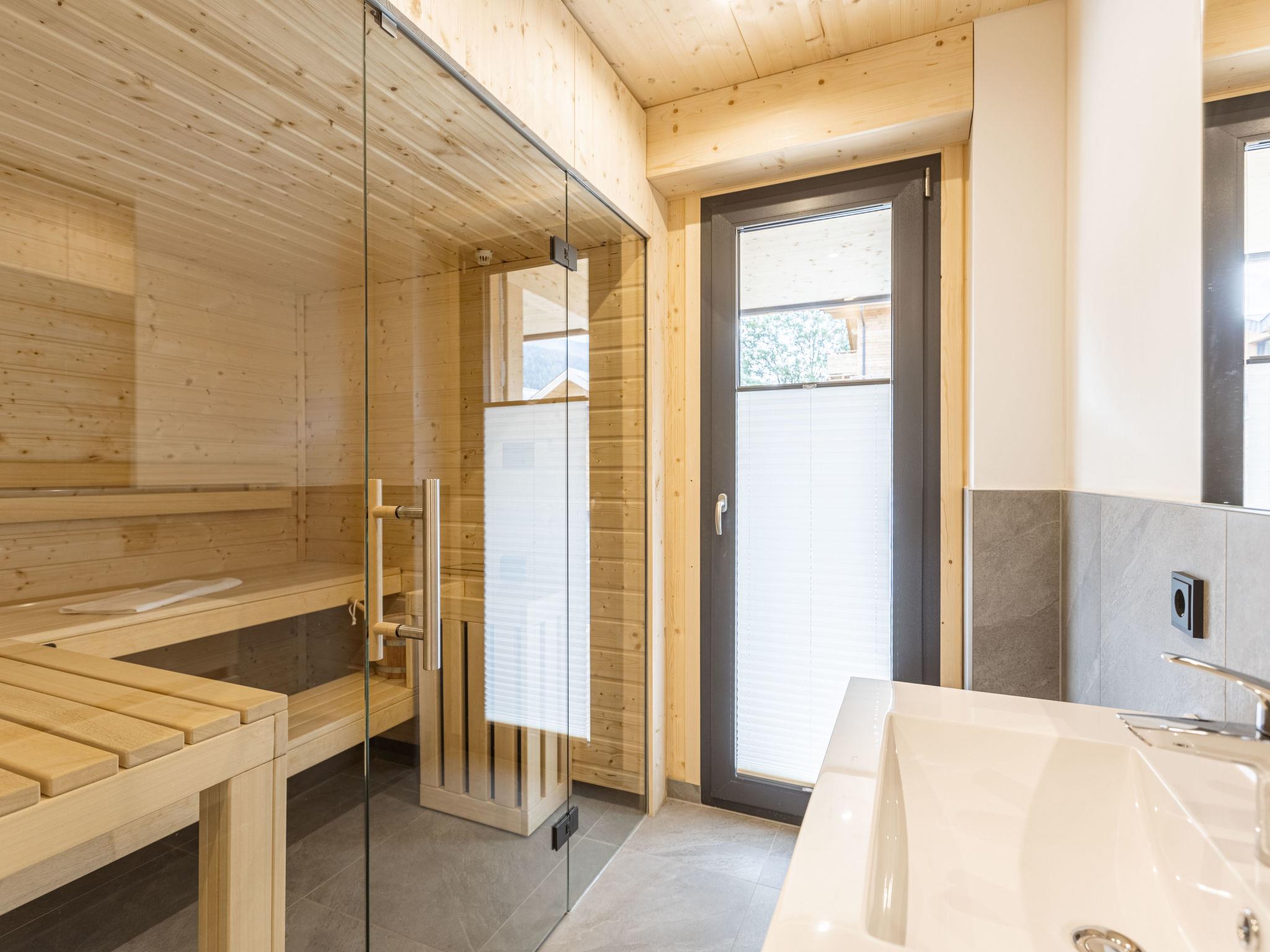" 3a mit Sauna & Pool", 5-room apartment 112 m2, on the ground floor. Spacious and bright, tasteful furnishings: living/sleeping room with dining nook and satellite TV (flat screen). 1 double bedroom with shower/WC. 1 room with 1 x 2 bunk beds, 1 double bed. 2 double bedrooms. Open kitchen (oven, dishwasher, 4 ceramic glass hob hotplates, microwave, grill, electric coffee machine). 2 showers/WC, sep. WC, Sauna. Large terrace 70 m2. Terrace furniture. Beautiful view of the ski run and the countryside. Facilities: Internet (WiFi, free). Please note: non-smokers only. The property is one of a type of property or apartment. The villa has a private heated pool on the terrace.