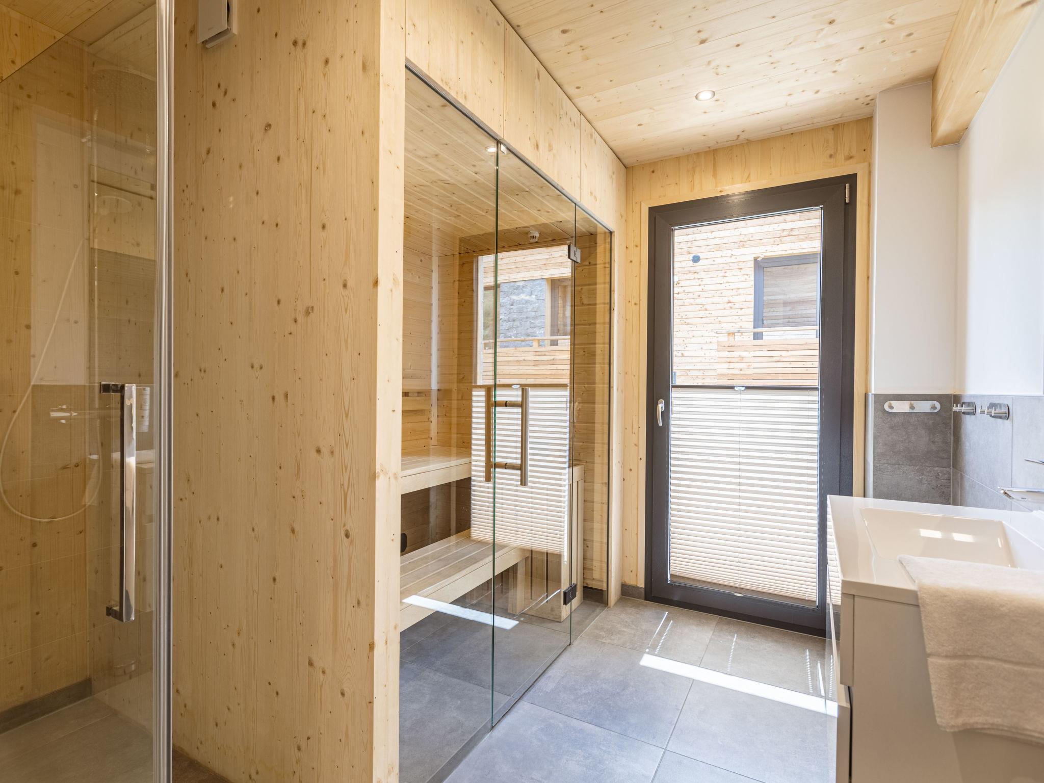 " 5b mit Sauna & Pool", 5-room semi-detached house 115 m2. Spacious and bright, tasteful furnishings: living/sleeping room with dining nook and satellite TV (flat screen). 2 double bedrooms, each room with shower/WC. 1 room with 1 x 2 bunk beds, 1 double bed. 1 double bedroom. Open kitchen (oven, dishwasher, 4 ceramic glass hob hotplates, toaster, kettle, microwave, electric coffee machine). 2 showers/WC, sep. WC, Sauna. Large terrace. Terrace furniture. Beautiful view of the ski run and the countryside. Facilities: Internet (WiFi, free). Please note: non-smokers only. The property is one of a type of property or apartment. The villa has a private, heated pool on the terrace.