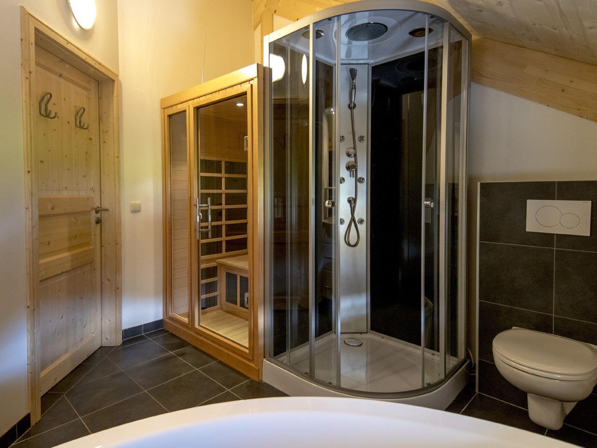 "mit 4 SZ,Sauna o.IR-Sauna+Sprudelbad", 5-room chalet 100 m2 on 2 levels. Bright, comfortable and wooden furniture furnishings: large living/dining room with dining table and satellite TV (flat screen). 3 double bedrooms. 1 room with 1 x 2 bunk beds. Open kitchen (oven, dishwasher, 4 ceramic glass hob hotplates, microwave, electric coffee machine). 2 showers/WC, hydro massage shower, hydro massage bath. Terrace. Terrace furniture. Beautiful view of the ski run. Facilities: Internet (WiFi, free). Please note: non-smokers only. Smoke alarm. The property is one of a type of property or apartment. The chalet has an outdoor hot tub.