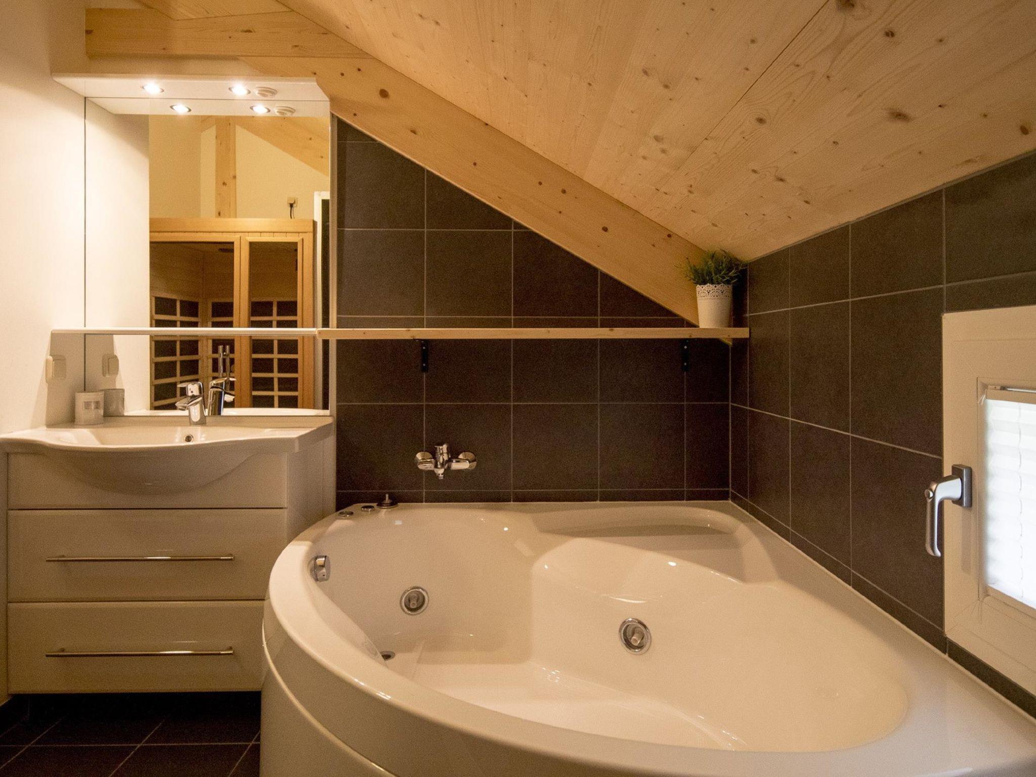 "Superior mit 5 SZ,Sauna o.IR Sauna+SB", 5-room chalet 115 m2 on 2 levels. Bright, comfortable and wooden furniture furnishings: entrance hall. Living/dining room with dining nook and satellite TV (flat screen). 5 double bedrooms. Open kitchen (oven, dishwasher, 4 ceramic glass hob hotplates, microwave, electric coffee machine). 2 showers/WC. Balcony or terrace. Very beautiful view of the mountains and the ski run. Facilities: sauna. Internet (WiFi, free). Please note: non-smoking house. Smoke alarm, fire extinguisher. Private outdoor hot ubs on the terrace. Chalets with 5 bedrooms for an additional charge of € 20, - / day must be requested at the time of booking. A consideration on site is not possible.