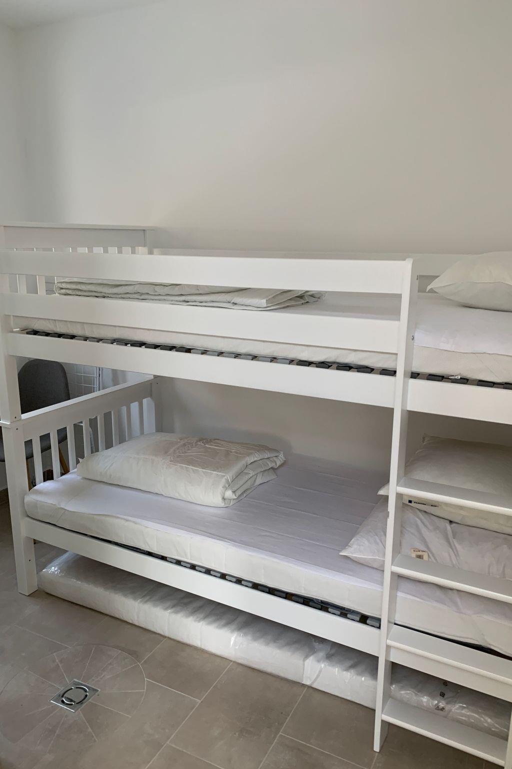 Inside, you are greeted by a large living room with a comfortable sofa and a decorative (non-heated) fireplace. The open-plan kitchen with kitchen island is fully equipped with modern amenities such as an oven, large induction hob, fridge-freezer, microwave, dishwasher and other appliances. Free WiFi, a washing machine and tumble dryer also ensure convenience. Some of the bedrooms are fitted with electric shutters, ensuring a peaceful night's sleep in one of the four bedrooms or on the additional sofa beds.