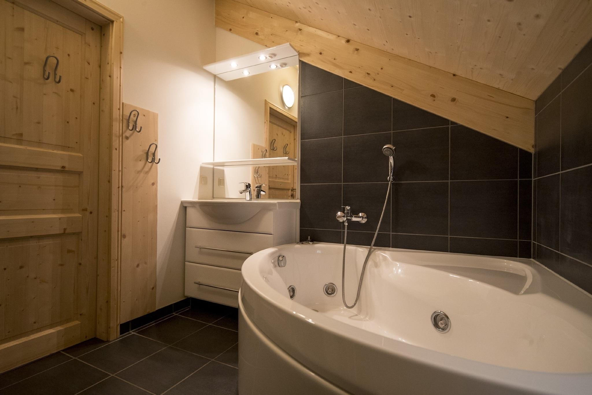 "Velkommen til dit perfekte tilflugtssted i hjertet af Kreischberg! Denne eksklusive hytte, der tilbyder 100 m² stilfuldt og komfortabelt boligareal, er designet til at rumme op til 10 gæster. Uanset om du planlægger en familieferie eller et gruppeeventyr, sikrer denne chalet et afslappende og mindeværdigt ophold. Hytten har fire velindrettede soveværelser: to med dobbeltsenge og to med en kombination af køjesenge og en enkeltseng, der passer til en række forskellige sovearrangementer. De to badeværelser er udstyret med enten et brusebad eller et indendørs spabad, sammen med et toilet, og en hårtørrer er til rådighed for din bekvemmelighed. Beliggende i en topplacering ved Kreischberg-dalstationen, tilbyder hytten nem adgang til skiløb, vandreture og andre udendørs aktiviteter. Derudover giver Murau-Murtal GuestCard, der følger med dit ophold, eksklusive fordele og rabatter på lokale attraktioner. Efter en dag med at udforske de smukke omgivelser eller gå på pisterne, kan du slappe af i den rummelige stue/spisestue. Dette rum har et hyggeligt opholdsområde og et fladskærms-tv, hvilket skaber de ideelle rammer for afslapning og underholdning. Det åbne køkken er fuldt udstyret med alt hvad du behøver, inklusive bestik, køkkengrej, en keramisk kogeplade, ovn, opvaskemaskine og et køleskab med fryser. Du finder også en brødrister, kedel og kaffemaskine sammen med et lille startsæt, der inkluderer opvaskemaskiner, opvaskemiddel (prøve), en svamp, affaldsposer, rengøringsmidler og et viskestykke, hvilket sikrer en jævn ankomst. For dem, der rejser med kæledyr, byder dette hundevenlige feriested dine lodne ledsagere velkommen efter anmodning (mod betaling). Nyd bekvemmeligheden med gratis Wi-Fi og satellit-tv under hele dit ophold.
