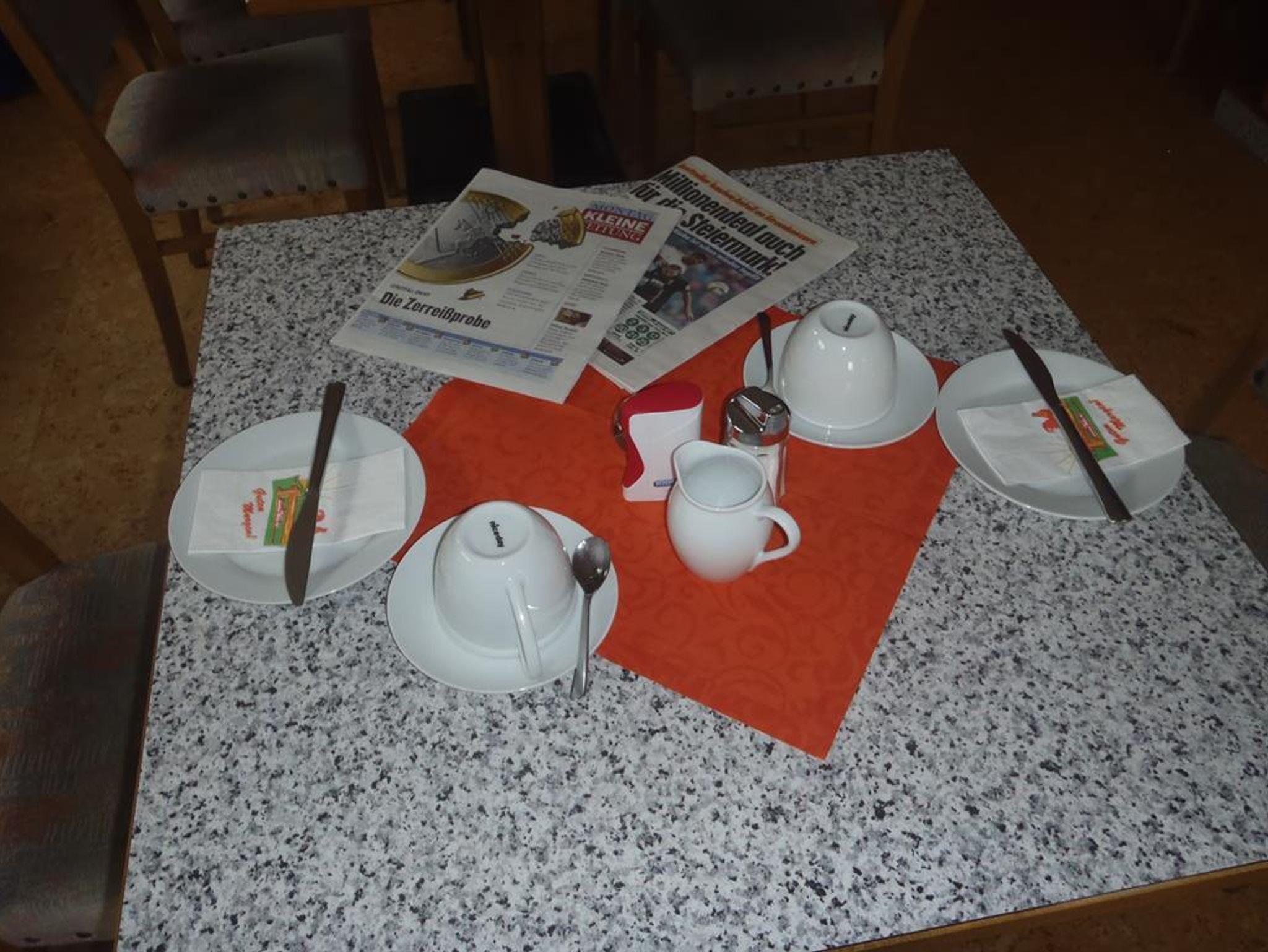 Frühstücksbuffet, WLAN im Zimmer.