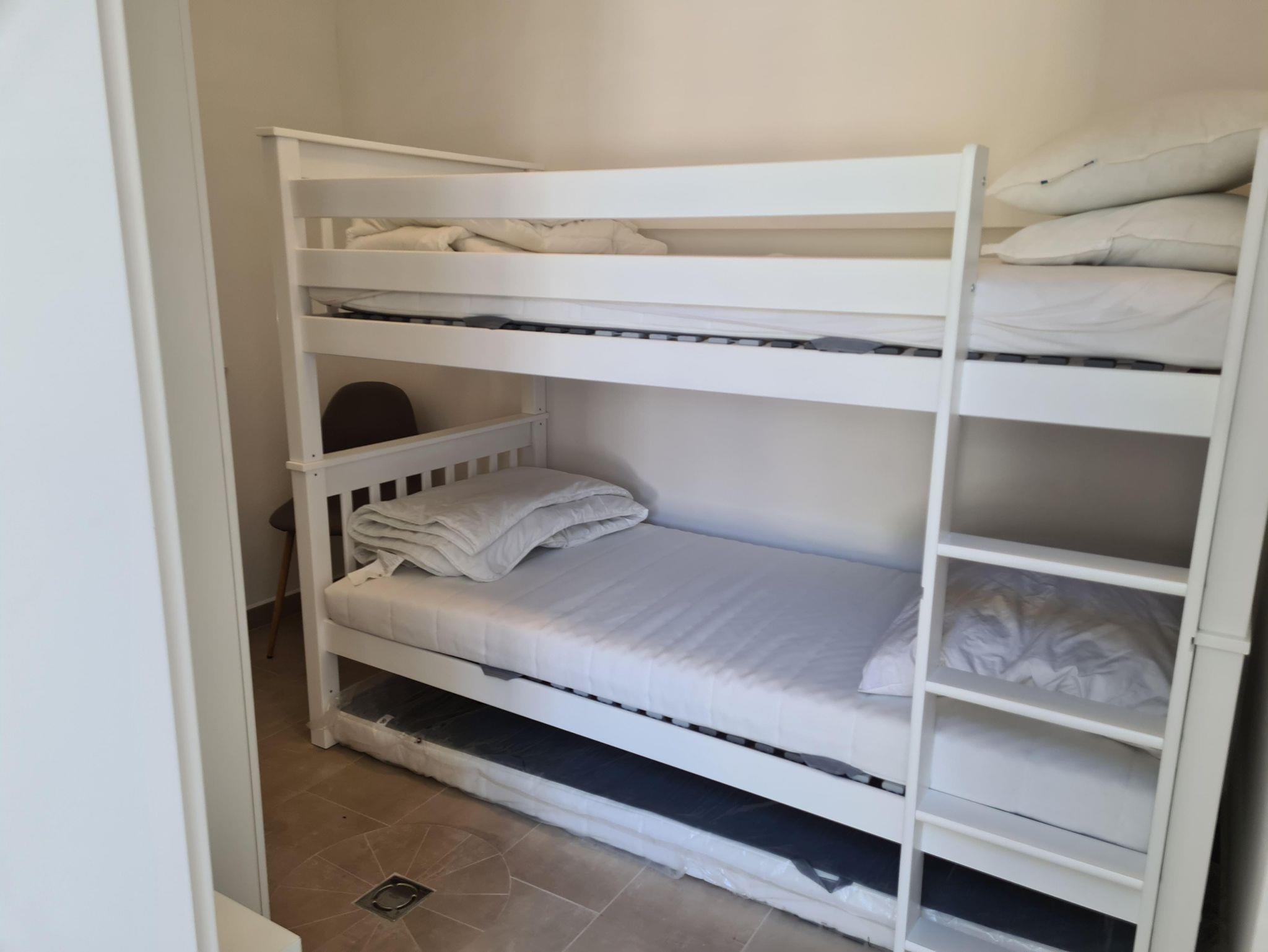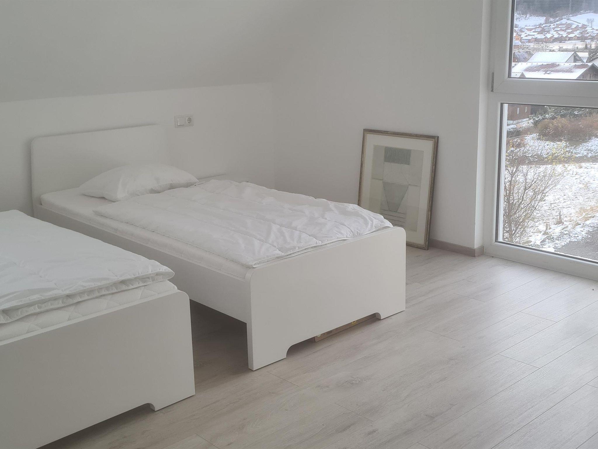 Geruhsame Nachtruhe finden unsere Urlaubsgäste in 4 Schlafzimmern für je 2 Personen. Dabei handelt es sich um 3 Schlafzimmer mit 2 Betten und 1 Schlafzimmer mit Etagenbett. Eine weitere Übernachtungsmöglichkeit bietet das kleine Schlafsofa auf der Galerie und das Schlafsofa im Wohnzimmer.