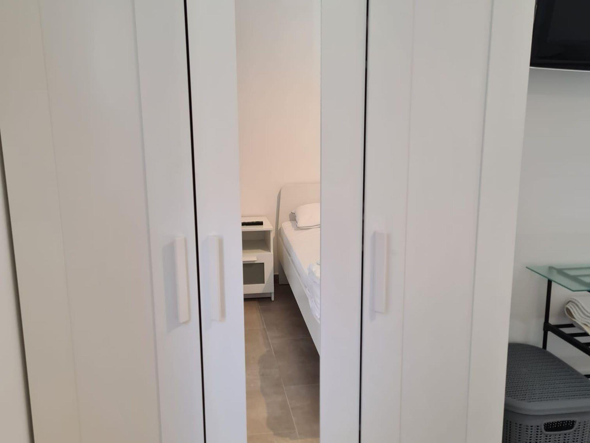 Zur technischen Ausstattung gehören ebenfalls WLAN, Waschmaschine und Trockner. Die Schlafzimmerfenster sind mit elektrischen Rollläden ausgestattet.