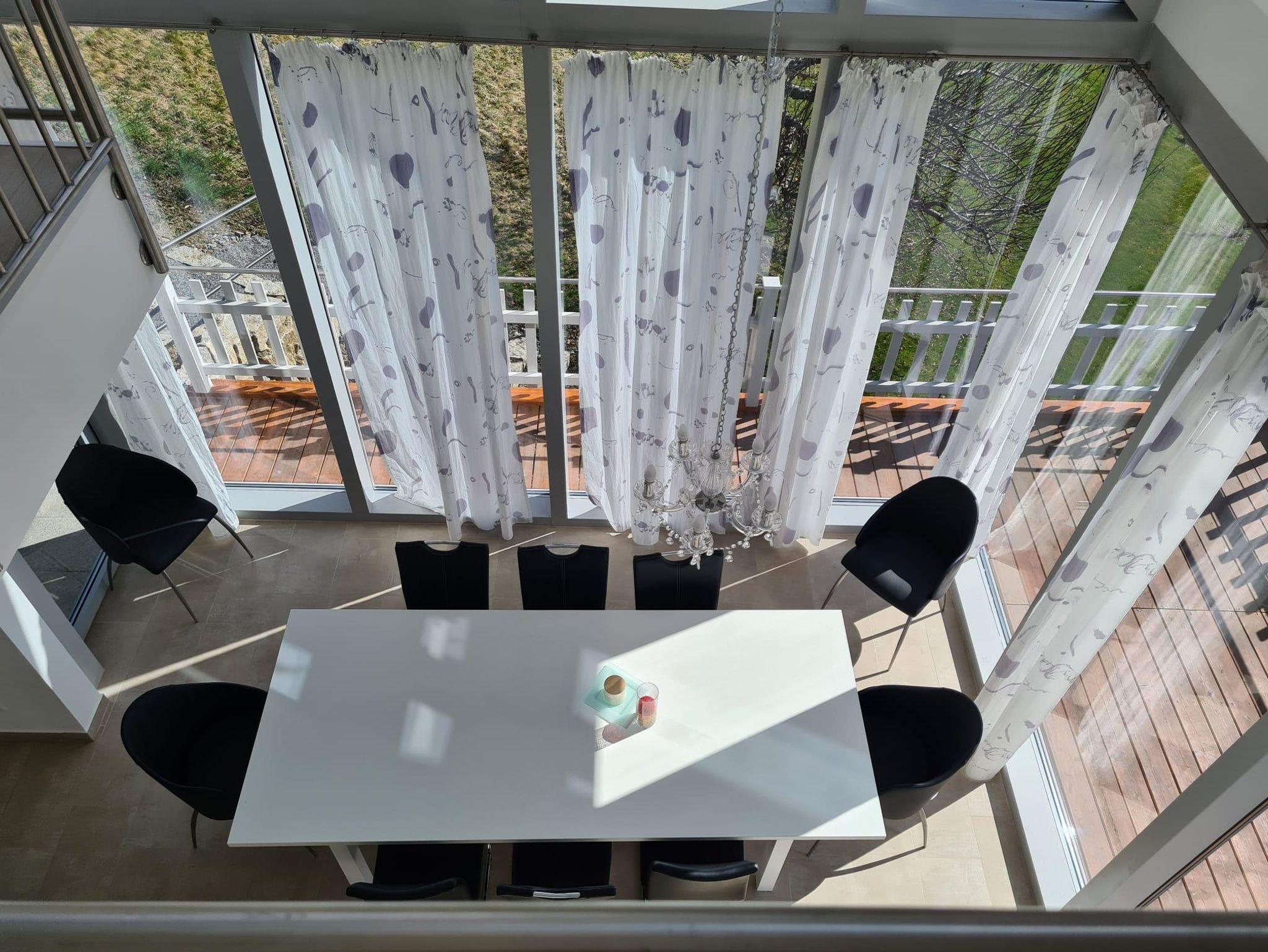 Vom Wohnzimmer aus hat man direkten Zugang zum Balkon. Ein ebenso traumhafter Bergblick bietet sich von der Ost- und Westterrasse.