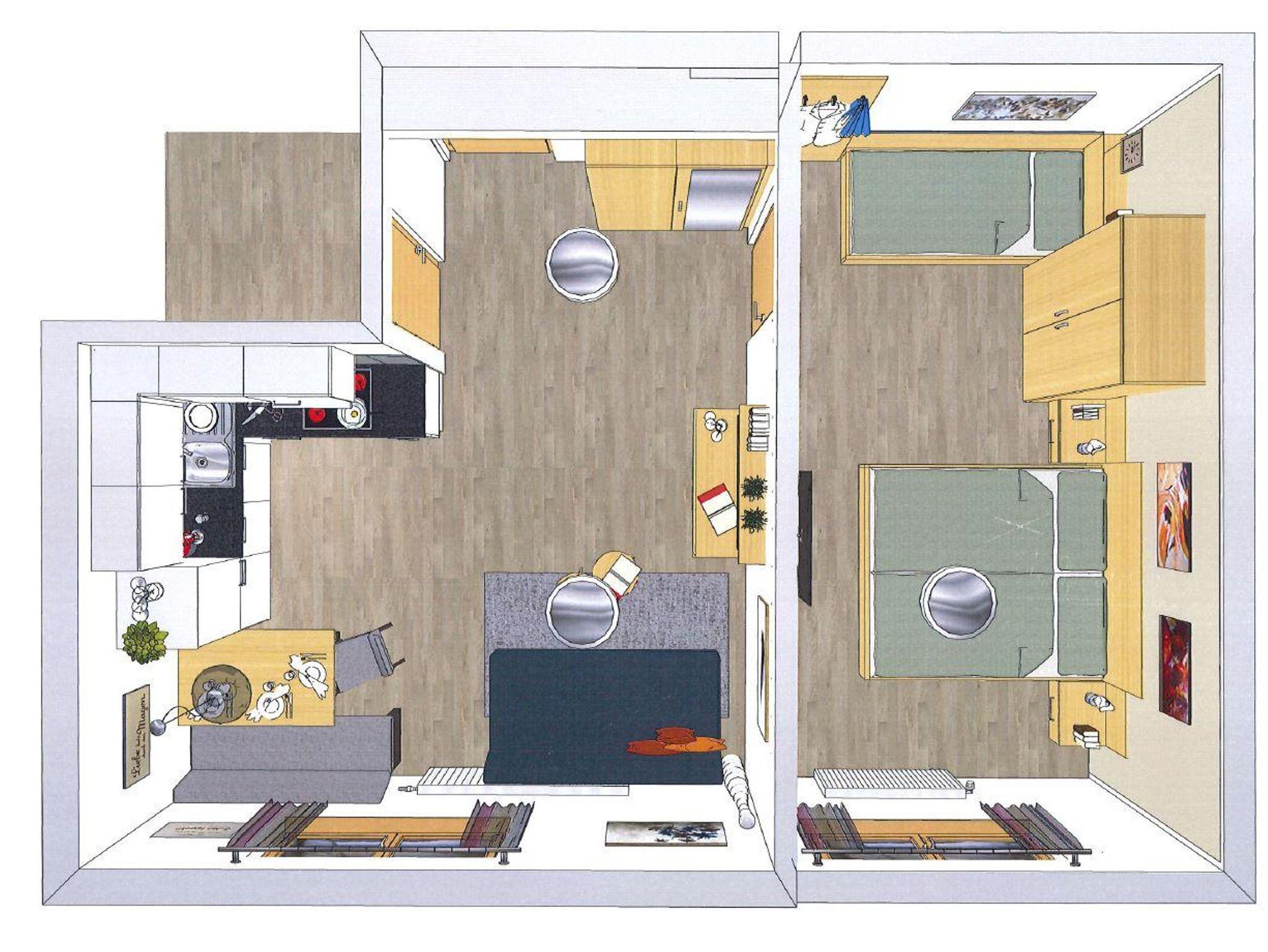 Ferienwohnung im Untergeschoss mit allen Annehmlichkeiten sowie modernsten Design ausgestattet. Neben einer Designercouch von Ligne Roset erwarten Sie ein modernes Design. Die Stille und der Ausblick erfüllen alle Urlaubsansprüche.
