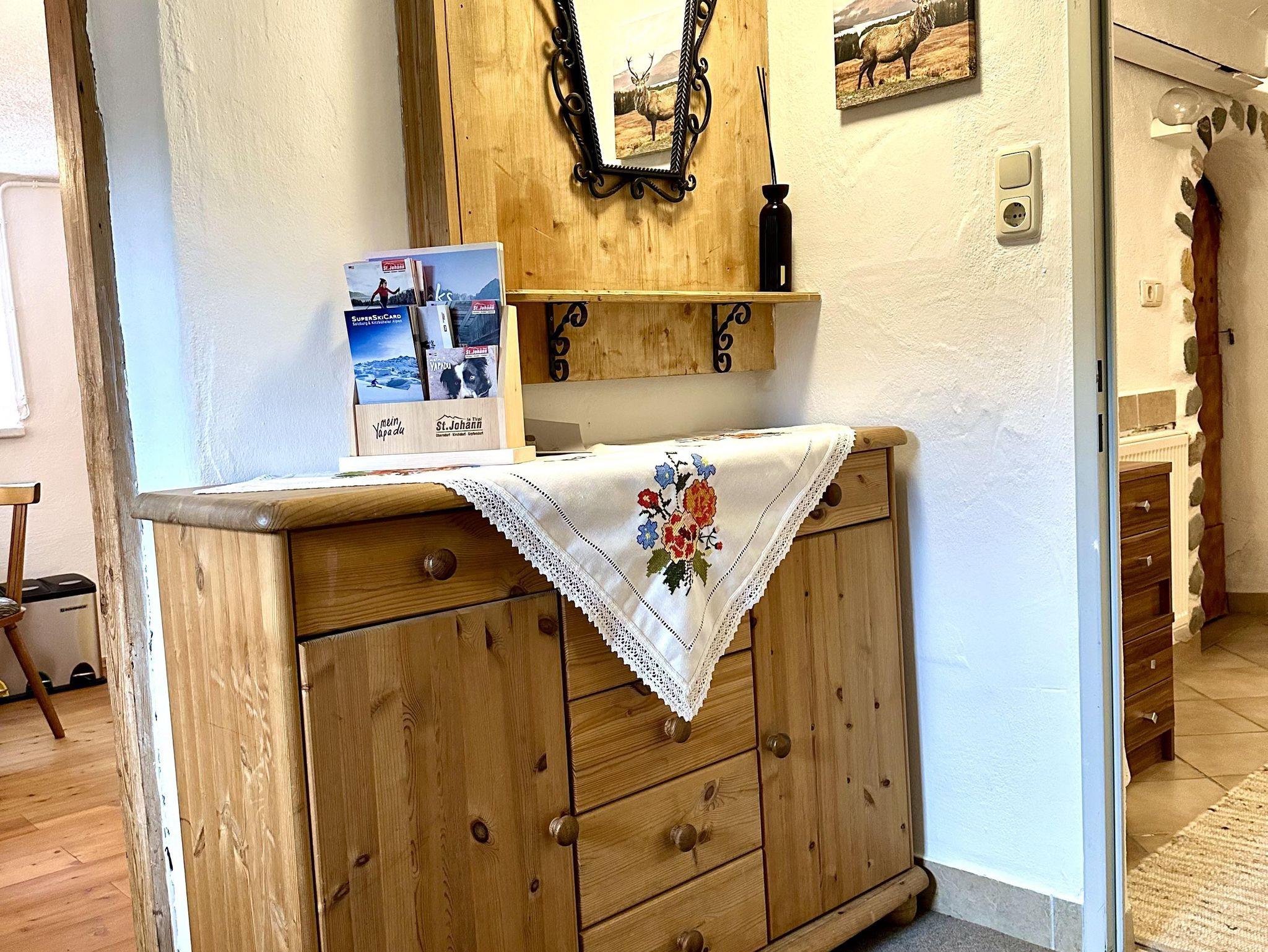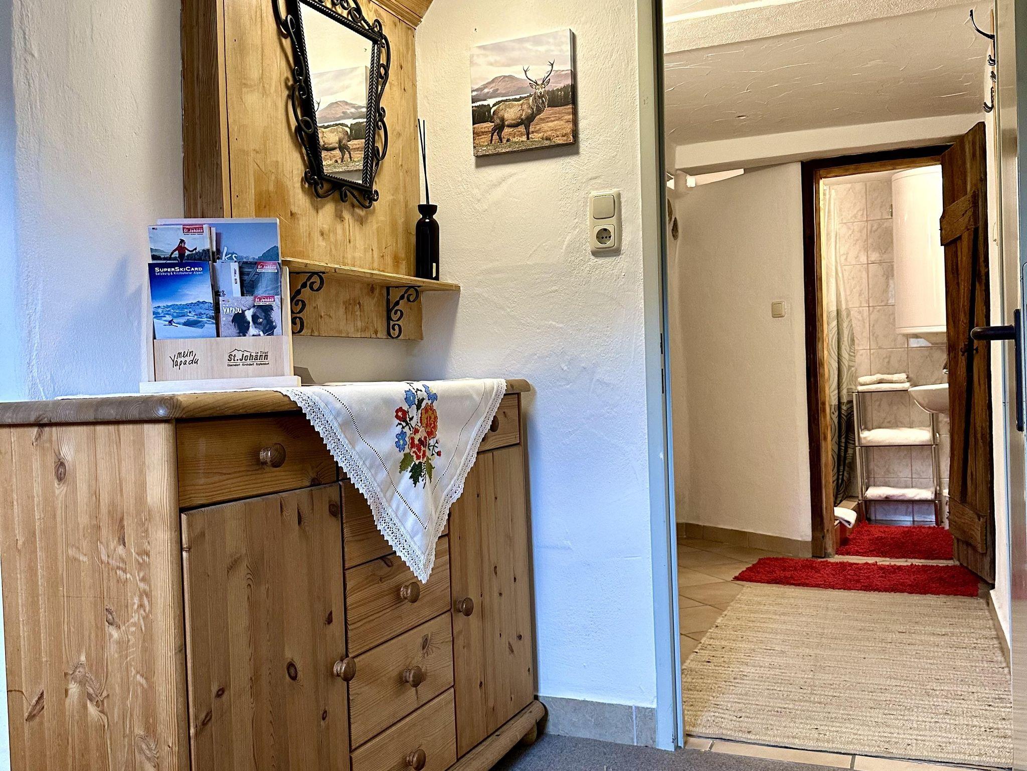 Das Appartement Sunnseit liegt im Nebenhaus von der Sunnseit Lodge. Die rustikale Wohnung auf ca. 40m² ist wie folgt eingeteilt: Vorraum, Küche mit Küchenzeile und Pelletofen, Schlafzimmer mit SAT-TV, Schrank und Doppelbett, Gang zum kleinen Badezimmer und zum WC. Das Appartement bietet einen ausgezeichneten Blick auf das Kitzbüheler Horn. Die Küchenzeile des Appartements ist wie folgt ausgestattet: Kühlschrank, Backofen, Mikrowelle, Filterkaffeemaschine, Herd mit 4 Platten, gemütliche Eckbank.
