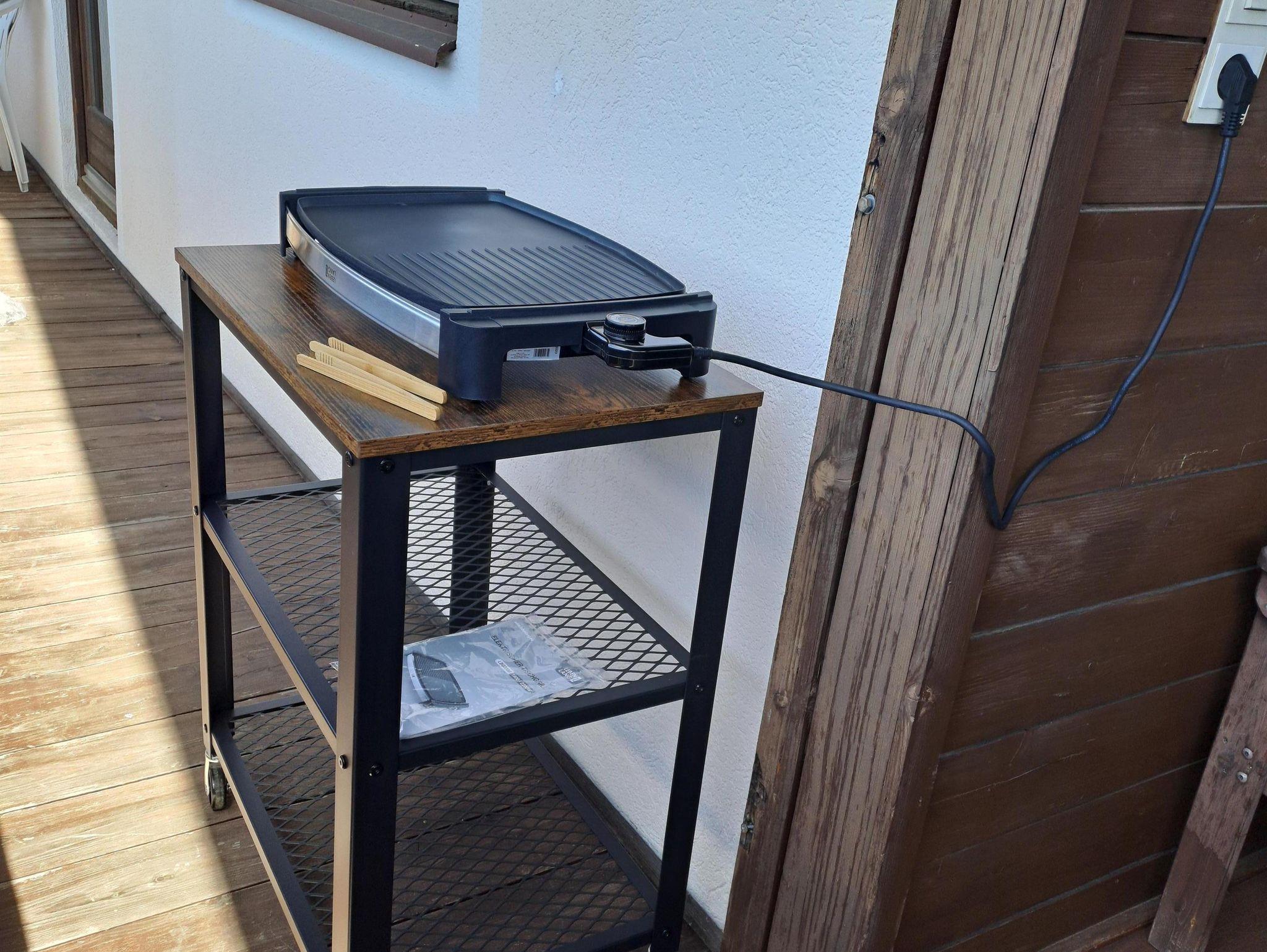 Kaffeepulver & Filter, Salz & Pfeffer; Geschirrspülmittel & Tabs (Geschirrspülmaschine) sind vorhanden. Ein elektr. Tischgriller ist auf der Terasse.