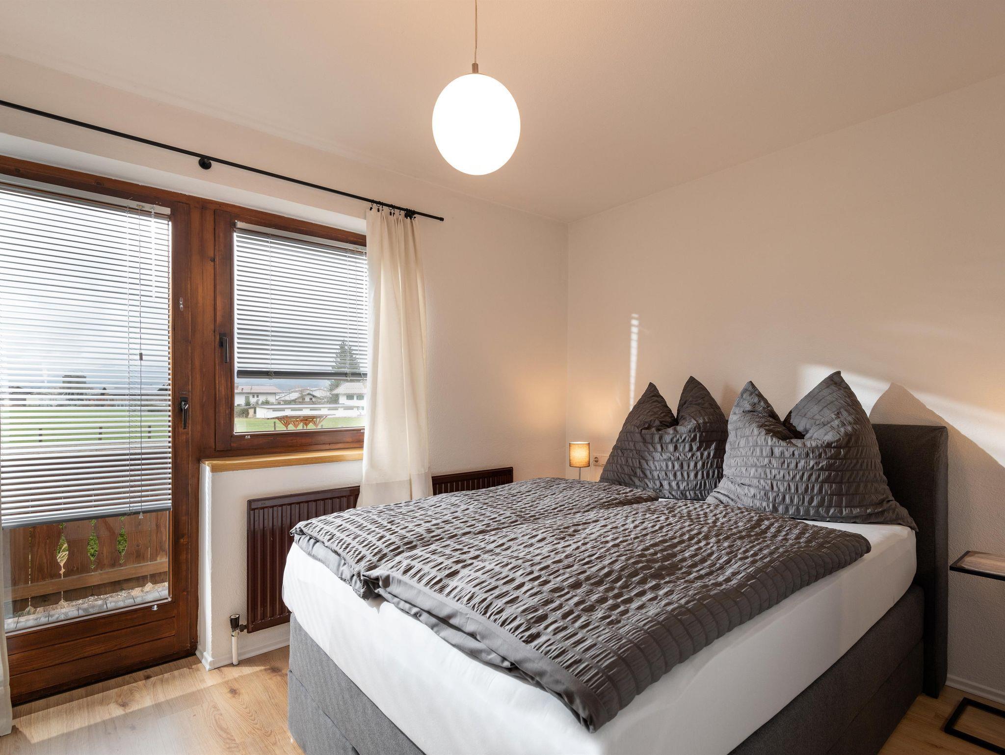 • Raumaufteilung: Vorraum, Küche mit gr. Esstisch und Zugang zur Terasse mit Balkon; kl. TV-Zimmer; 1 Doppelzimmer (Boxspringbett 180x200) mit Du/WC und 1 Doppelzimmer (Boxspringbettt 140x200) mit Du/WC/Balkon;