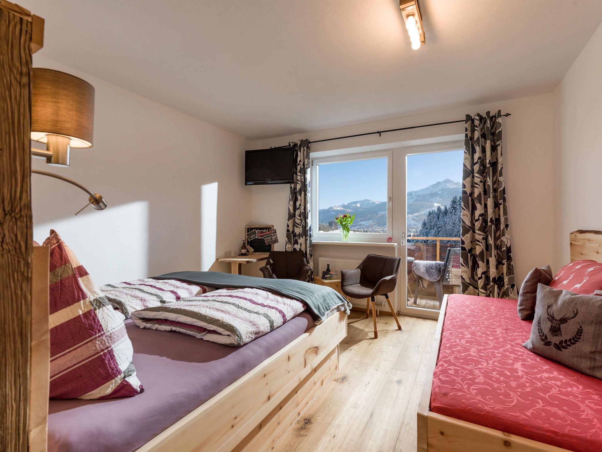 NATUR PUR - Die Ruheoase in den Kitzbüheler Alpen! Urlaub am Bauernhof - Unser Berghof liegt in ruhiger und sonniger Alleinlage am Waldrand und am Fuße des Niederkaisers, umgeben von dem Rotwildgehege und der beeindruckenden Bergwelt Kitzbühels. Ruhige und helle Zimmer mit Bad/WC, SAT-TV, kostenloses W-LAN und Balkon. Ein Aufenthaltsraum und eine große Sonnenterasse stehen allen Gästen zur freien Verfügung. Perfekter Ausgangspunkt für Wanderungen und Mountainbike-Touren sowie im Winter zum Langlaufen (direkter Einstieg in die Loipe), Schneeschuhwandern, Skifahren uvm., Skibushaltestelle in der Nähe(100m).