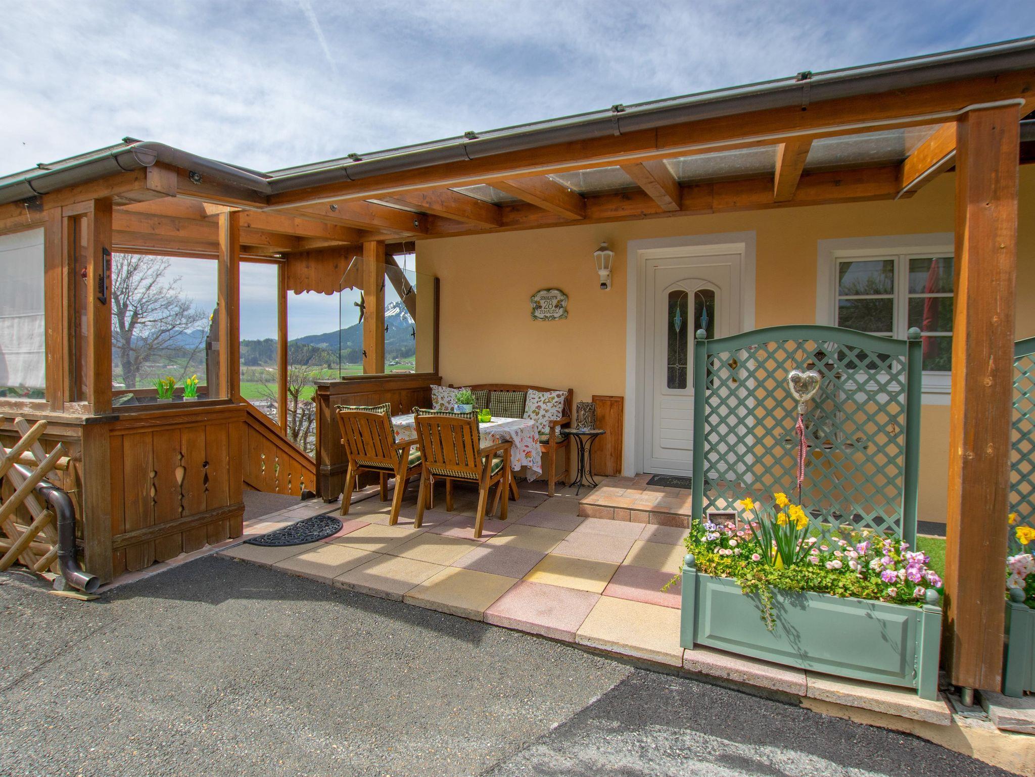 Verbringen sie einen unvergesslichen Urlaub im romantischen Appartement Kaiserblick für 2 - 4 Erwachsene und 2 Kinder mit seinem 3 Seiten Balkon.