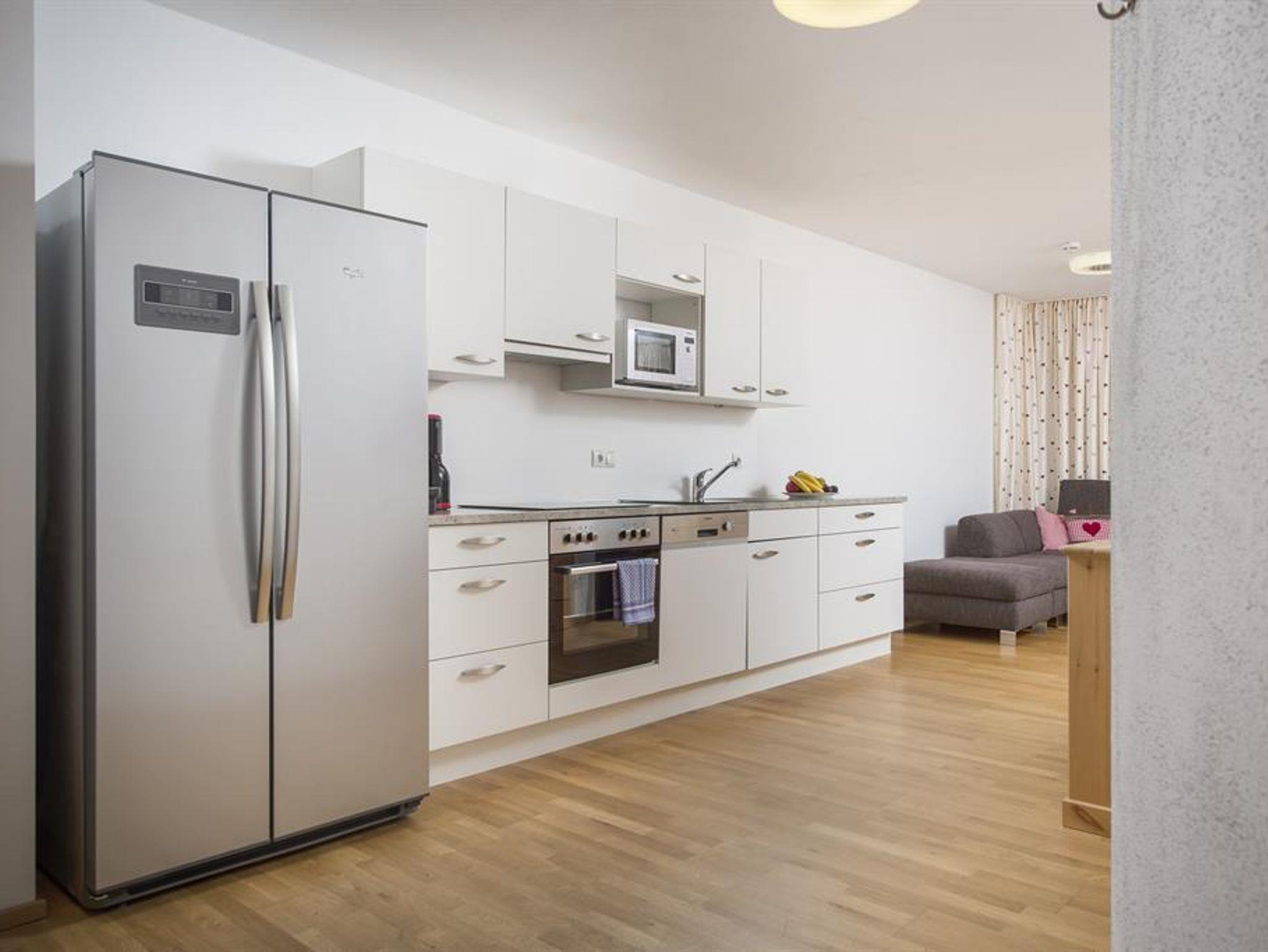 Vollwertig ausgestattete Küche mit Geschirrspüler, Cerankochfeld, Nespresso-Kaffeemaschine, Filter-Kaffeemaschine, Wasserkocher, Kühlschrank mit Tiefkühlfach. Inklusive Bettwäsche, Handtücher und Duschtücher. Der Wellnessbereich bietet Ihnen Sauna, Ruheraum und Fitnessraum.