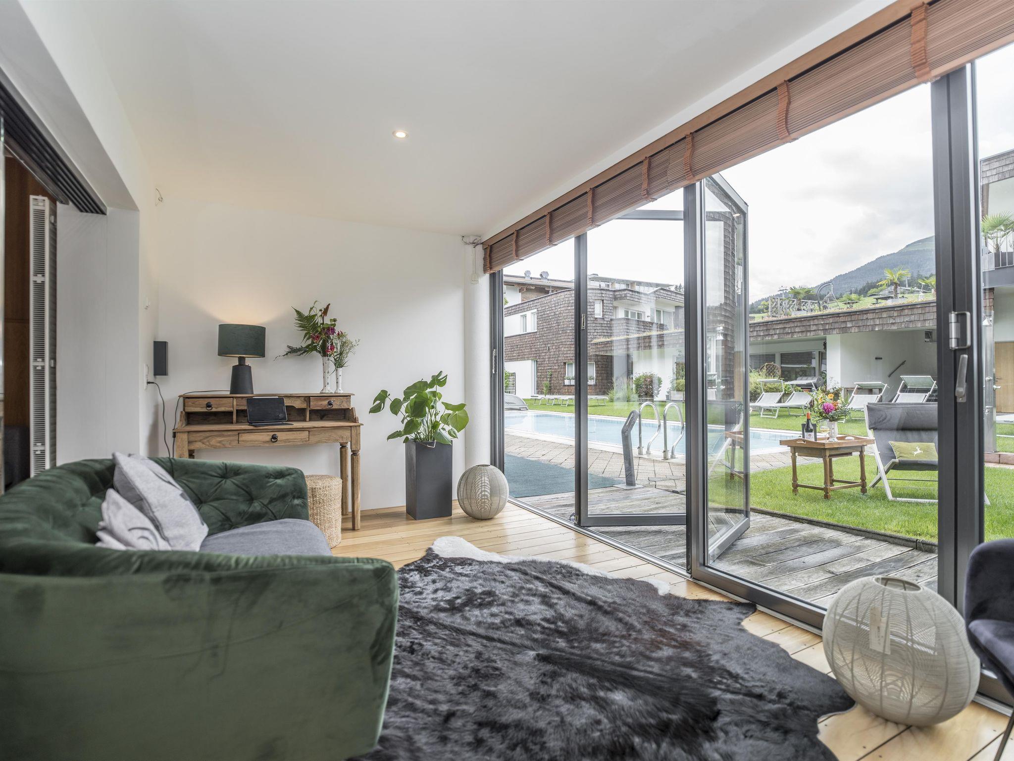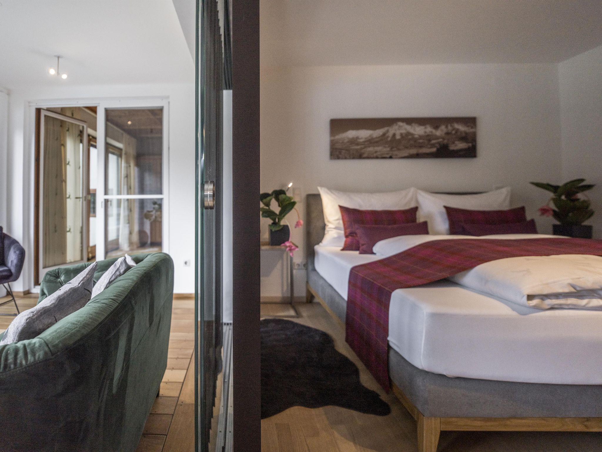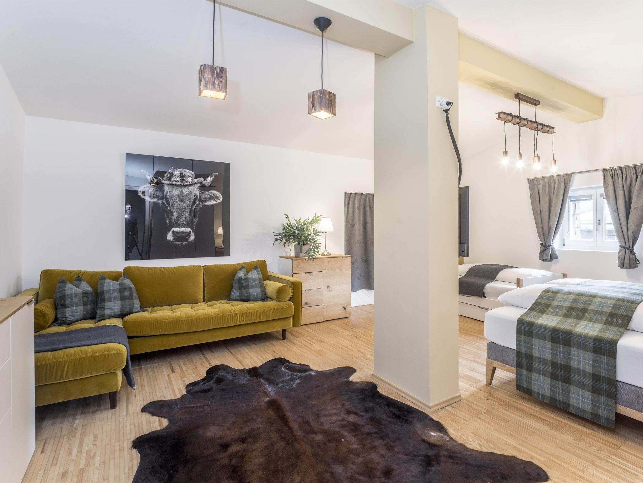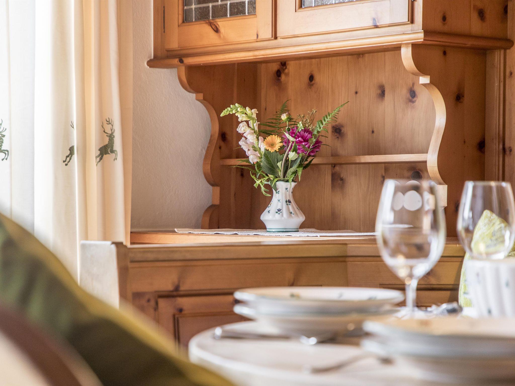 Für Ihr Wohlbefinden: Das Appartement ist hell und freundlich gestaltet, mit südseitiger Ausrichtung. Es ist mit hochwertigen Zirbenholzmöbeln ausgestattet. Parkettböden im Wohn- und Schlafbereich, Sat-TV und WLAN sorgen für Komfort.