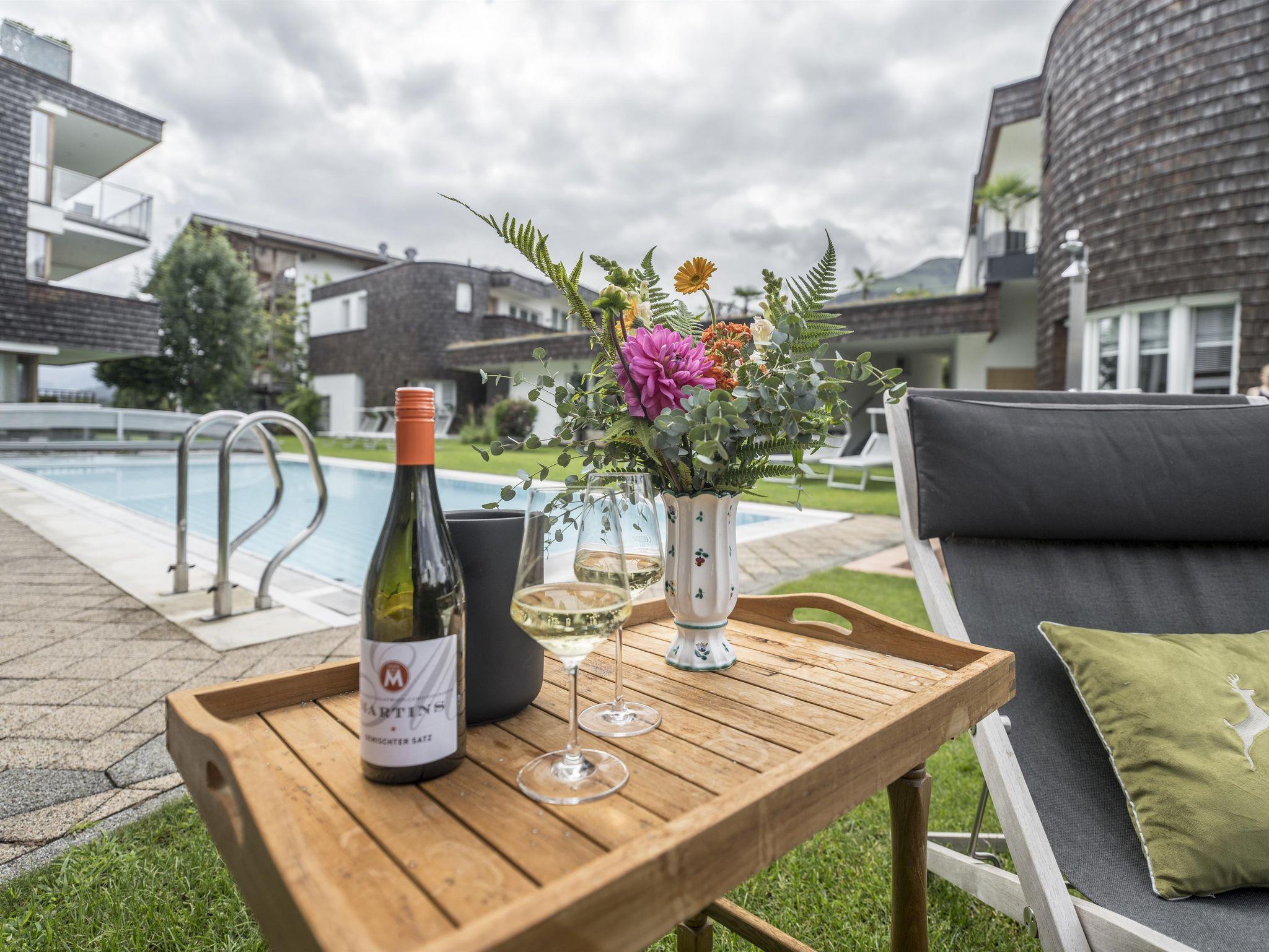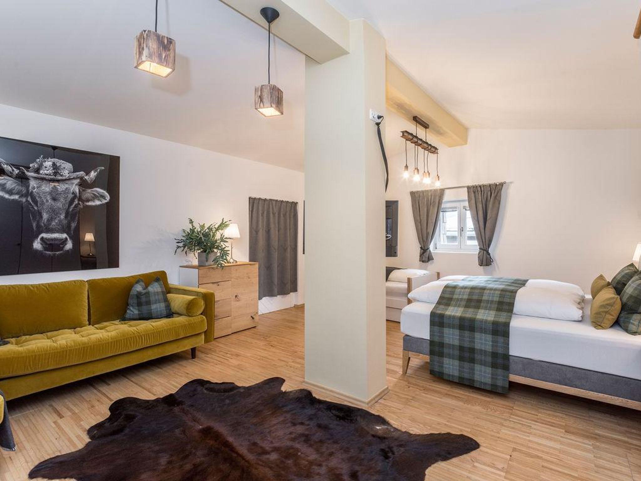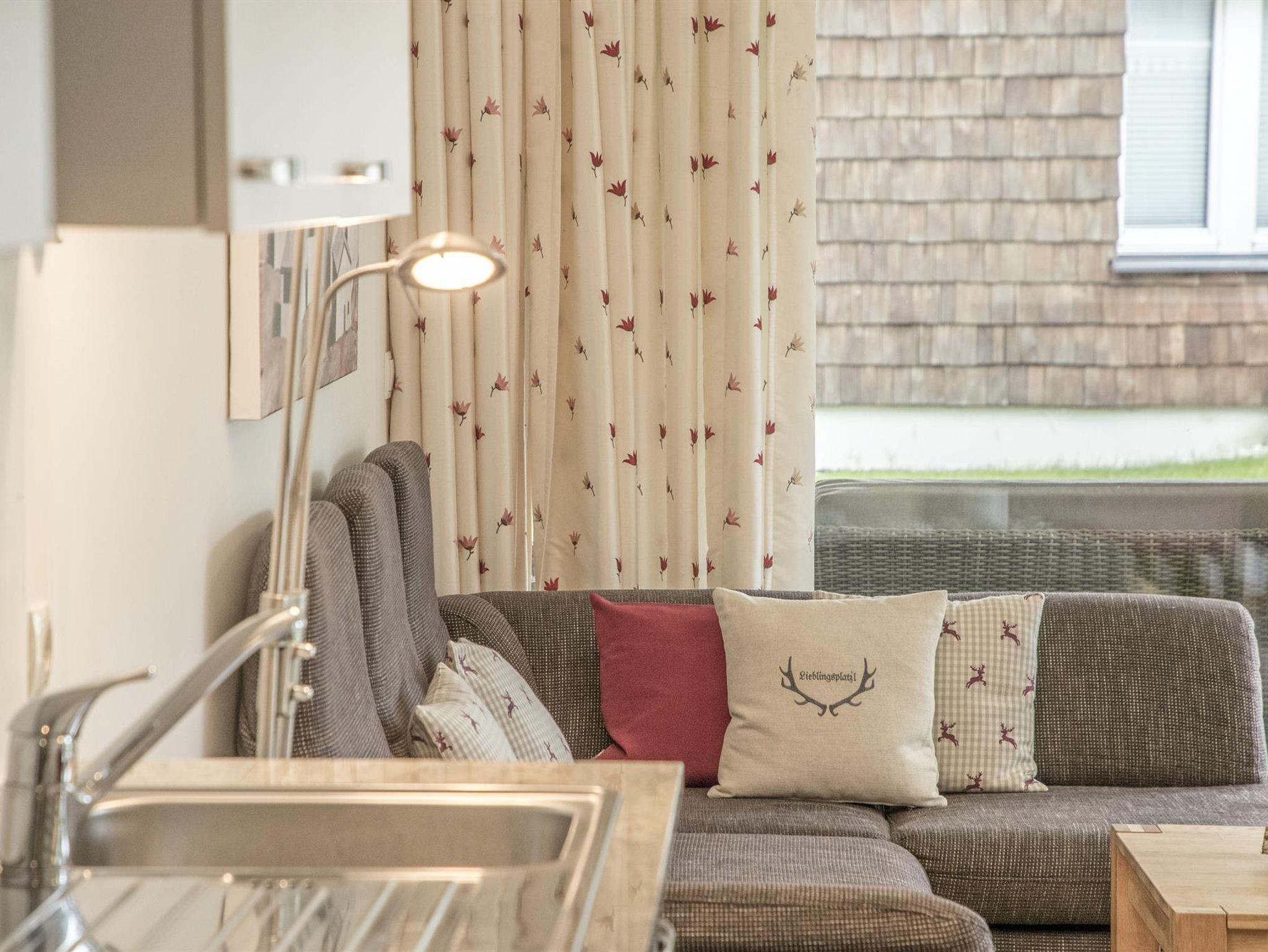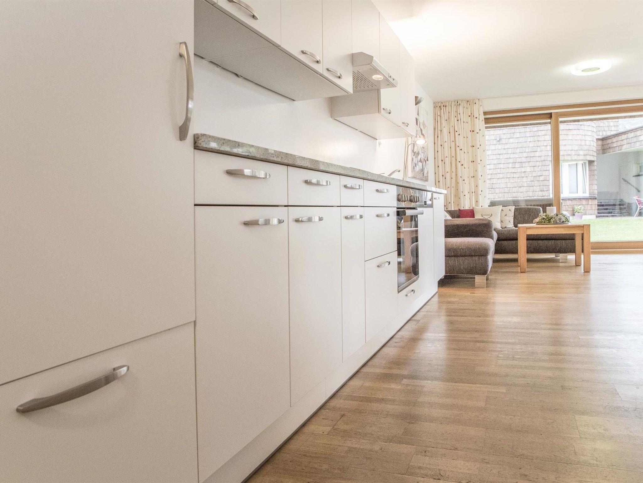 Für Ihr Wohlbefinden: Das Appartement ist hell und freundlich gestaltet, mit südseitiger Ausrichtung. Es ist mit hochwertigen Zirbenholzmöbeln ausgestattet. Parkettböden im Wohn- und Schlafbereich, Sat-TV und WLAN sorgen für Komfort.