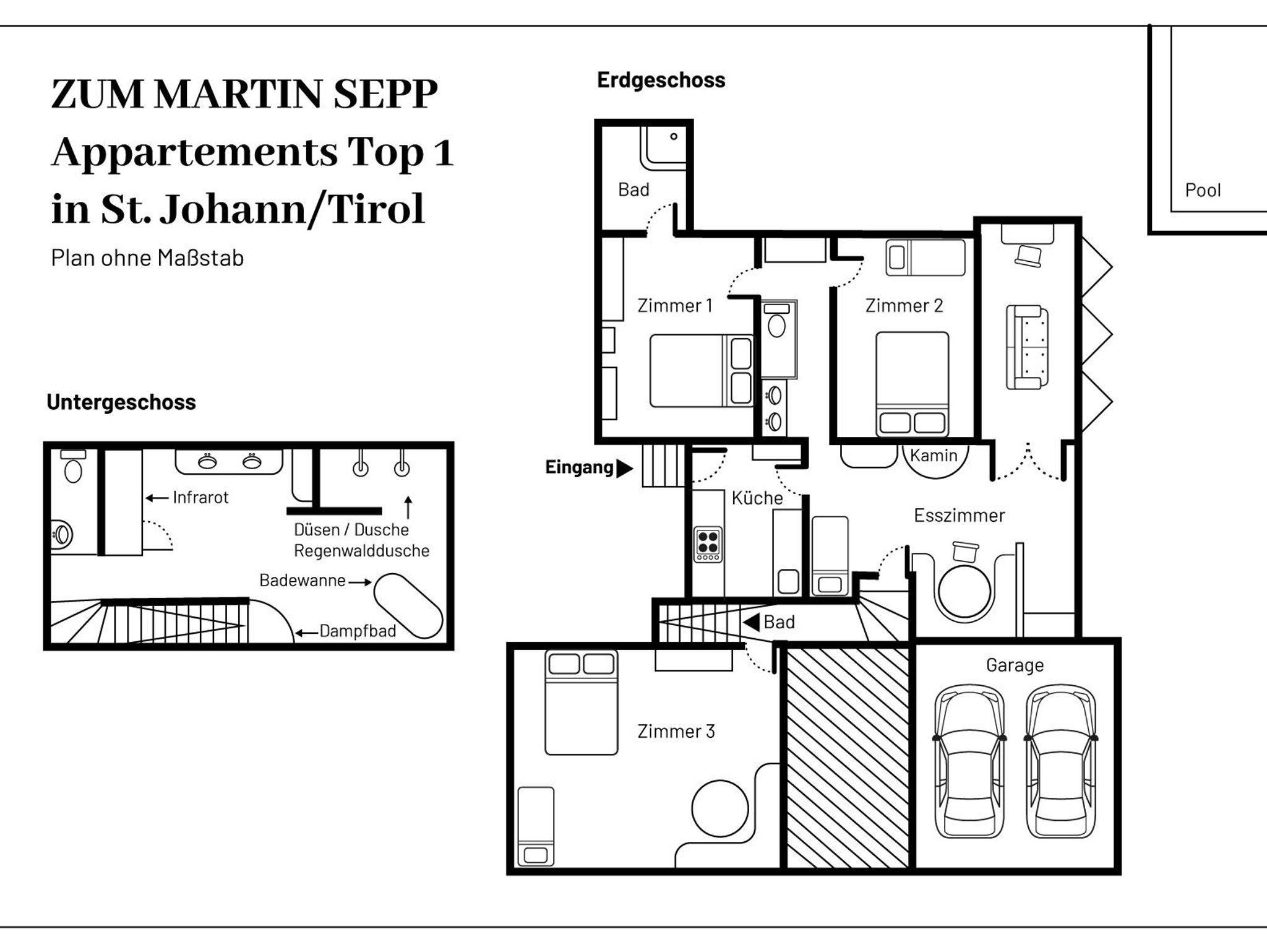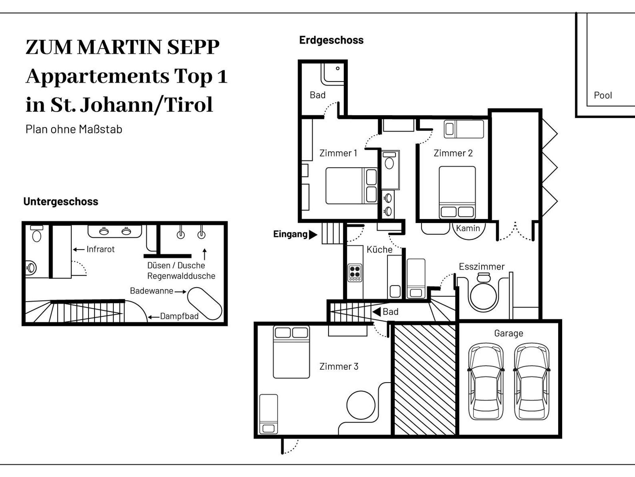 Das Zum Martin Sepp Appartement im Martinshof liegt ideal an der Talstation der Eichenhof Skilifte im Skigebiet St. Johann in Tirol/Oberndorf. Der Skilift ist nur 50 Meter entfernt, und der Einstieg in die Langlaufloipe befindet sich in 70 Metern. Wanderungen können direkt vom Haus aus gestartet werden, bis hinauf zum Kitzbüheler Horn.