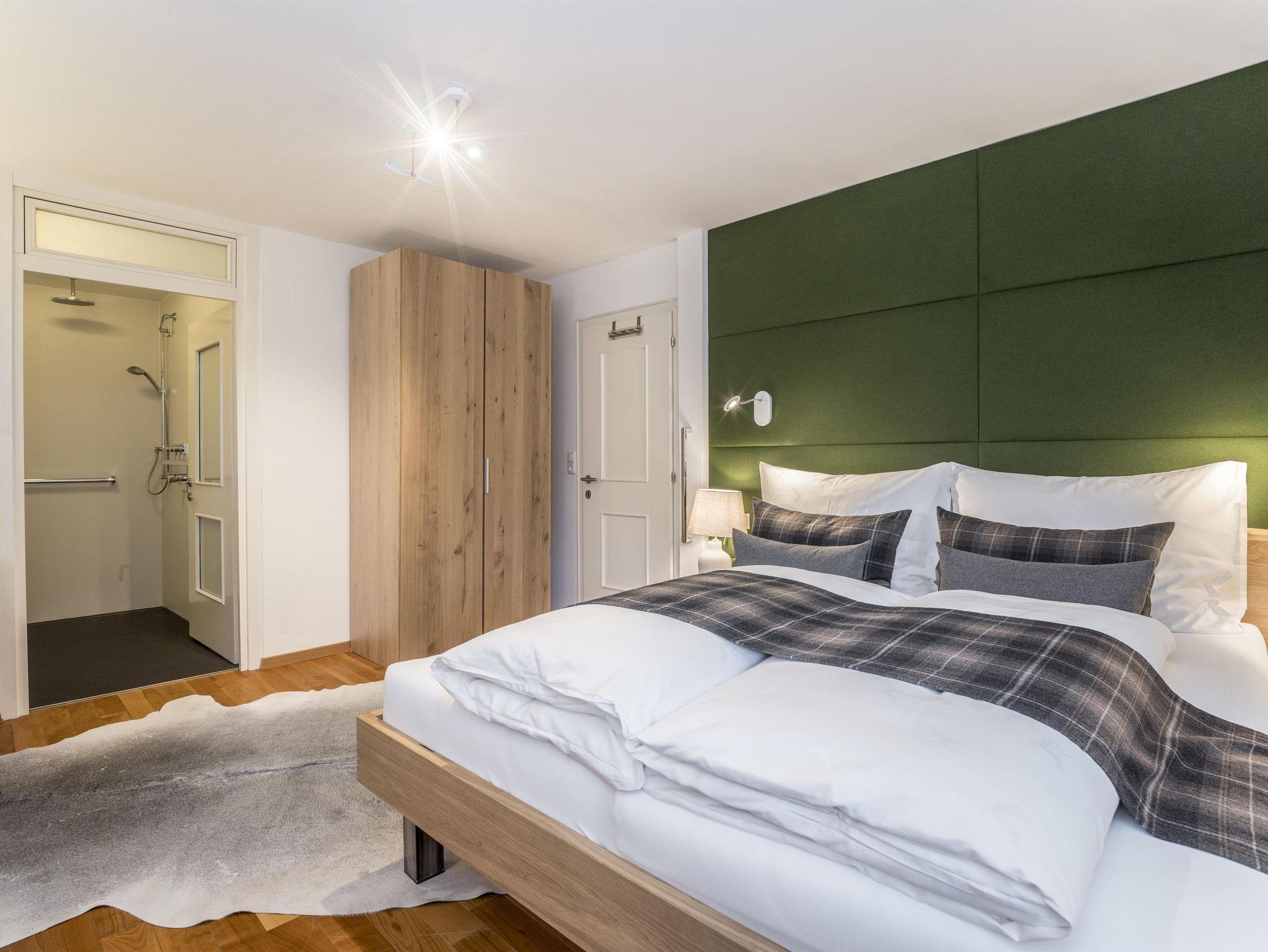 Die voll ausgestattete Küche bietet einen Geschirrspüler, Cerankochfeld, Nespresso- und Filterkaffeemaschine, Wasserkocher sowie einen Kühlschrank mit Tiefkühlfach. Bettwäsche, Hand- und Duschtücher sind im Preis inbegriffen. Der Wellnessbereich umfasst eine Sauna, ein Dampfbad, einen Ruheraum und einen Fitnessbereich.