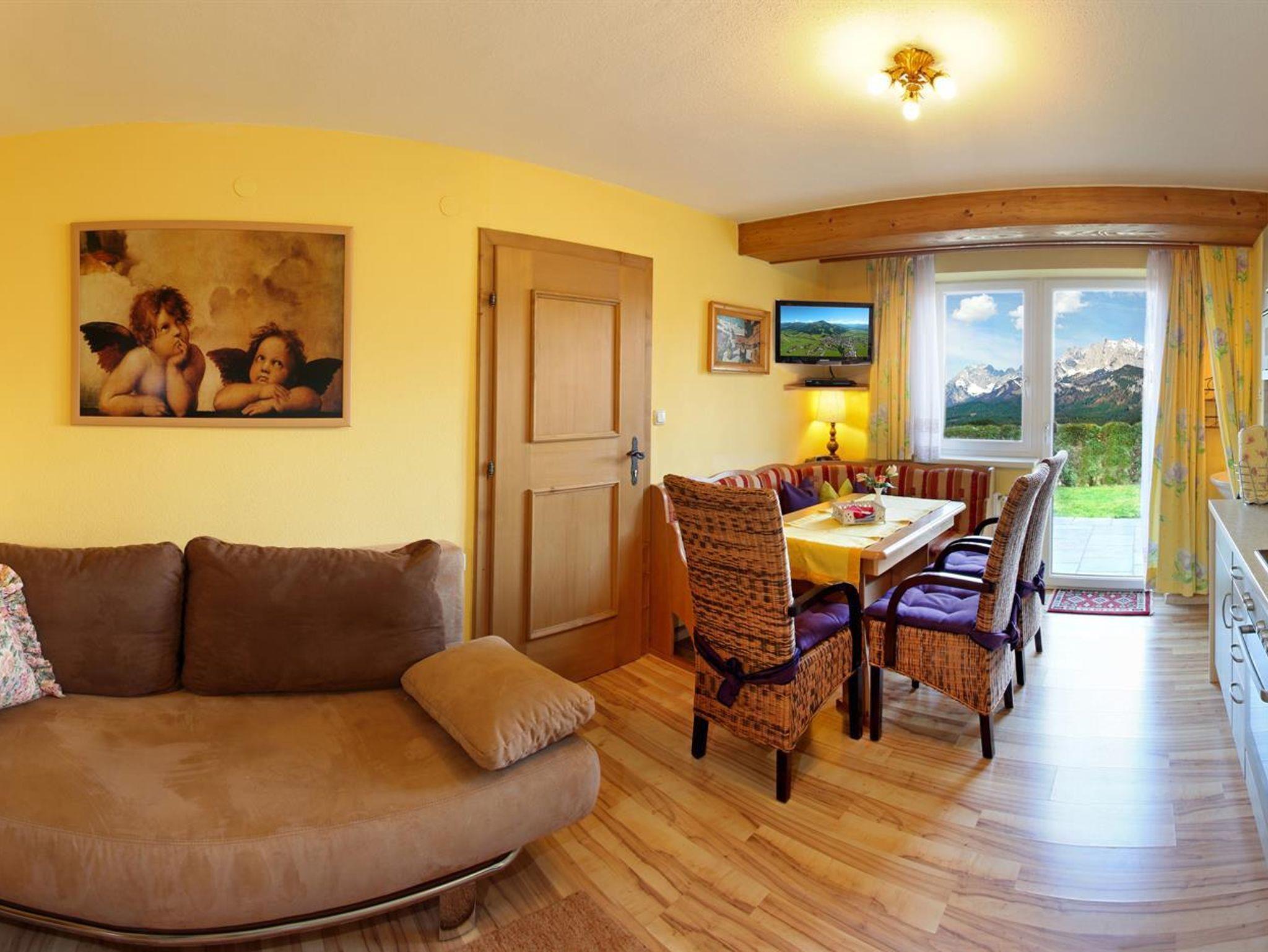 Das Appartement verfügt über 3 Schlafzimmer incl. Kabel TV, eine komplett ausgestattete Wohnküche incl. Ausziehcouch, zwei geräumige Duschen mit WC ein Bad mit WC, Fön, und gemütlicher Sitzgelegenheit. Genießen Sie die Vorteile einer großen Terrasse mit herrlichem Kaiserblick.