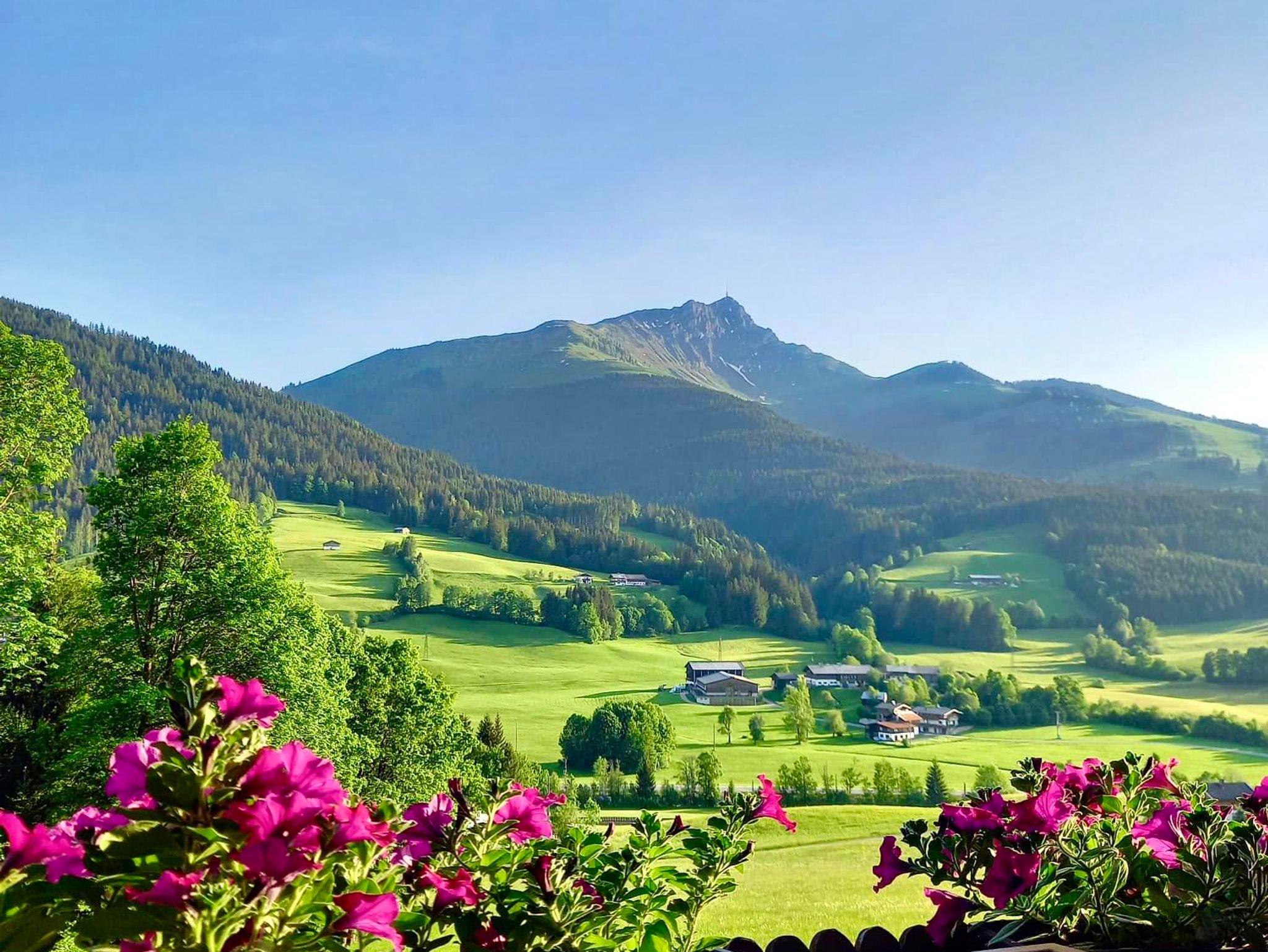 Inmitten der Tiroler Kalkalpen mit Blick auf das Kitzbüheler Horn & den Wilden Kaiser liegt unsere gemütliche Sunnseit Lodge und das Appartement Sunnseit. Das Appartement ist ca. 30 m von der Sunnseit Lodge entfernt. Die Tiroler Bergsonne begrüßt euch den ganzen Tag über.