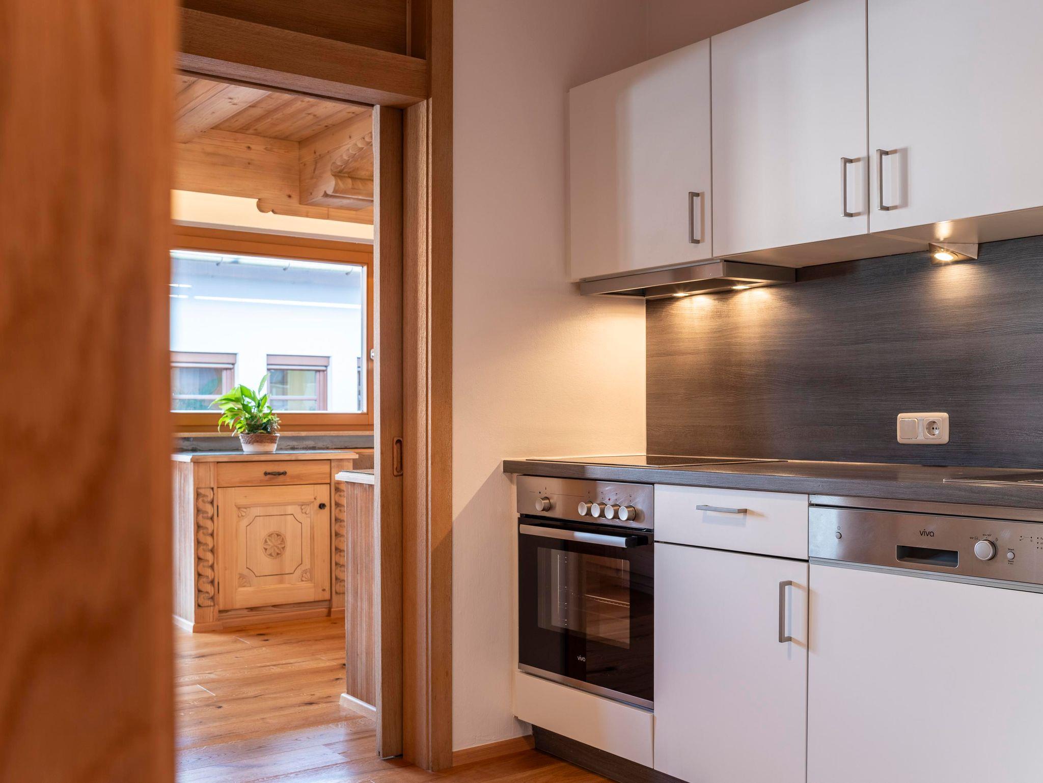 Unsere Wohnungen verfügen jeweils über eine eigene Küche, 1 bzw. 2 Bäder/WC's, Balkon/Terrasse. Besonders schön ist der Ausblick auf den Wilden Kaiser. Der Eintritt in die Panorama Badewelt ist mit der Gästekarte für unsere Gäste kostenlos (saisonabhängig).
