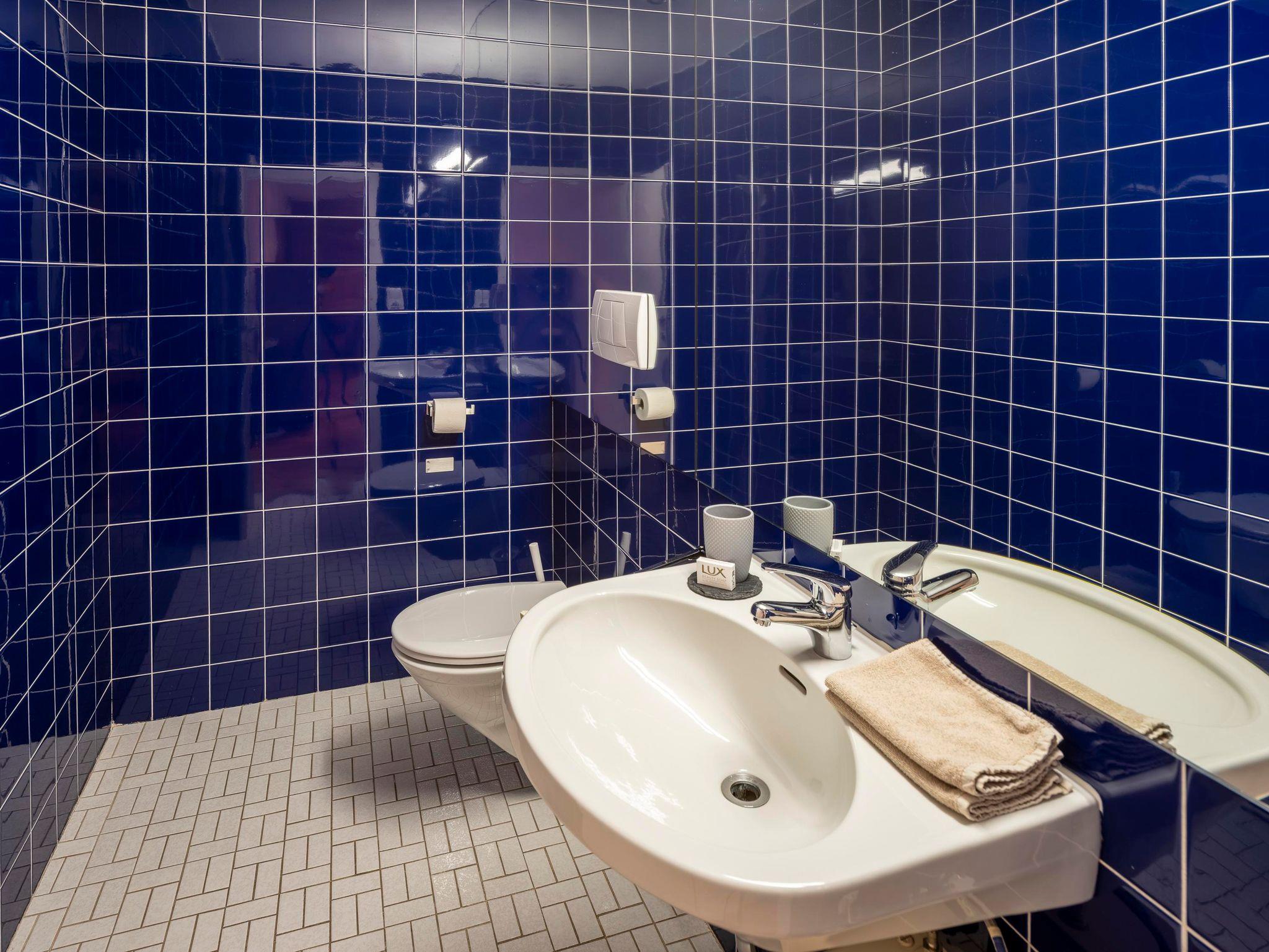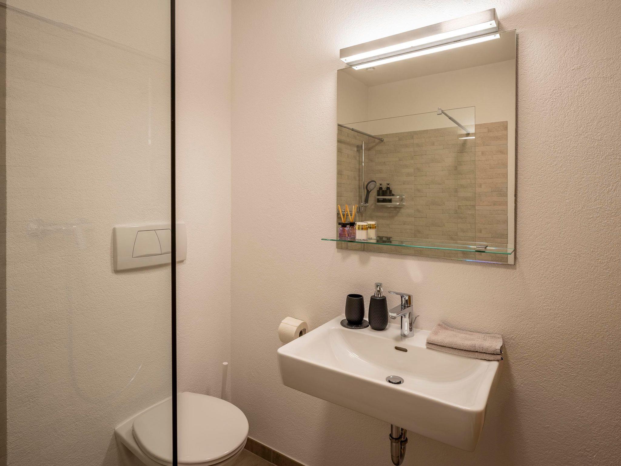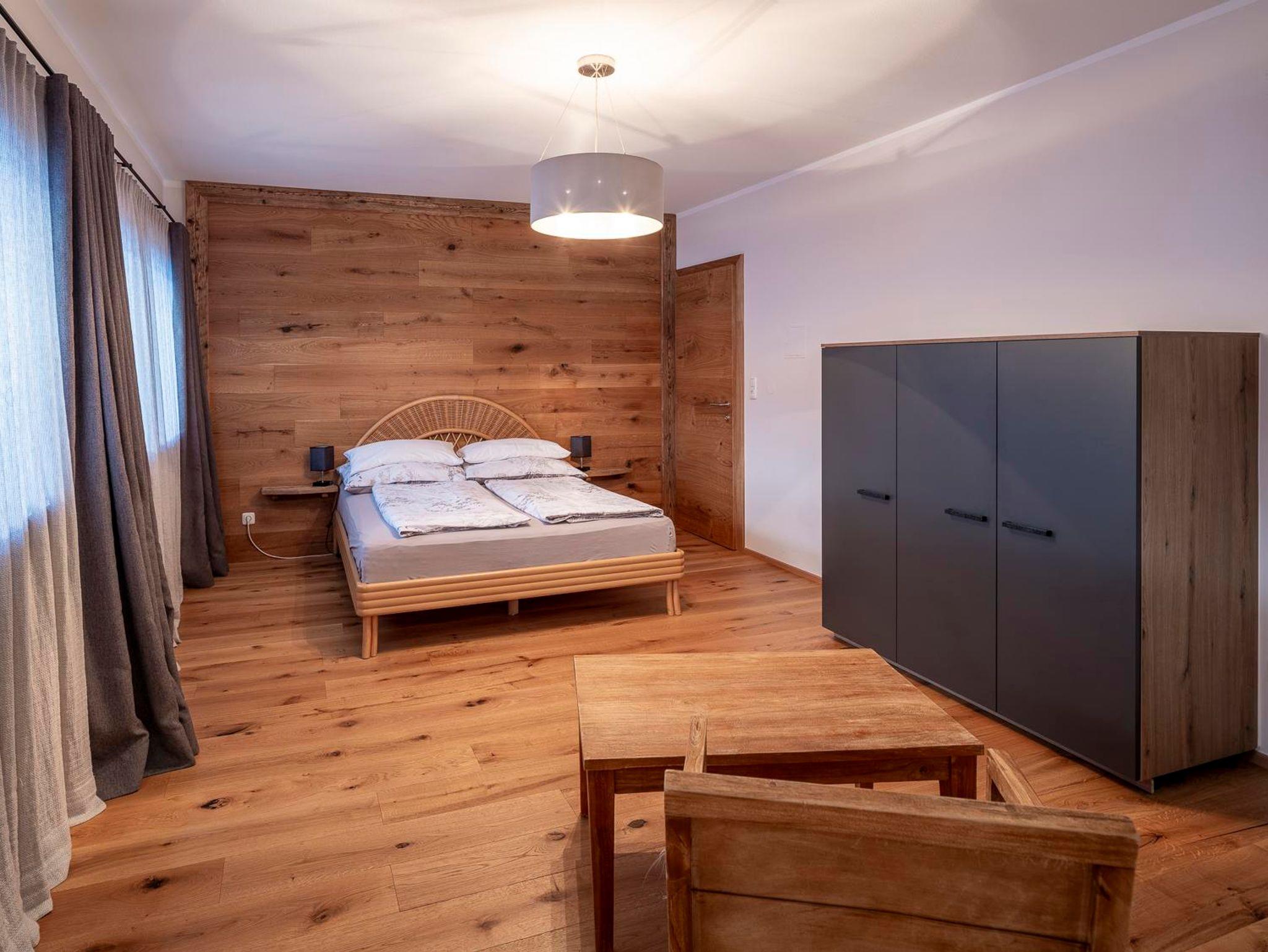 Ausstattung: 2 Schlafzimmer mit je einem Doppelbett, 2 Bäder mit Dusche, 2 WCs; Küche: Spülmaschine, Elektroherd, Zerankochfeld, Kaffee-Vollautomat, Wasserkocher, Toaster, Geschirr & Besteck, ca. 40 Jahre alte Bauernstube/Esszimmer direkt neben der Küche; Wohnzimmer: große Couch und Leseecke , Flachbildschirm TV, großer Balkon/Terrasse und Schlafmöglichkeit für 2 Personen.