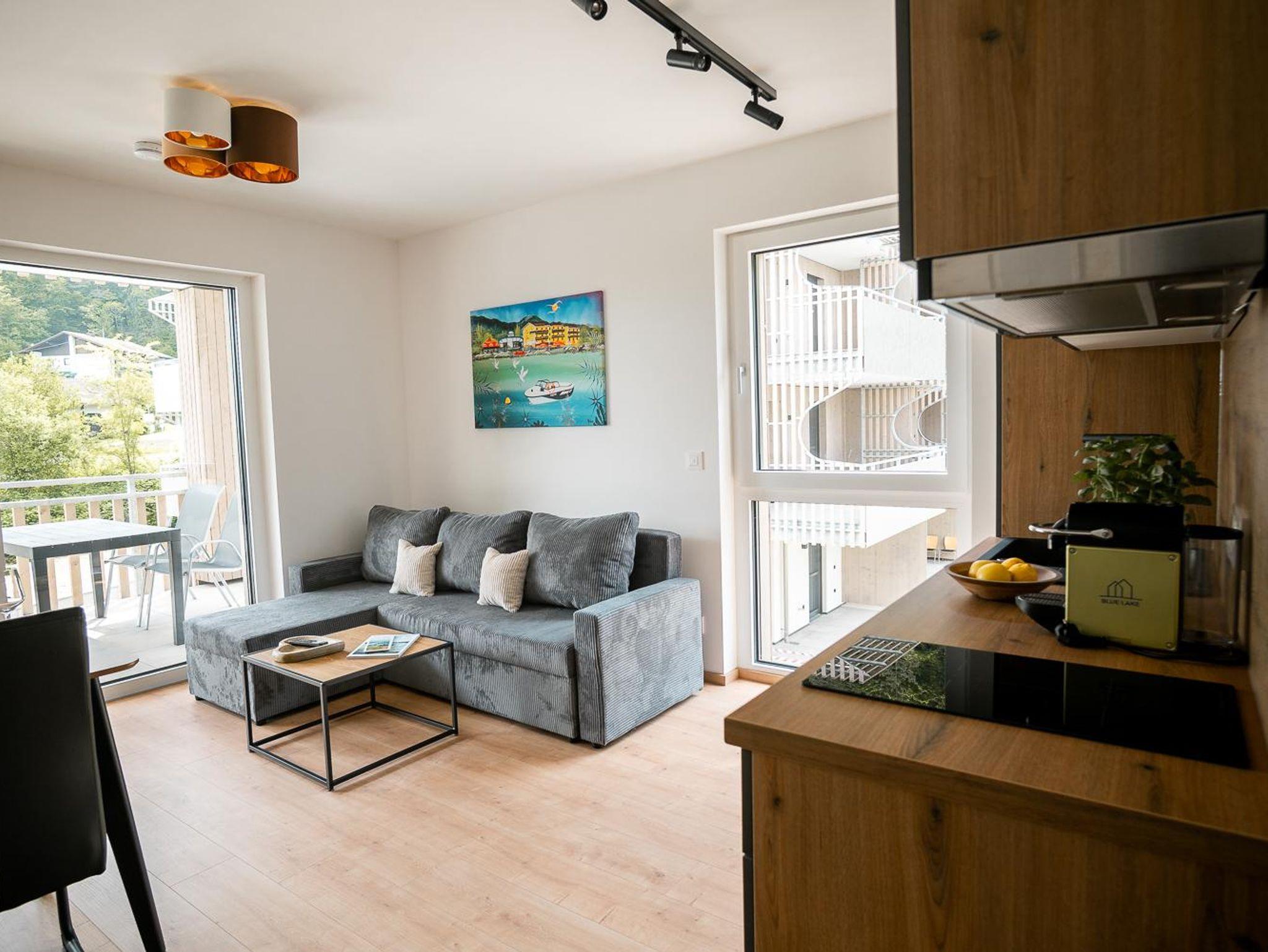 Das BLUE LAKE Apartment No12 liegt nur wenige Gehminuten vom Klopeiner See entfernt und befindet sich im 2. Stock. Das 36 m² große Studio bietet Platz für bis zu 4 Personen. Es verfügt über ein Doppelbett sowie eine Schlafcouch für 2 Personen im abgetrennten Wohnbereich. Zur Ausstattung gehören ein eigener Balkon, kostenloses WLAN und ein überdachter Parkplatz (Carport).