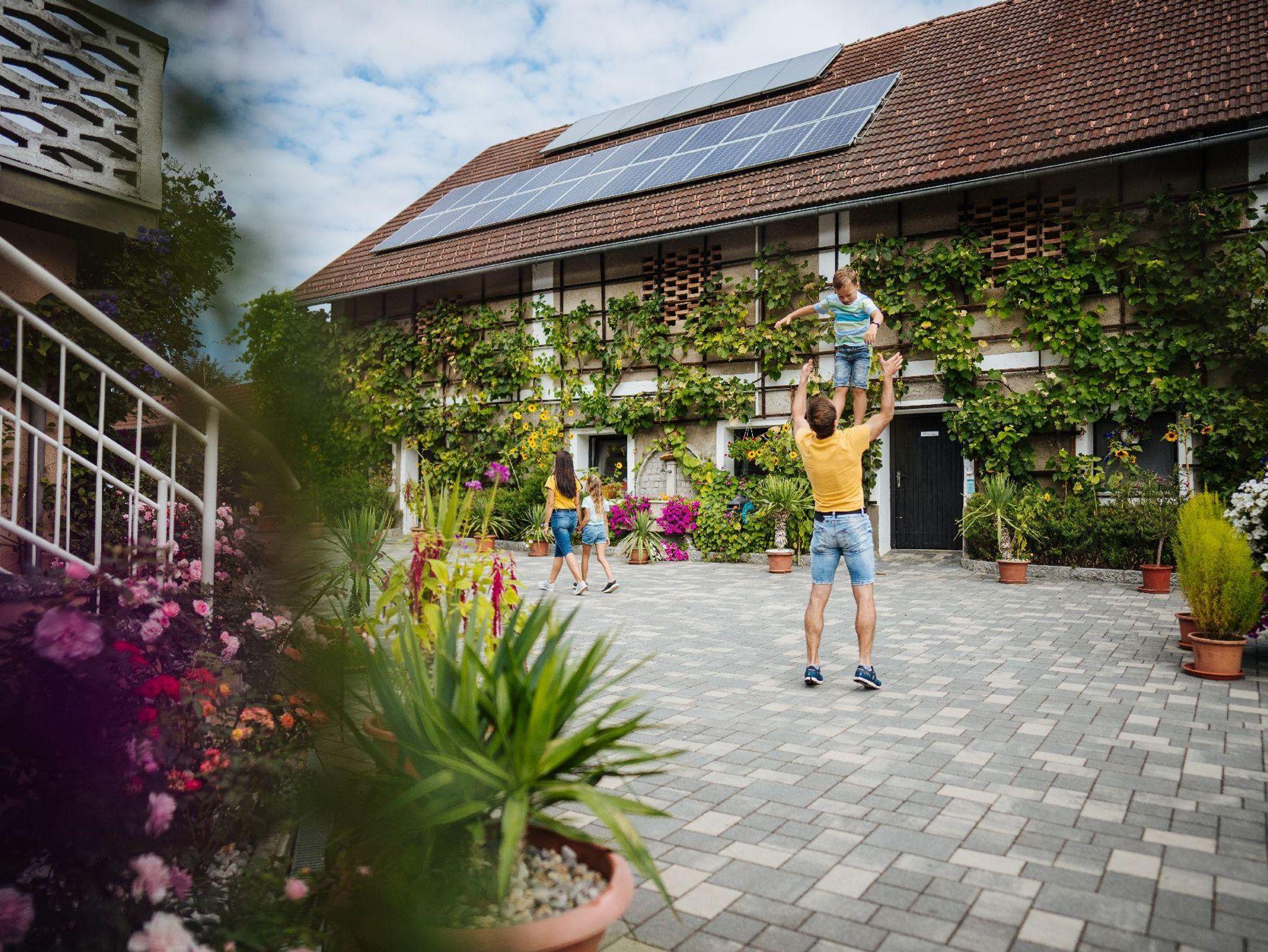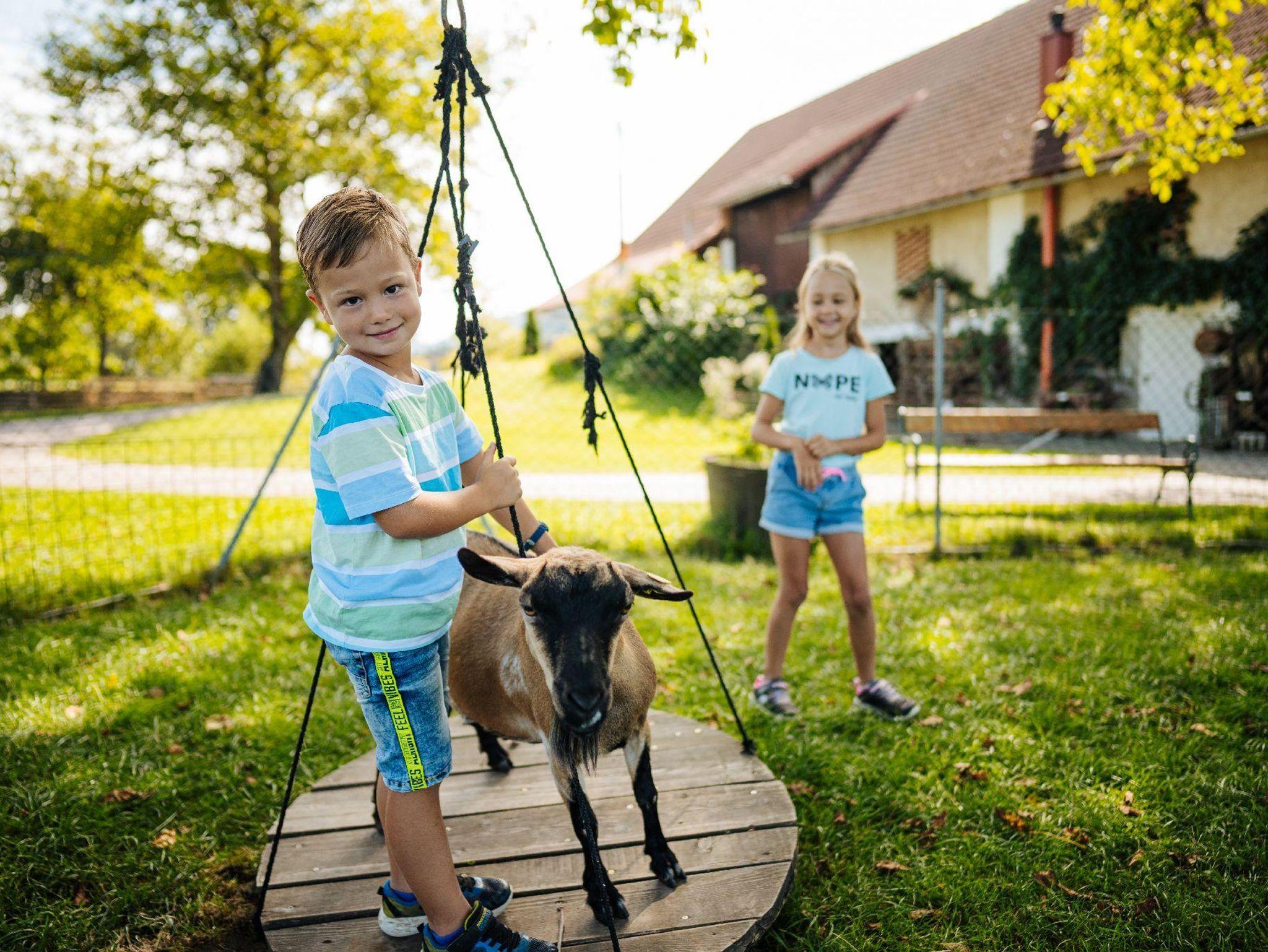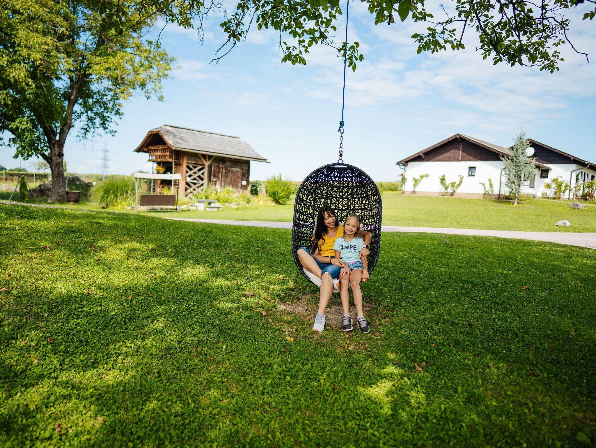 Genießen Sie auf unserem riesigen Hof-Areal die Ruhe, während sich die Kids bei den Streicheltieren oder am großen Spielplatz austoben.