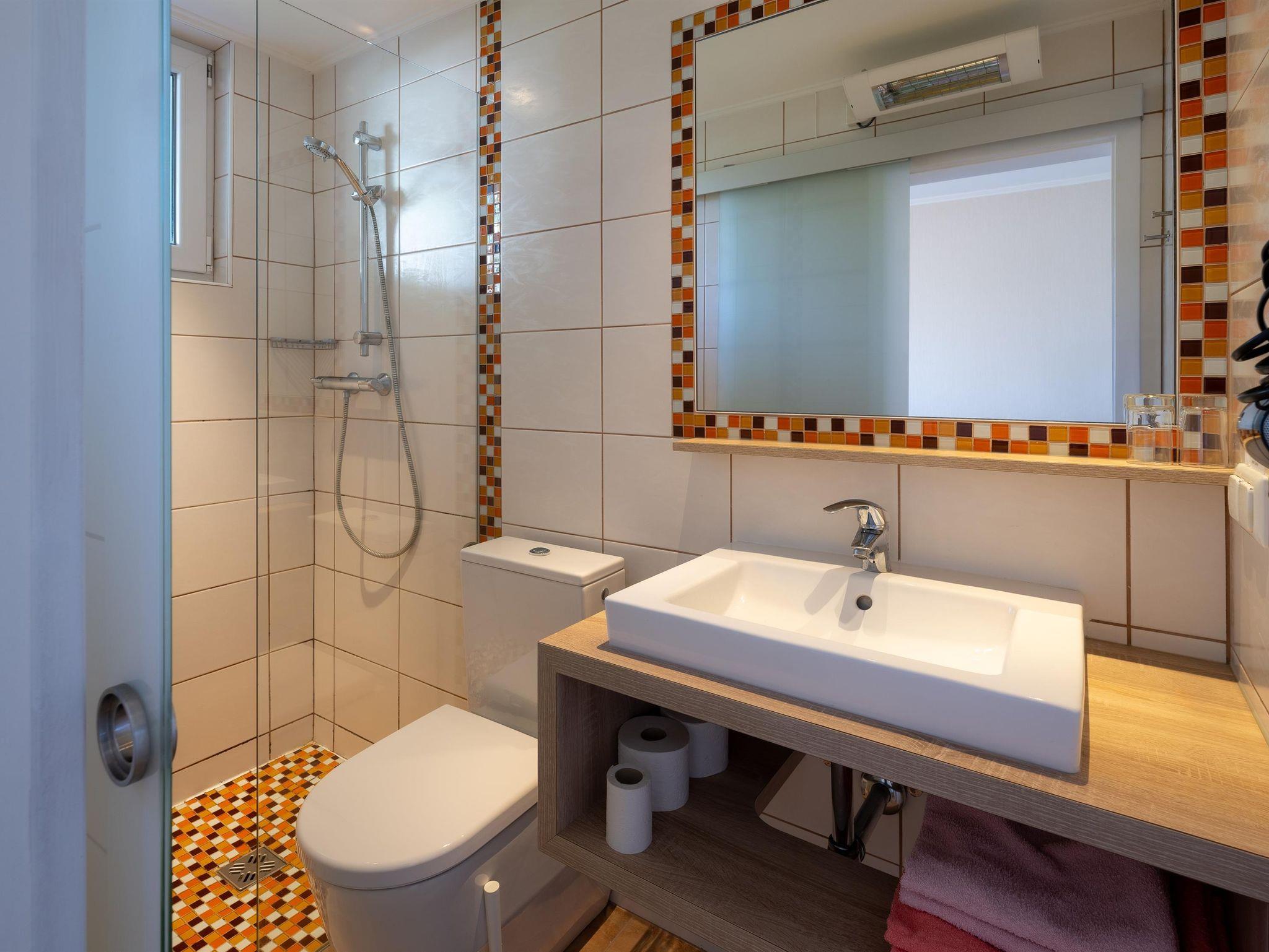 Ausstattung: helle einheitliche Möbel, ebenerdige DU, WC, SAT-TV, Heizung im Zimmer und im Bad. Doppelzimmer mit einer Couch und zusätzlich eine kleine Loggia mit einer Couch für Schlafmöglichkeit für ein weiteres Kind durch Vorhang vom Doppelzimmer getrennt, Balkon mit Tisch und 2 Stühlen.