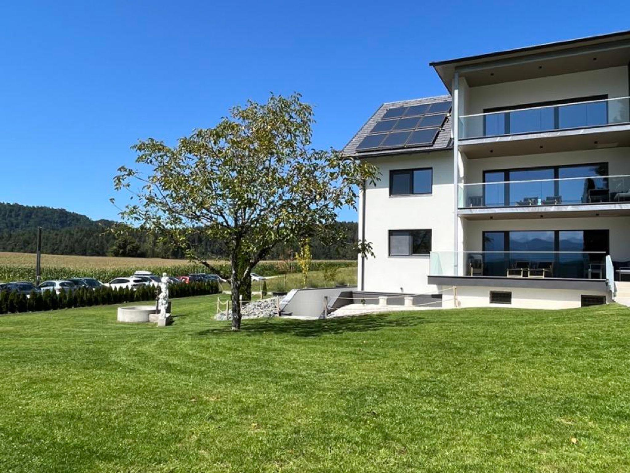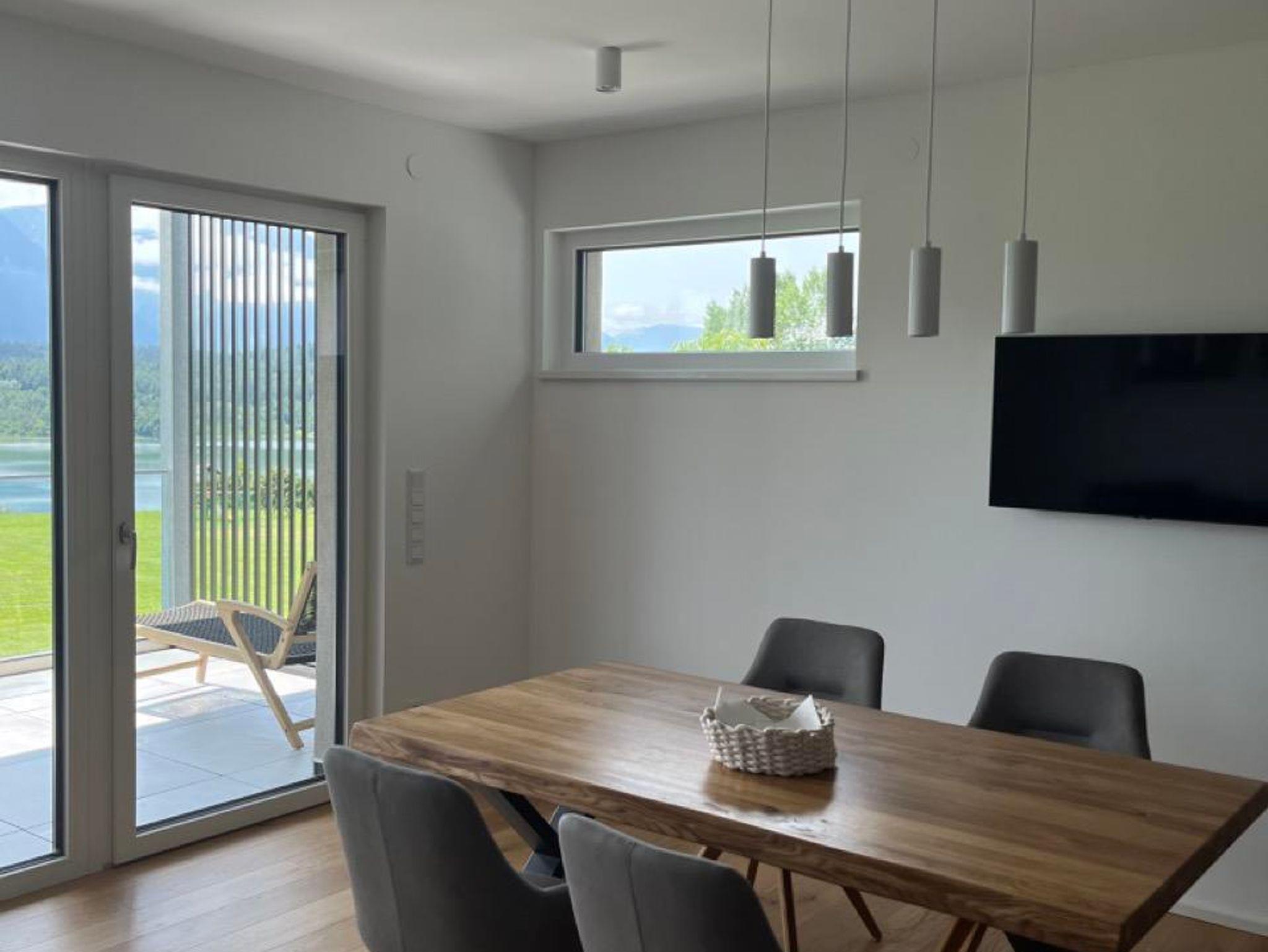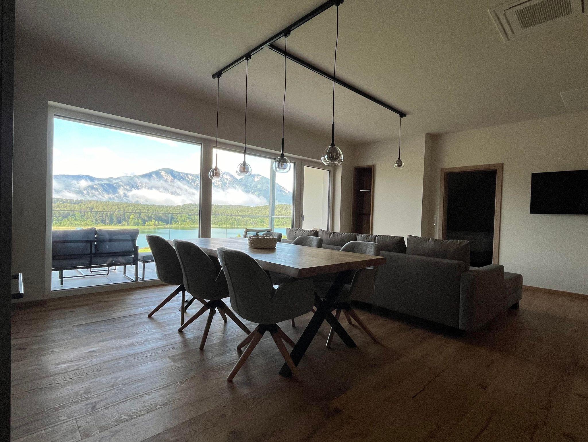 Das Appartement 4 befindet sich im 1. Stock, ist 55m2 groß und verfügt über eine 20m2 große überdachte Terrasse mit Blick auf den See. Die Terrasse ist mit Gartenmöbeln ausgestattet und lädt zum Verweilen, mit Aussicht auf die Karawanken, ein.