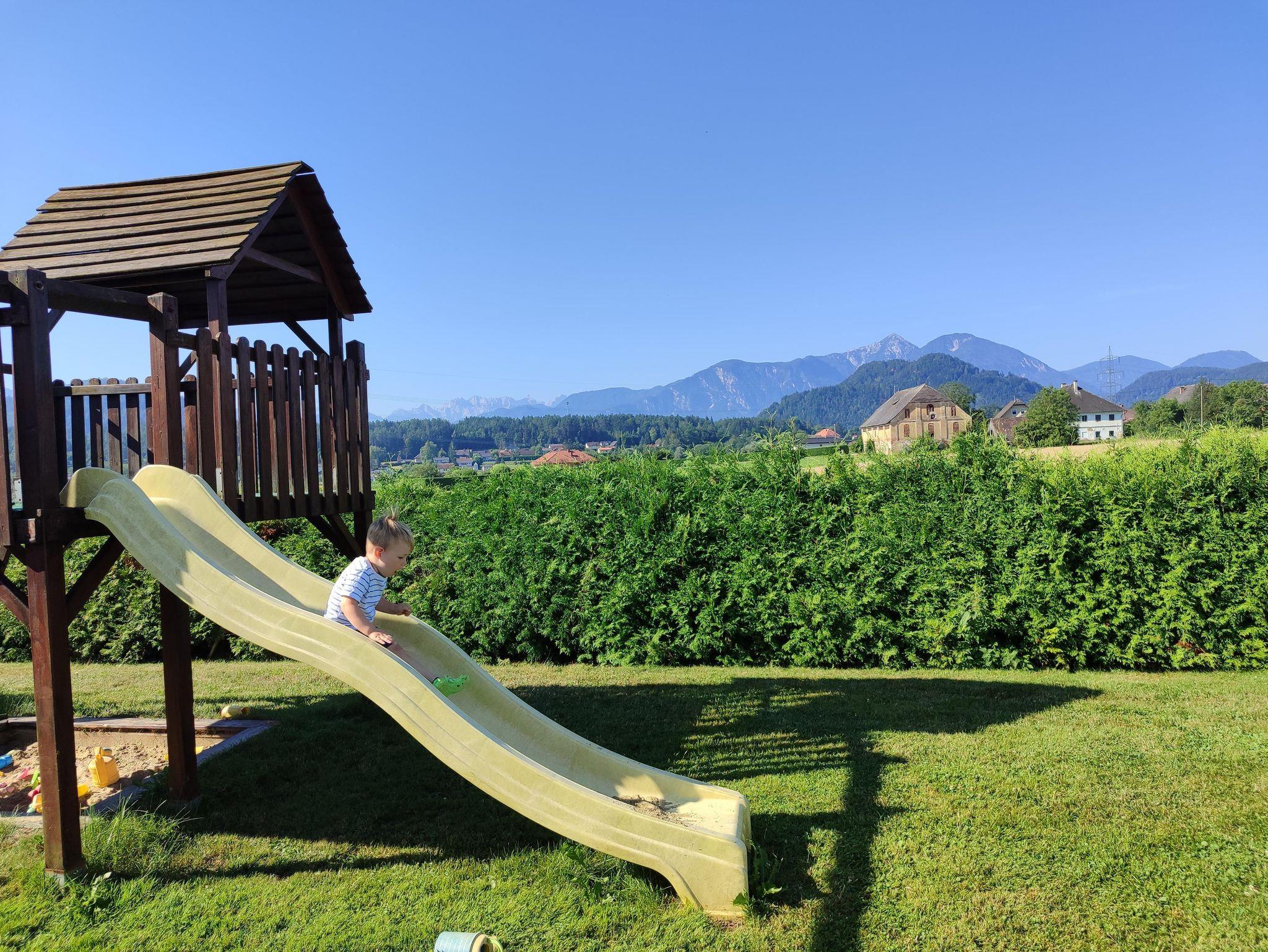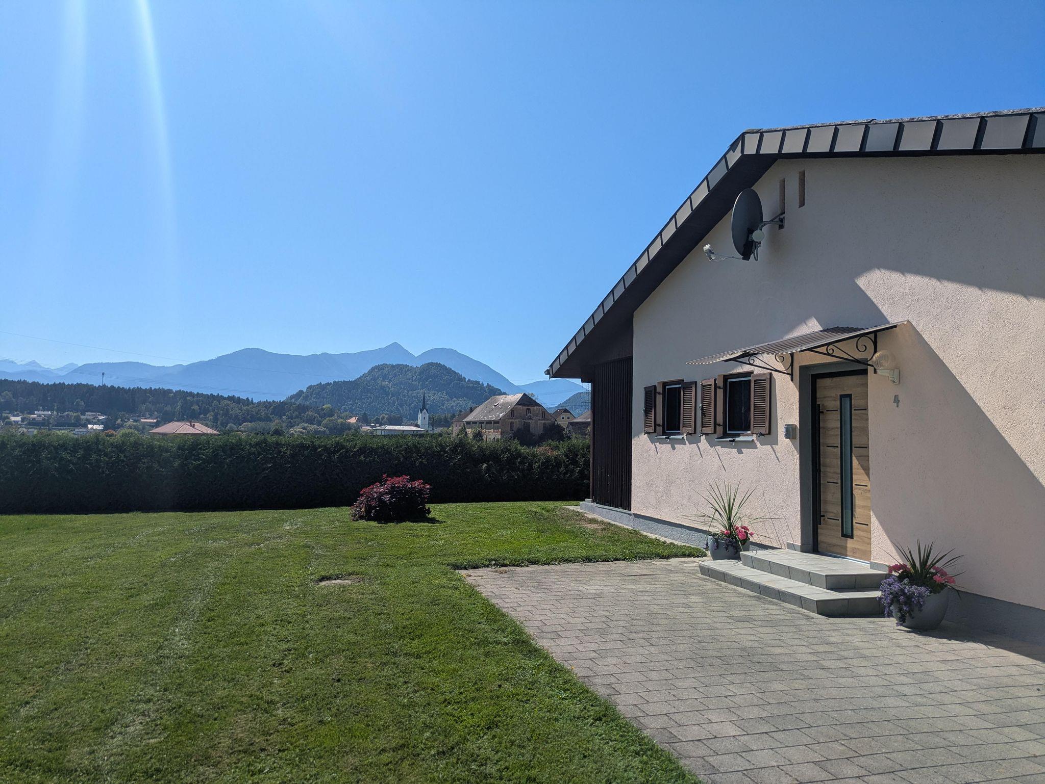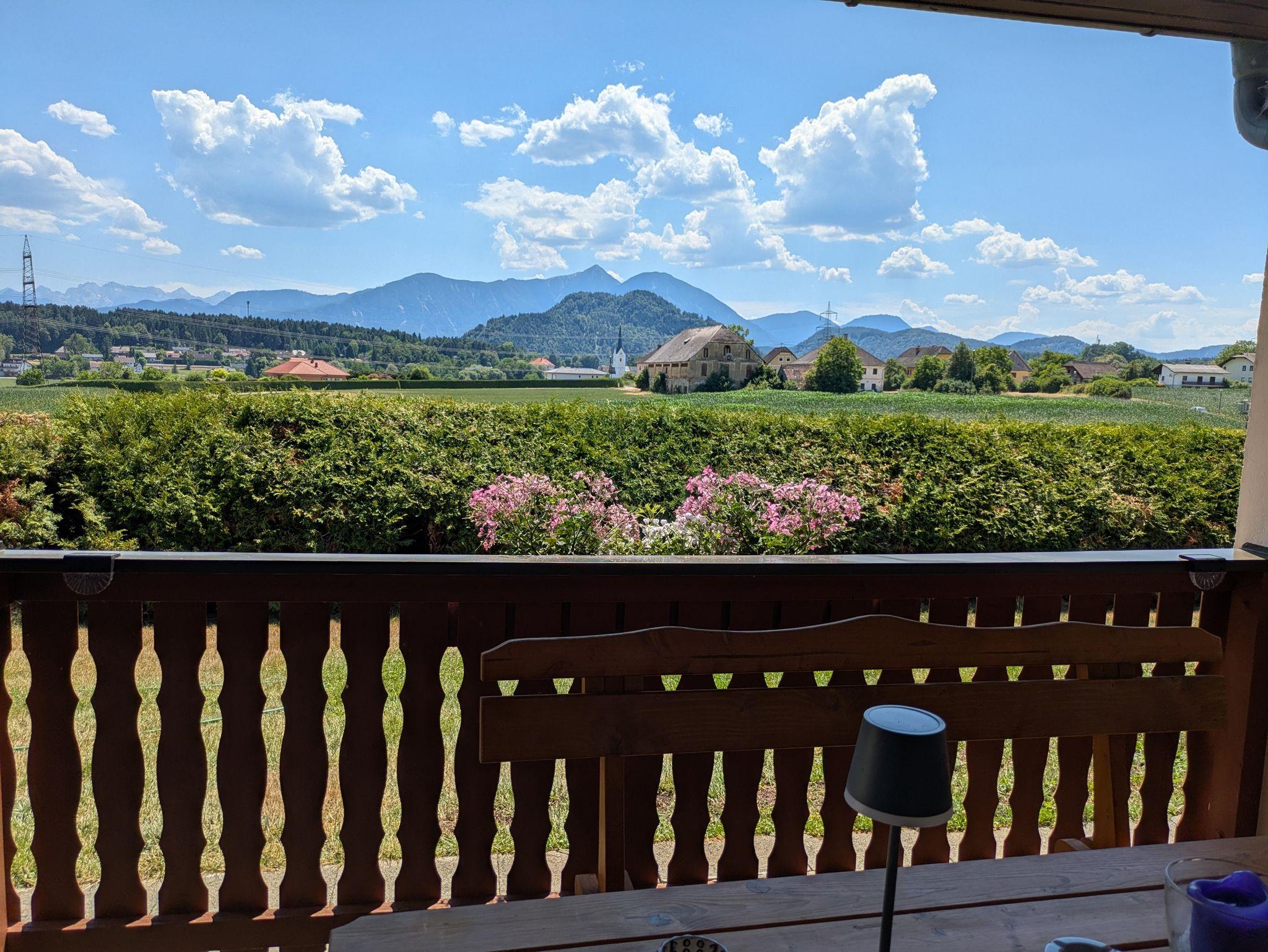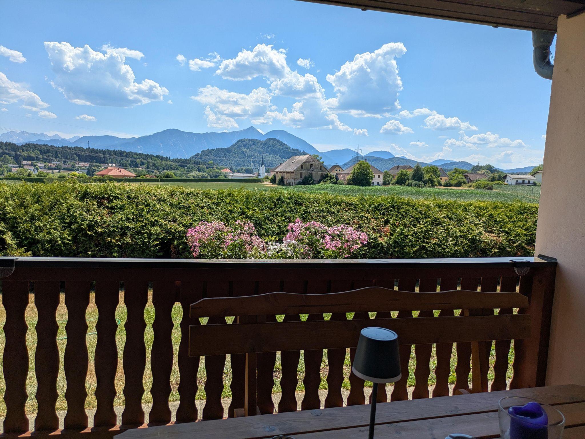 Highlight des Bungalows bleibt aber natürlich der atemberaubende Blick von der großzügigen überdachten Terasse in Richtung der Karawanken / Steiner Alpen.
