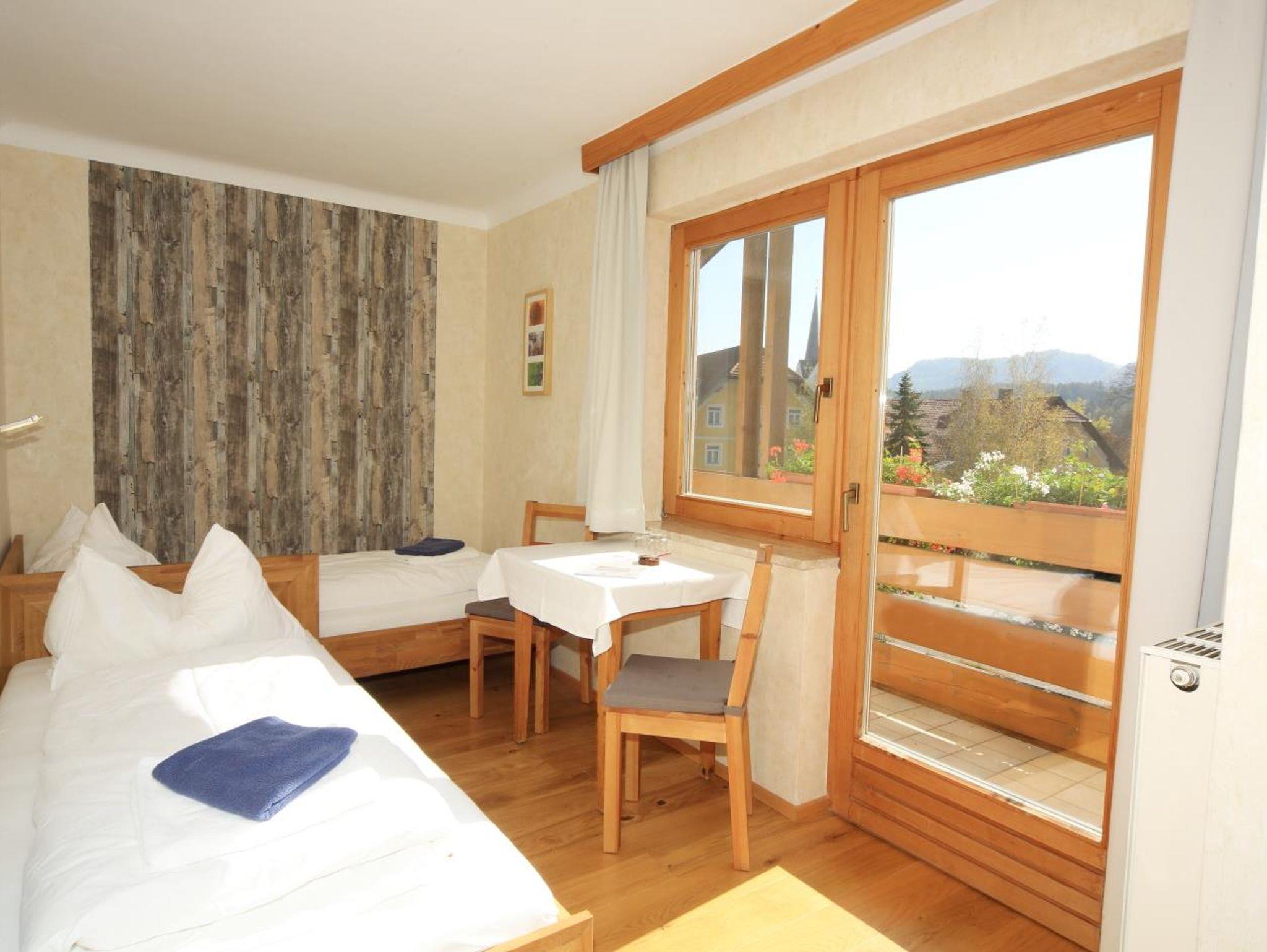 Mit Vollholzmöbeln eingerichtete Familieneinheit bestehend aus einem Doppelzimmer und einem Zweibettzimmer mit Verbindungstür. Beide Zimmer mit Du/WC und großem Balkon einmal Richtung Osten und einmal Richtung Süden.