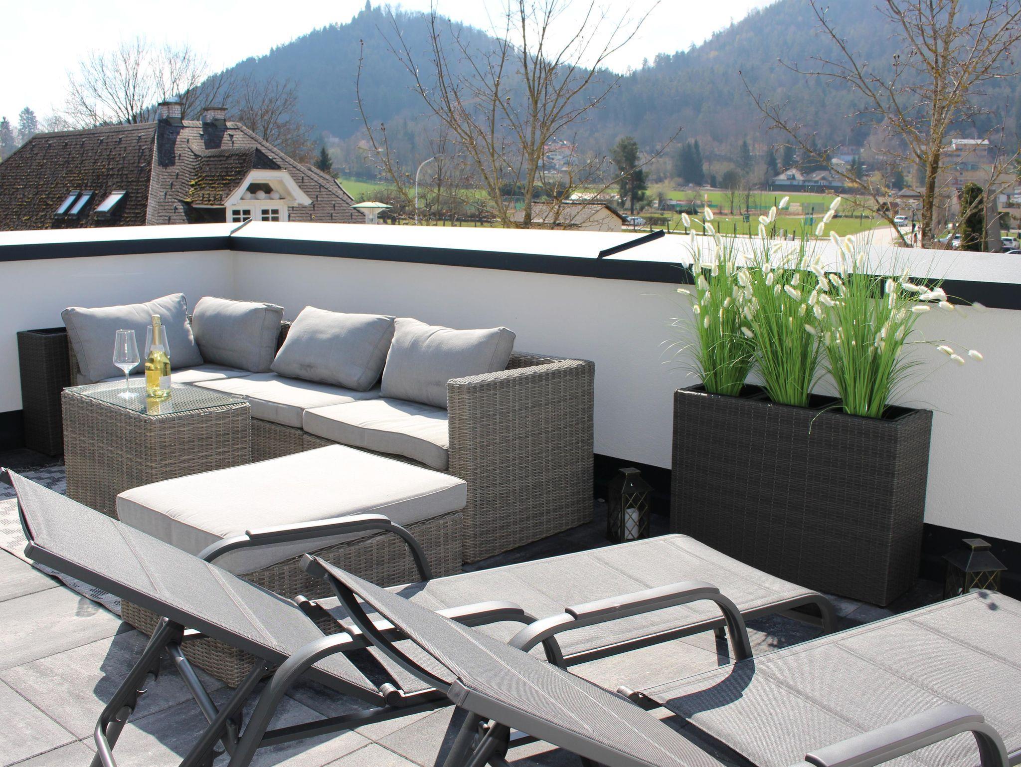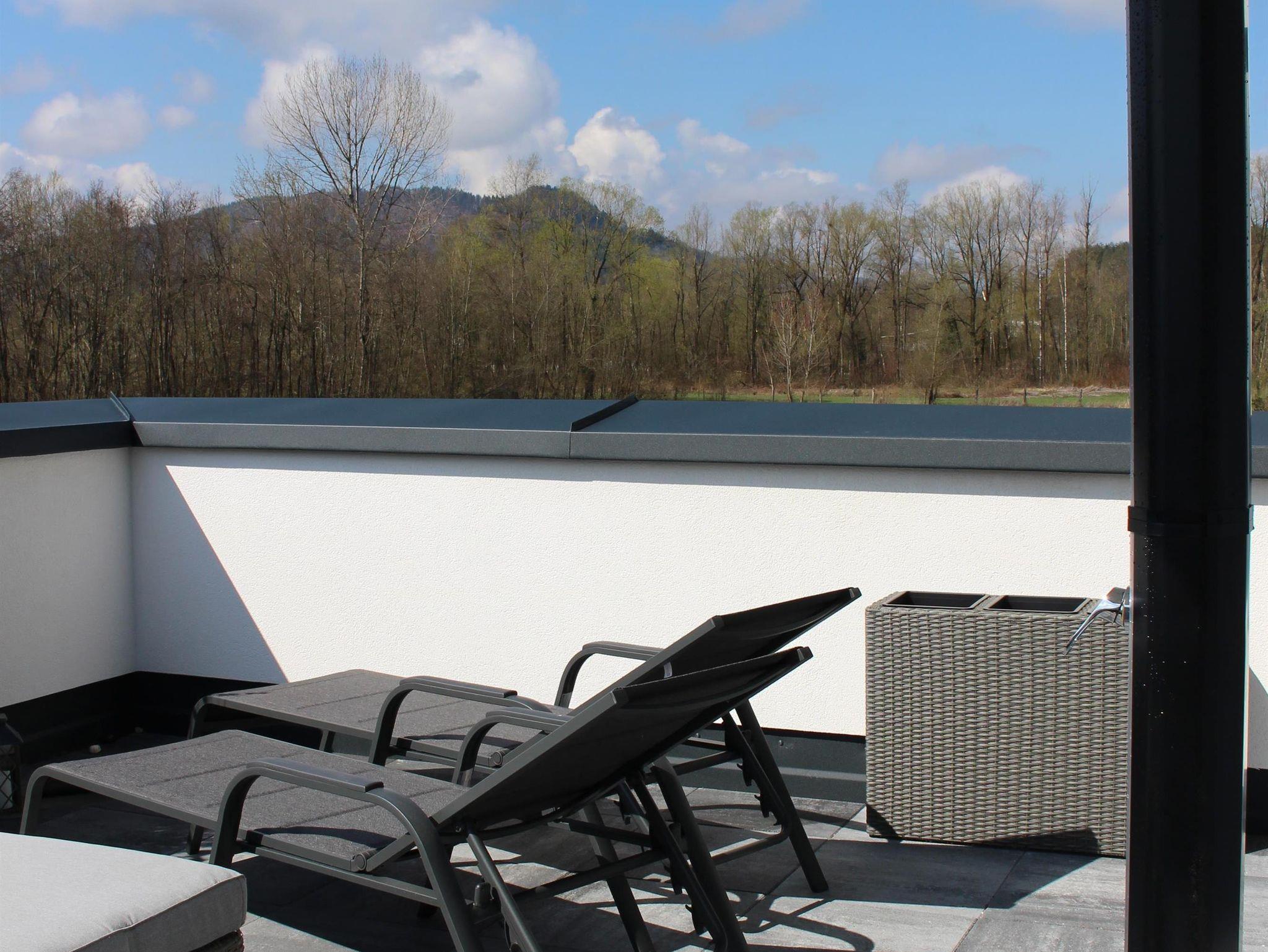 Die private Südterrasse mit 22m² und Rundumblick ladet zum Relaxen ein.