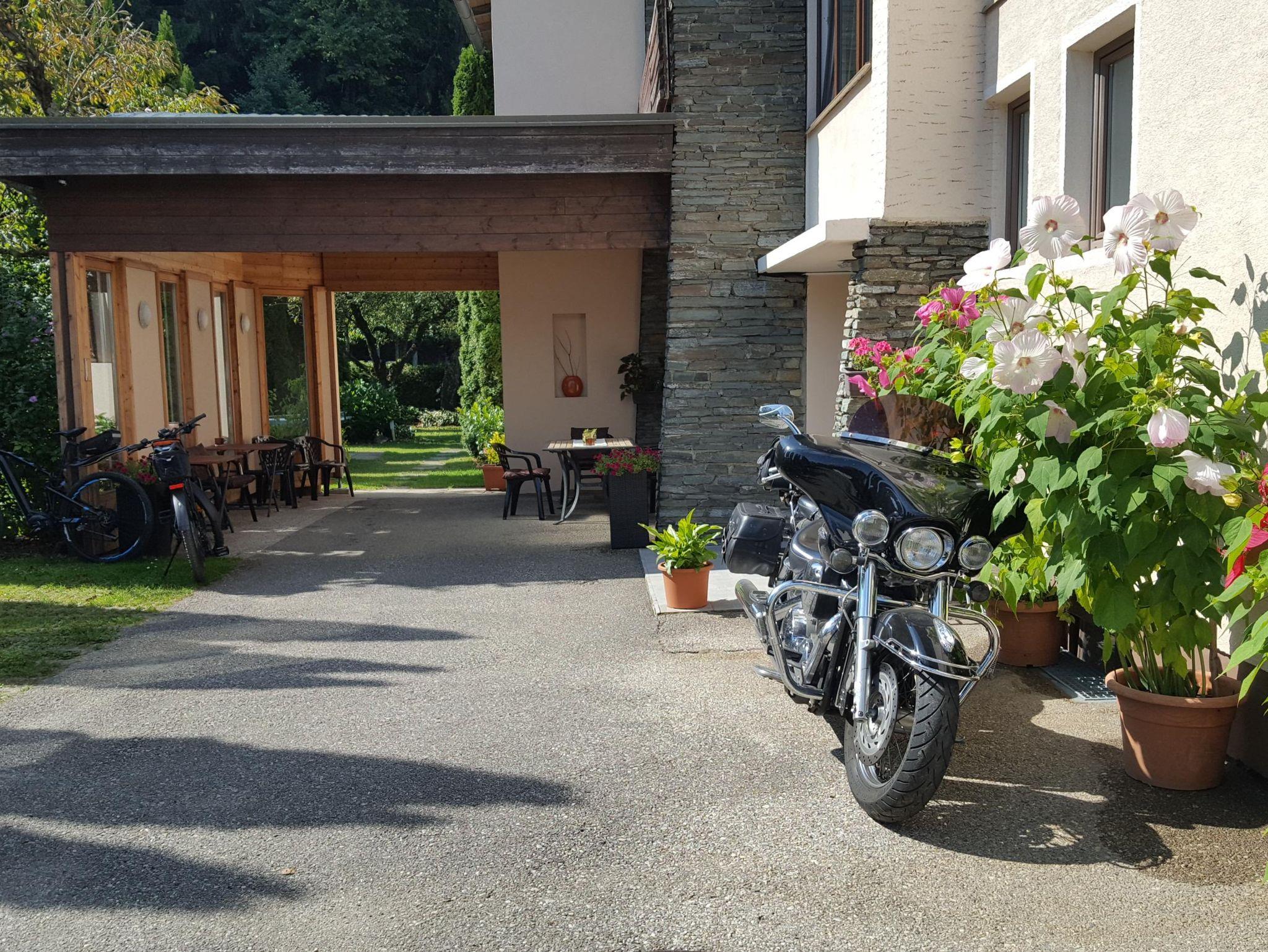 Weiters bieten wir Parkplatz, Liegewiese, überdachter Sitzgarten, versperrbare Radgarage (Lademöglichkeit )