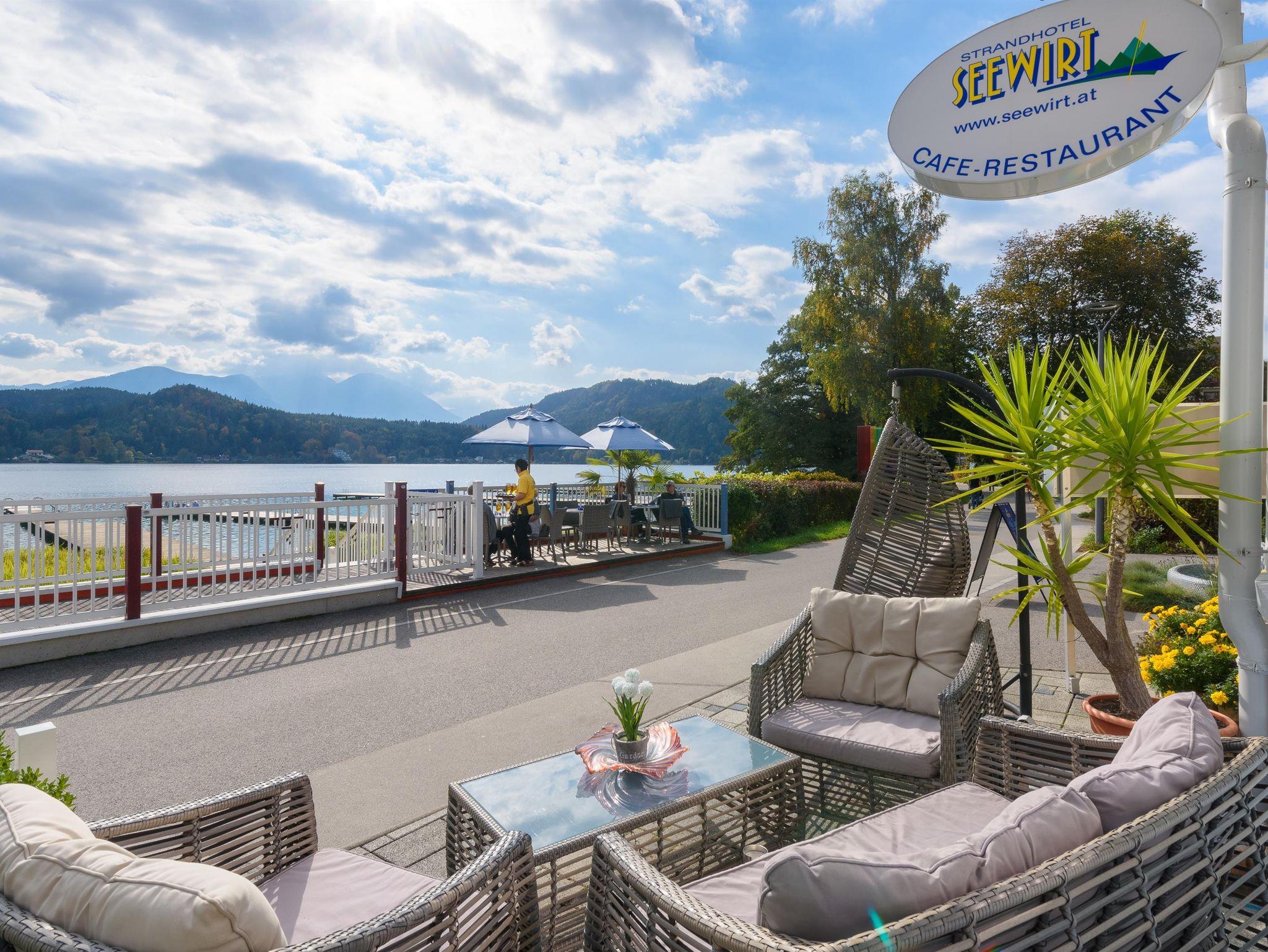 Seewirt Apartments: Urlaub am glitzernden See Erleben Sie unvergessliche Tage beim Seewirt Apartmentshotel in St. Kanzian am Klopeiner See an der Norduferpromenade! Genießen Sie die magische Verbindung aus atemberaubendem Seeblick und der Ruhe der Natur, den traumhaften Ausblick auf den See und dem Südkärntner Bergpanorama, die Ihren Aufenthalt zu einem echten Traum macht.