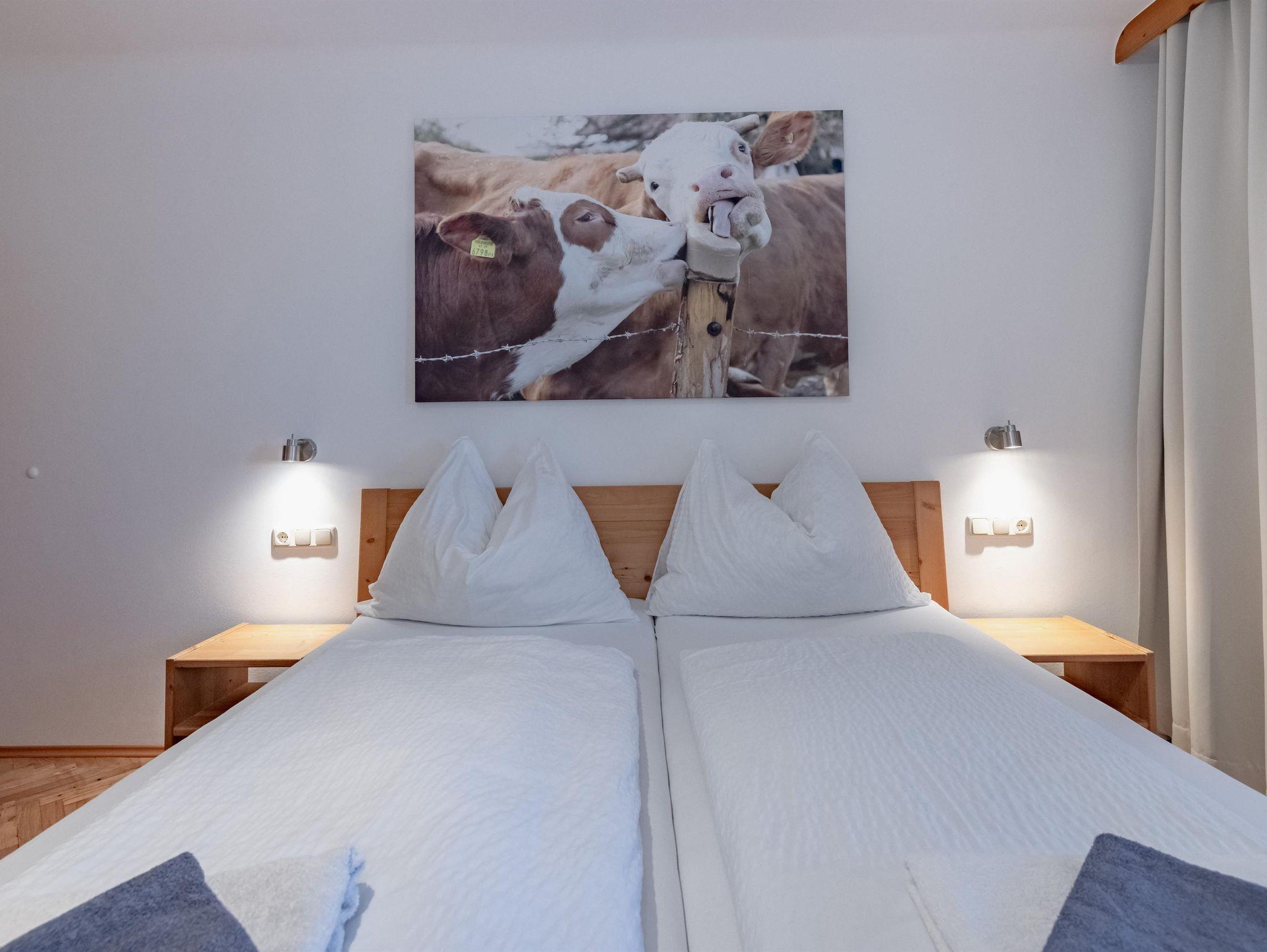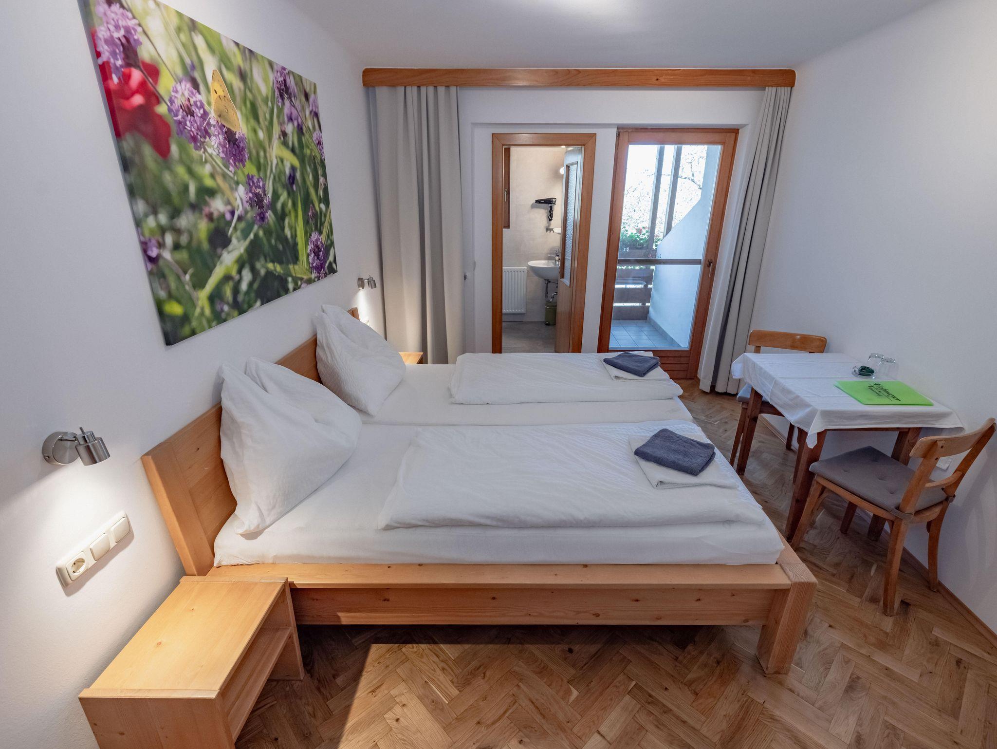 Gemütlich eingerichtetes Doppelzimmer mit DU/WC und eigenem Balkon ausgerichtet großteils Richtung Osten. Genießen Sie den Sonnenaufgang und den Ausblick auf unseren Obstgarten und die umliegenden Felder. Für unsere kleinen Gästen stehen selbstverständlich Zustellbetten zur Verfügung.