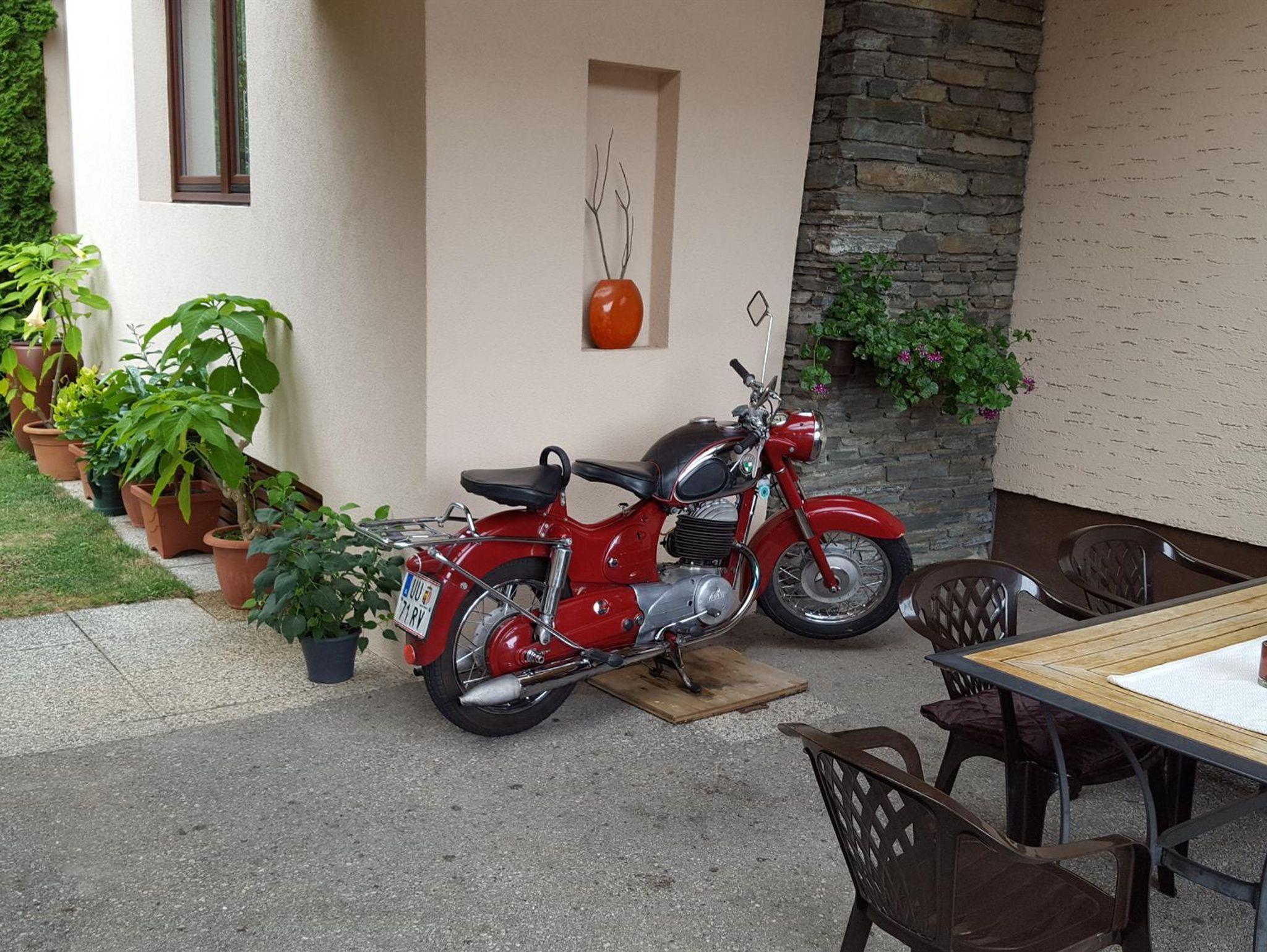 Weiters bieten wir Parkplatz, Liegewiese, überdachter Sitzgarten, versperrbare Radgarage (Lademöglichkeit )