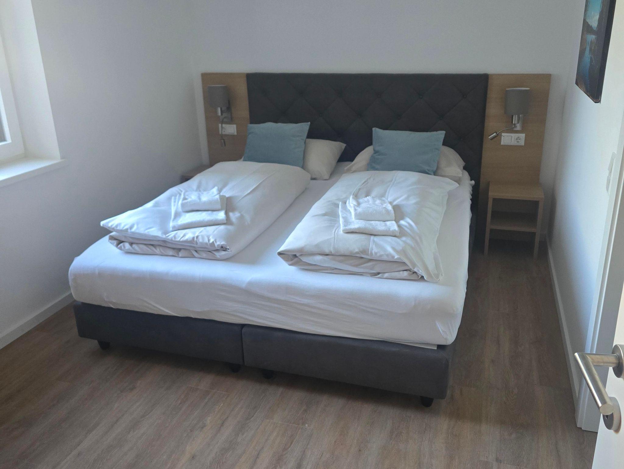 Willkommen in lakeside Appartements TOP 14, wo du auf 104 m² Platz für bis zu 8 Personen findest. Die Wohnung liegt im 1. Stock und bietet 2 Schlafzimmer mit Doppelbett sowie 1 Schlafzimmer mit Stockbett und im Wohnzimmer 1 Schlafcouch für 2 Personen. Der Balkon mit Seeblick lädt zum Entspannen ein, und die voll ausgestattete moderne Küche bietet alles, was du für einen komfortablen Aufenthalt benötigst. Jedes Schlafzimmer verfügt über ein angrenzendes Badezimmer. Zudem ist jedes Zimmer mit einem TV ausgestattet, damit du dich rundum wohlfühlst.