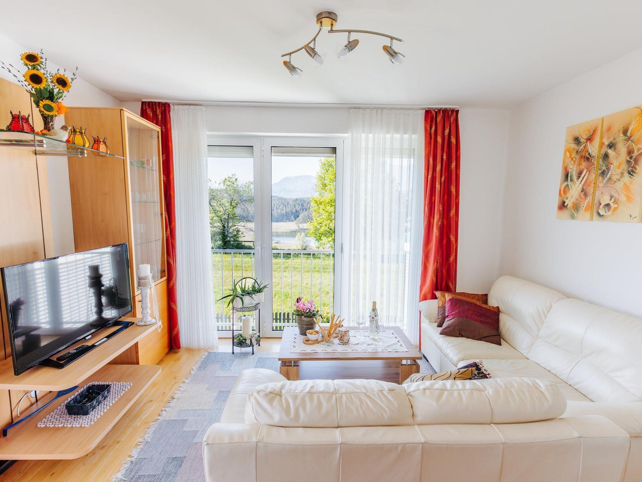 Die Ferienwohnung ist 71m² groß, bietet Platz für 5 Personen und beinhaltet zwei getrennte Schlafzimmer. Eines der Schlafzimmer verfügt über ein Doppelbett sowie ein Schlafsofa, das zweite über zwei Singlebetten. Weiters gibt es ein Wohnzimmer, eine Küche mit einer Essecke, Dusche mit WC und einen Vorraum. Die Wohnung verfügt zusätzlich über eine Sat/TV Anlage, Geschirrspüler, Kaffeemaschine, Küchenutensilien, Geschirr-, Handtücher und Bettwäsche. Sie liegt im 1.OG und ist an einen Balkon angeschlossen, welcher Sitzmöglichkeiten sowie einen Blick über den Turnersee und die Karawanken bietet.