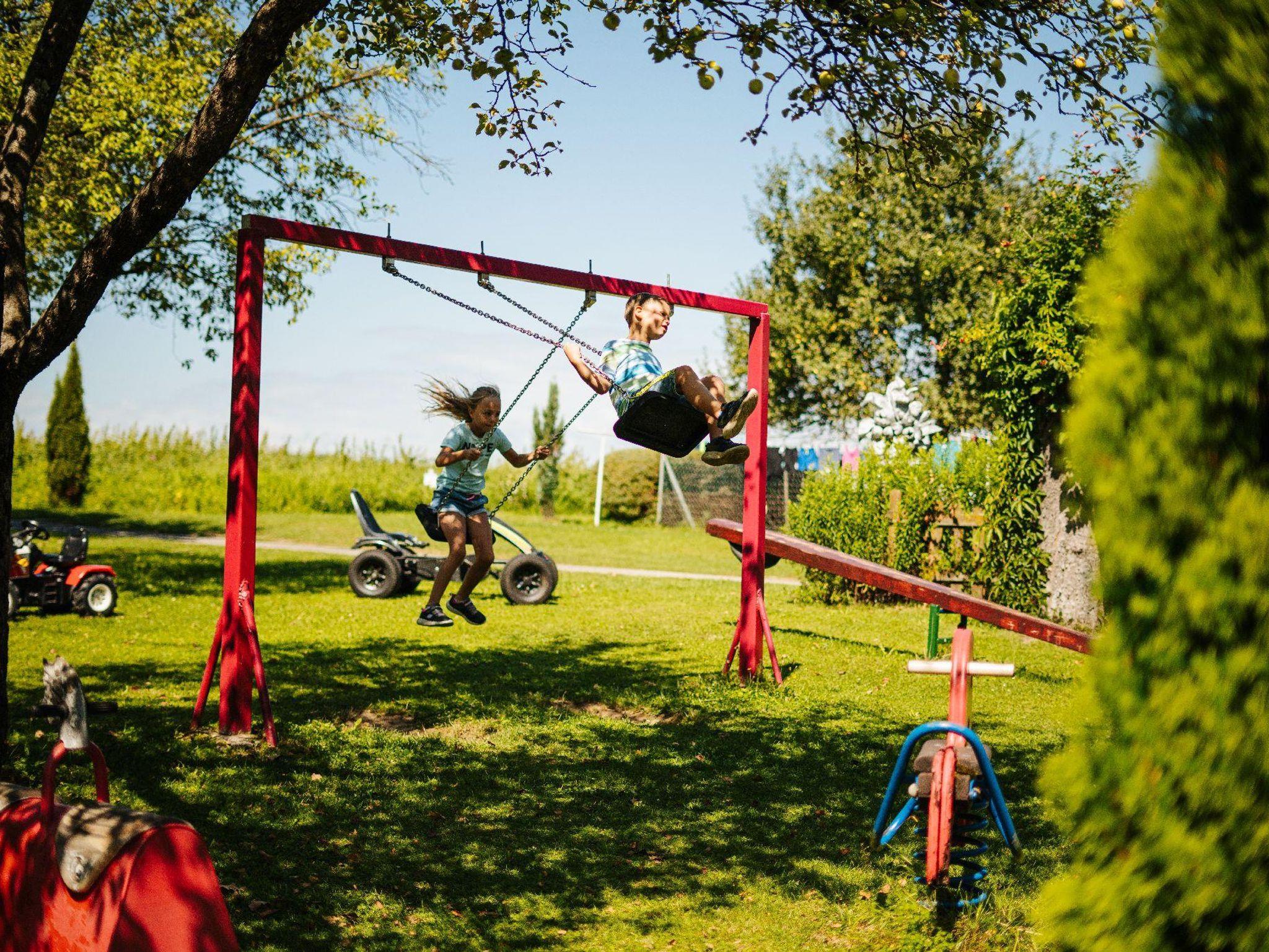 Genießen Sie auf unserem riesigen Hof-Areal die Ruhe, während sich die Kids bei den Streicheltieren oder am großen Spielplatz austoben.