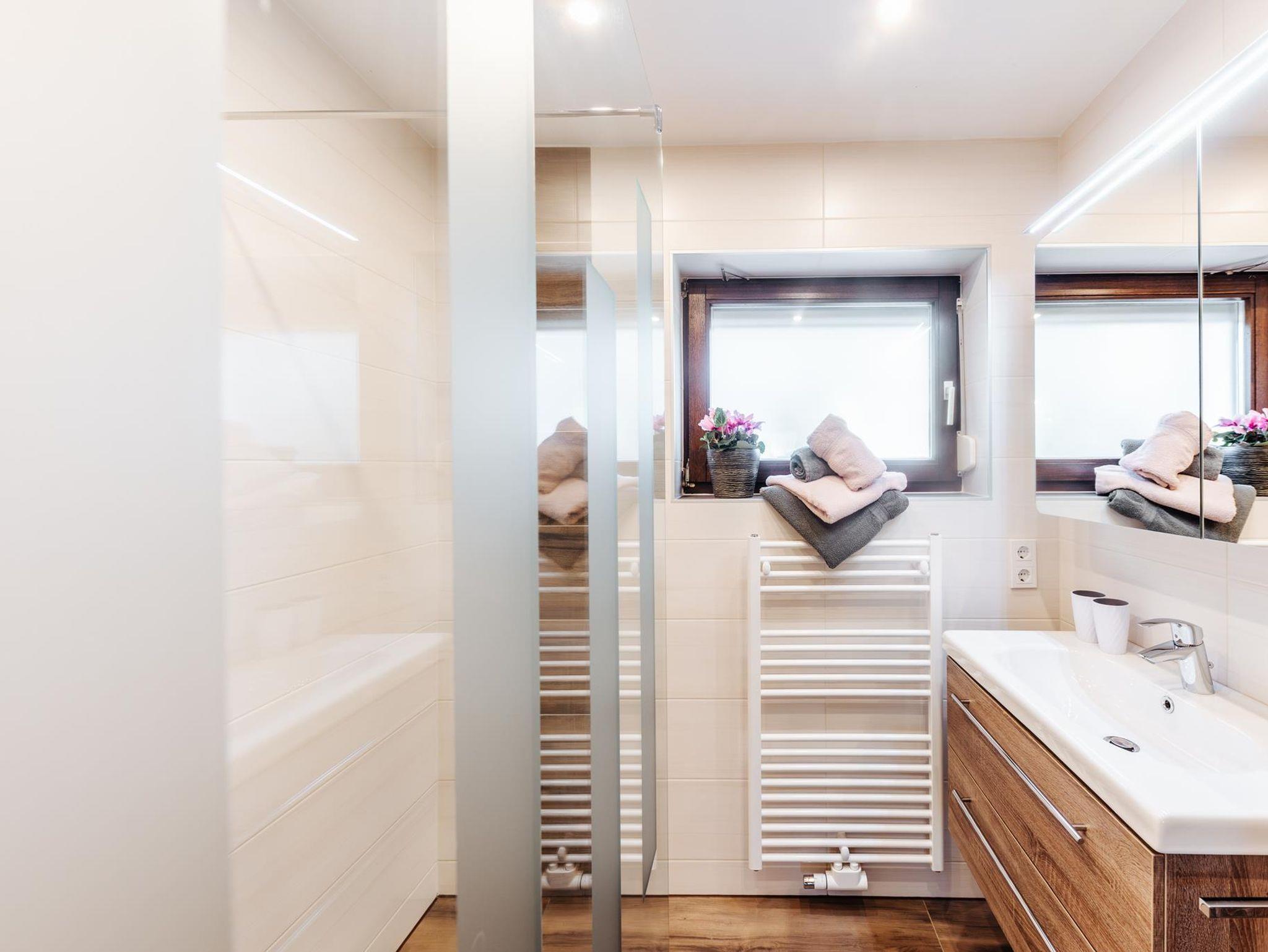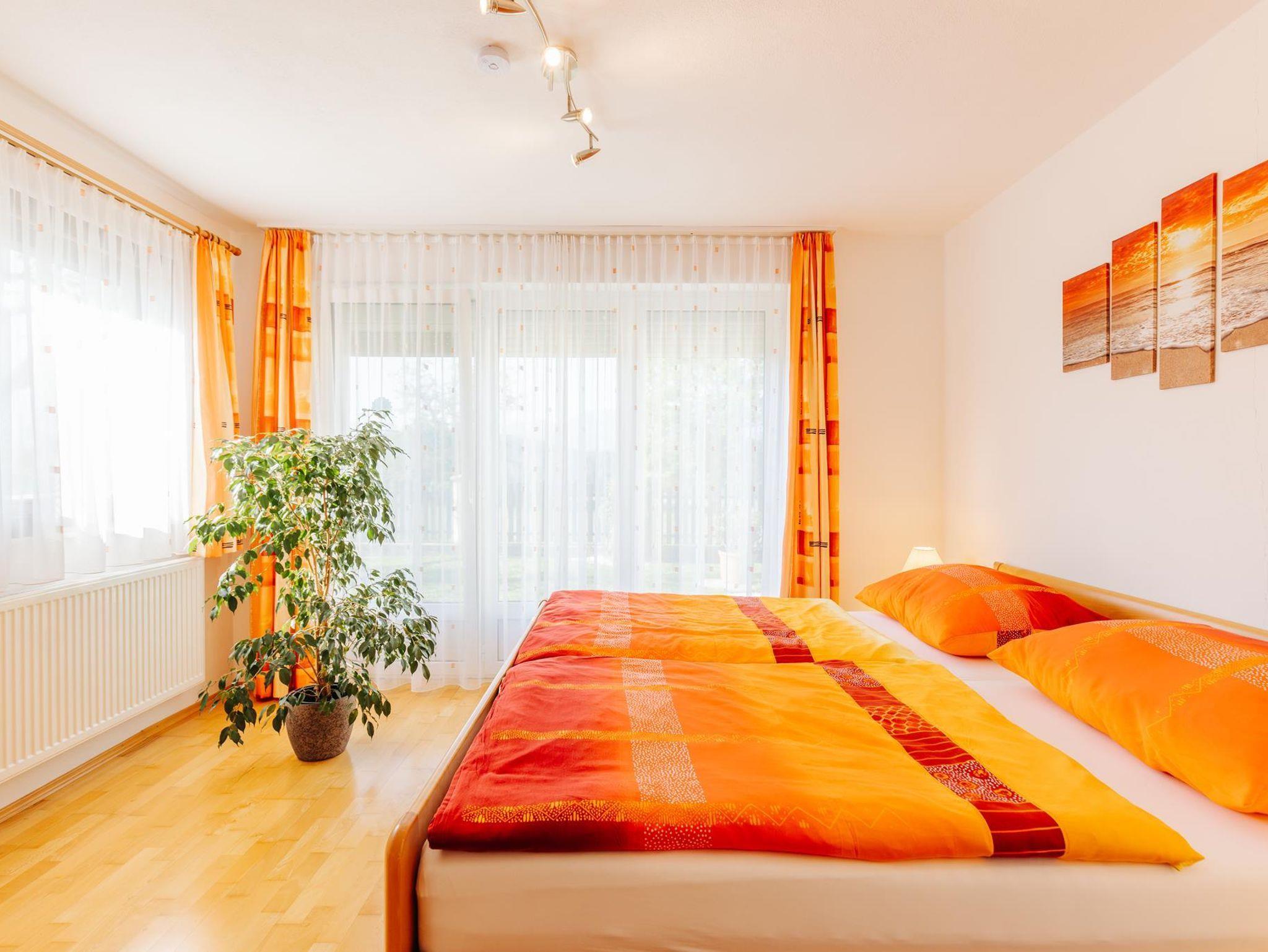 Die Ferienwohnung ist 73m² groß, bietet Platz für sechs Personen und beinhaltet zwei getrennte Schlafzimmer. Eines der Schlafzimmer verfügt über ein Doppelbett, das zweite Schlafzimmer über ein Doppelbett sowie ein Singlebett und einem Schlafsofa. Weiters gibt es ein Wohnzimmer mit einer Essecke, eine Küche, Dusche mit WC und einen Vorraum. Die Wohnung verfügt zusätzlich über eine Sat/TV Anlage, Geschirrspüler, Kaffeemaschine, Küchenutensilien, Geschirr-, Handtücher und Bettwäsche. Sie liegt im Tiefparterre und ist an einen Garten angeschlossen, der ausschließlich für diese Wohnung zur Verfügung steht. Im Garten befinden sich Liegestühle sowie Sitzmöglichkeiten unter einem schattenspendenden Nussbaum.