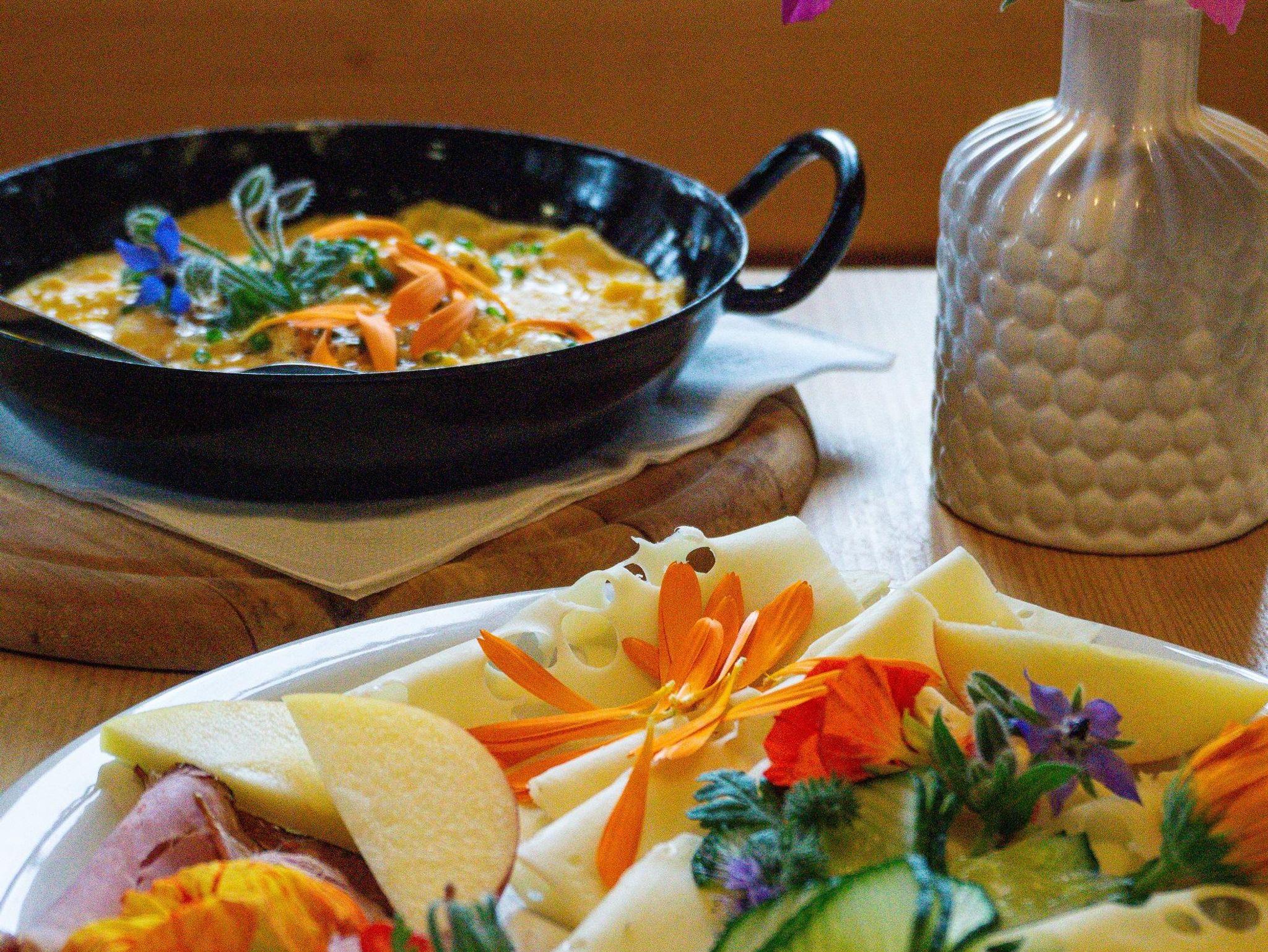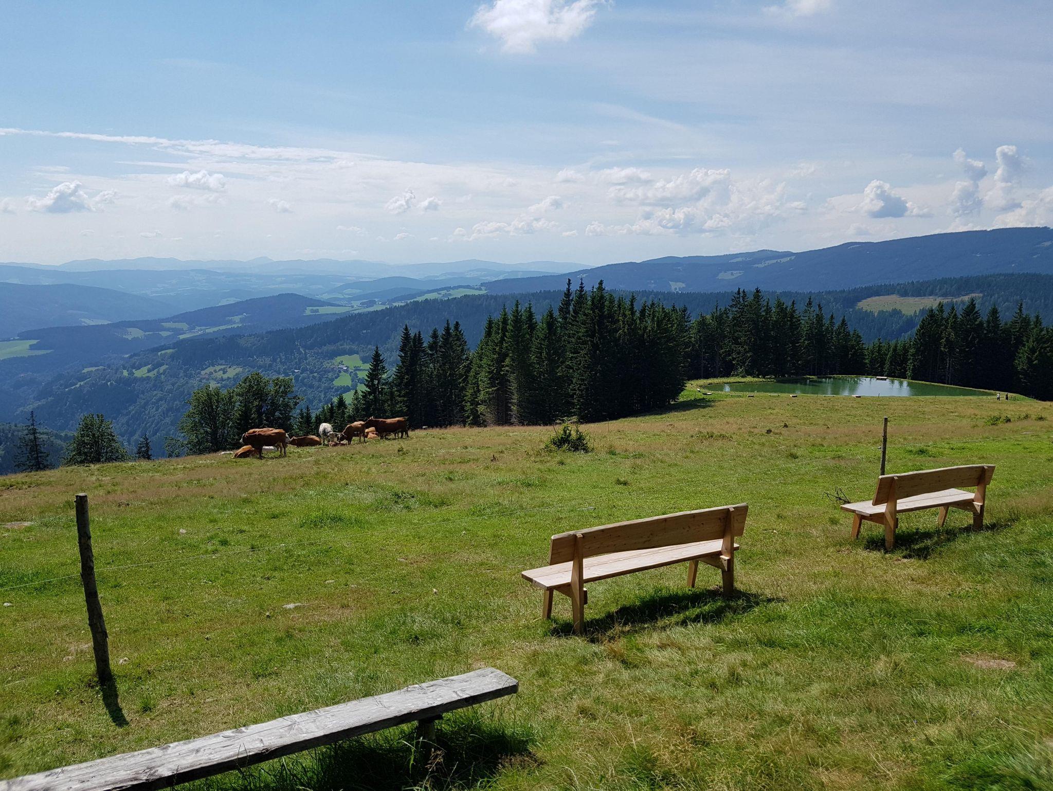 Sonnige, ruhige Lage, schöne Aussicht, neben Sport- und Tennisplatz, eigene Alm, Fisch- und Badeteich, Grill- und Campingmöglichkeit, Tiere zum Streicheln.