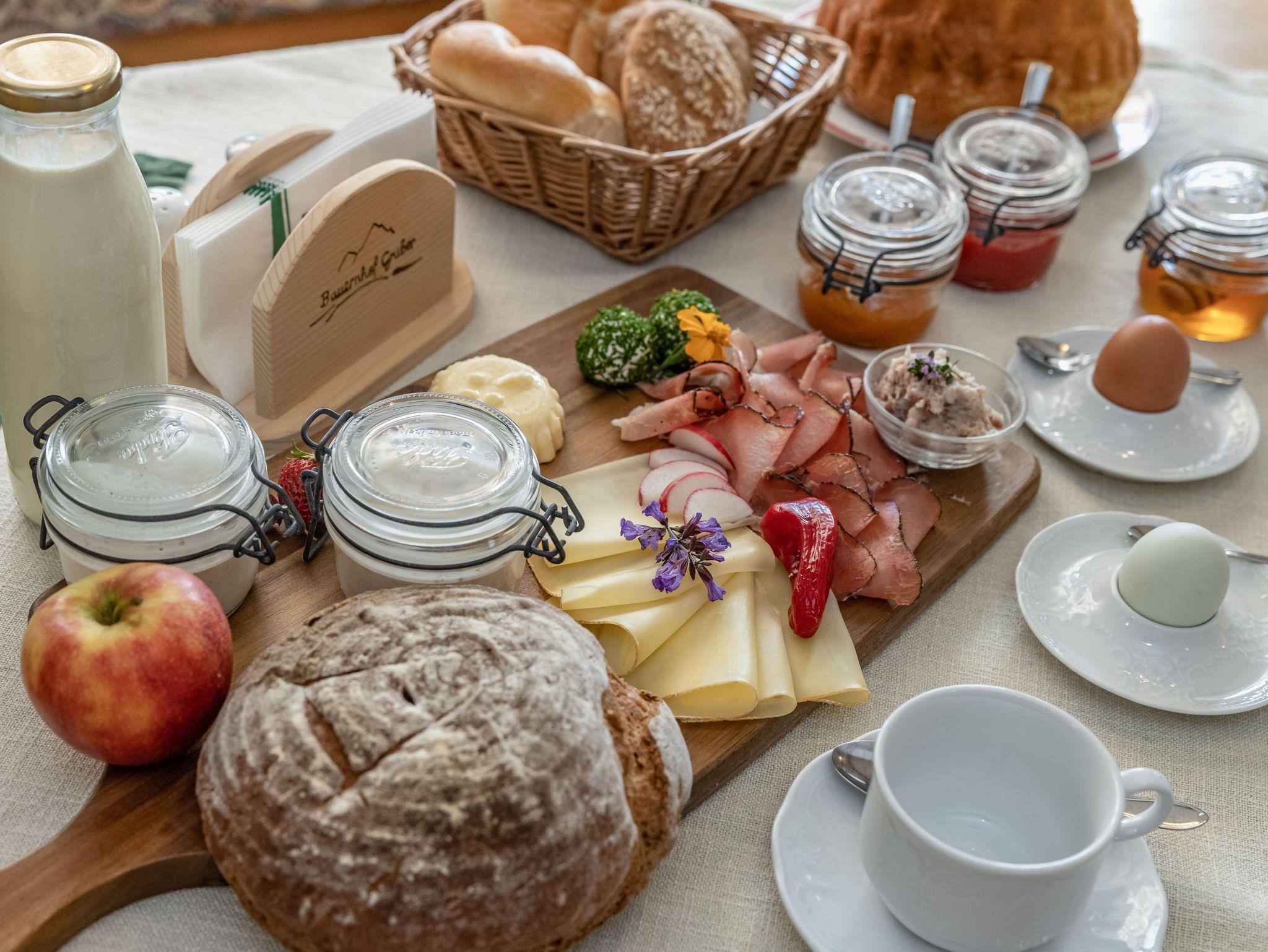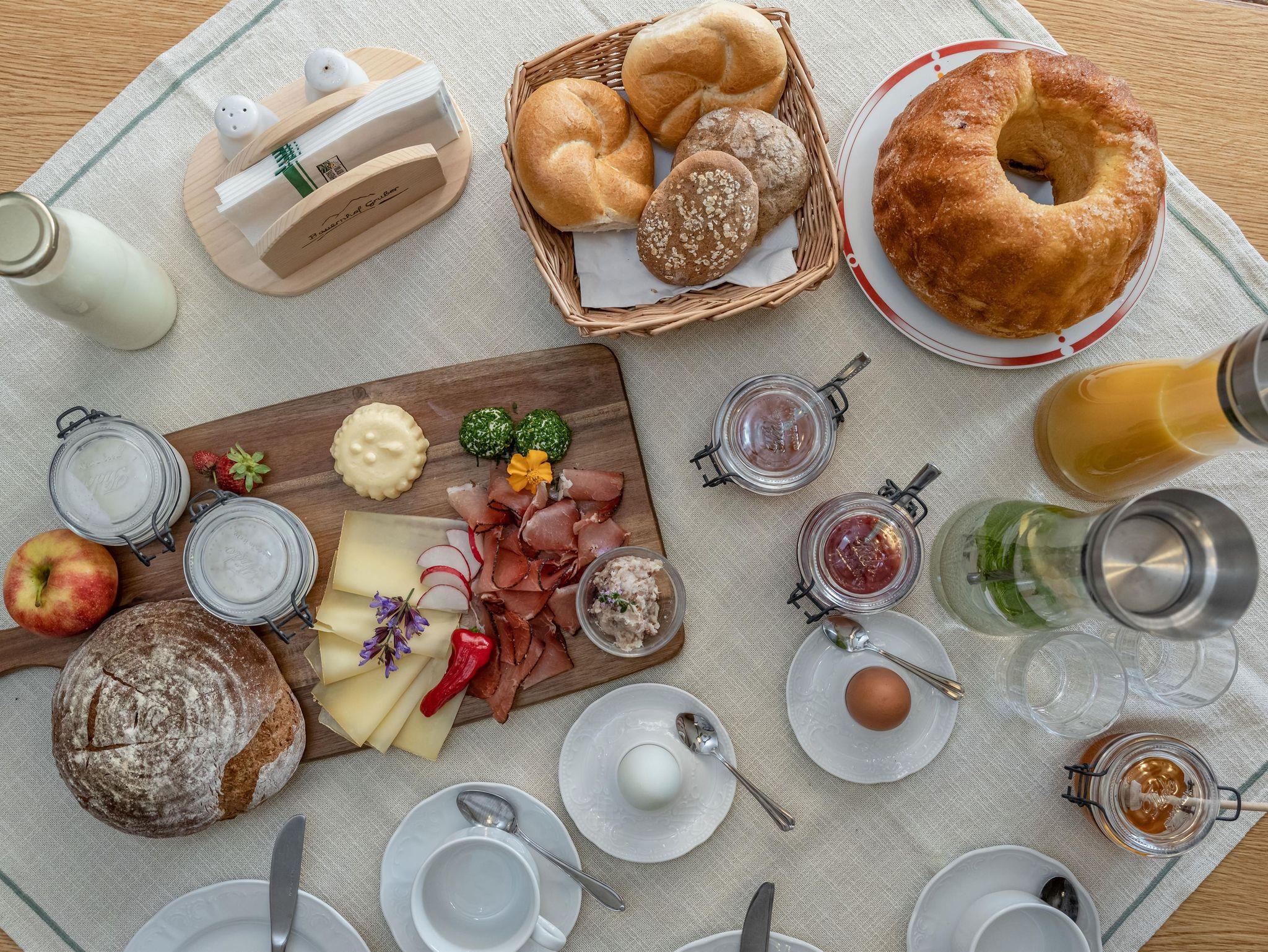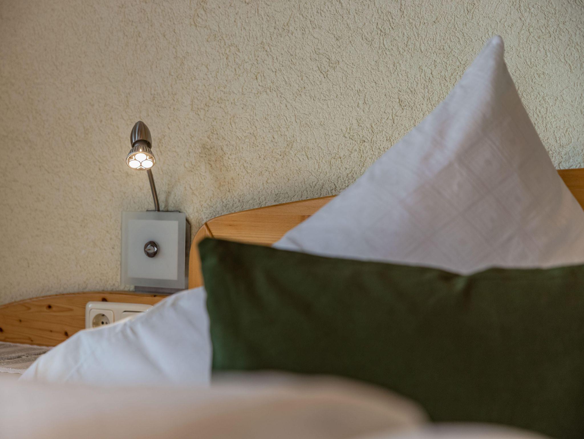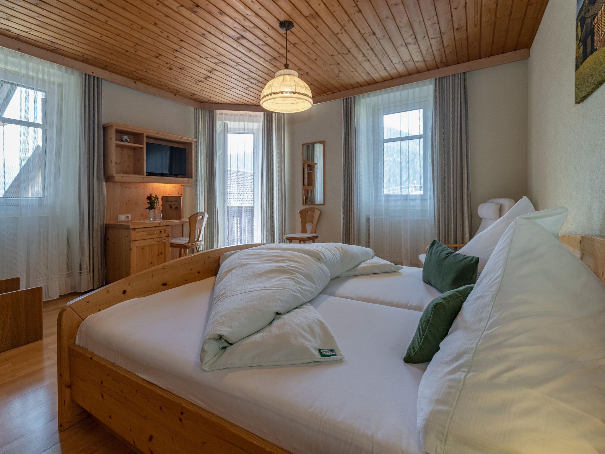 Gemütlich und liebevoll eingerichtete Doppelbettzimmern. Sie sind 20 m2 groß und mit Du/ WC, Sat/TV, Wlan, Kühlschrank und Südbalkon ausgestattet. Auch für ein Gitter - oder Zustellbett wäre noch ausreichend Platz vorhanden. Kraftvolles Frühstücksbuffet mit zum Teil hofeigenen Produkten.
