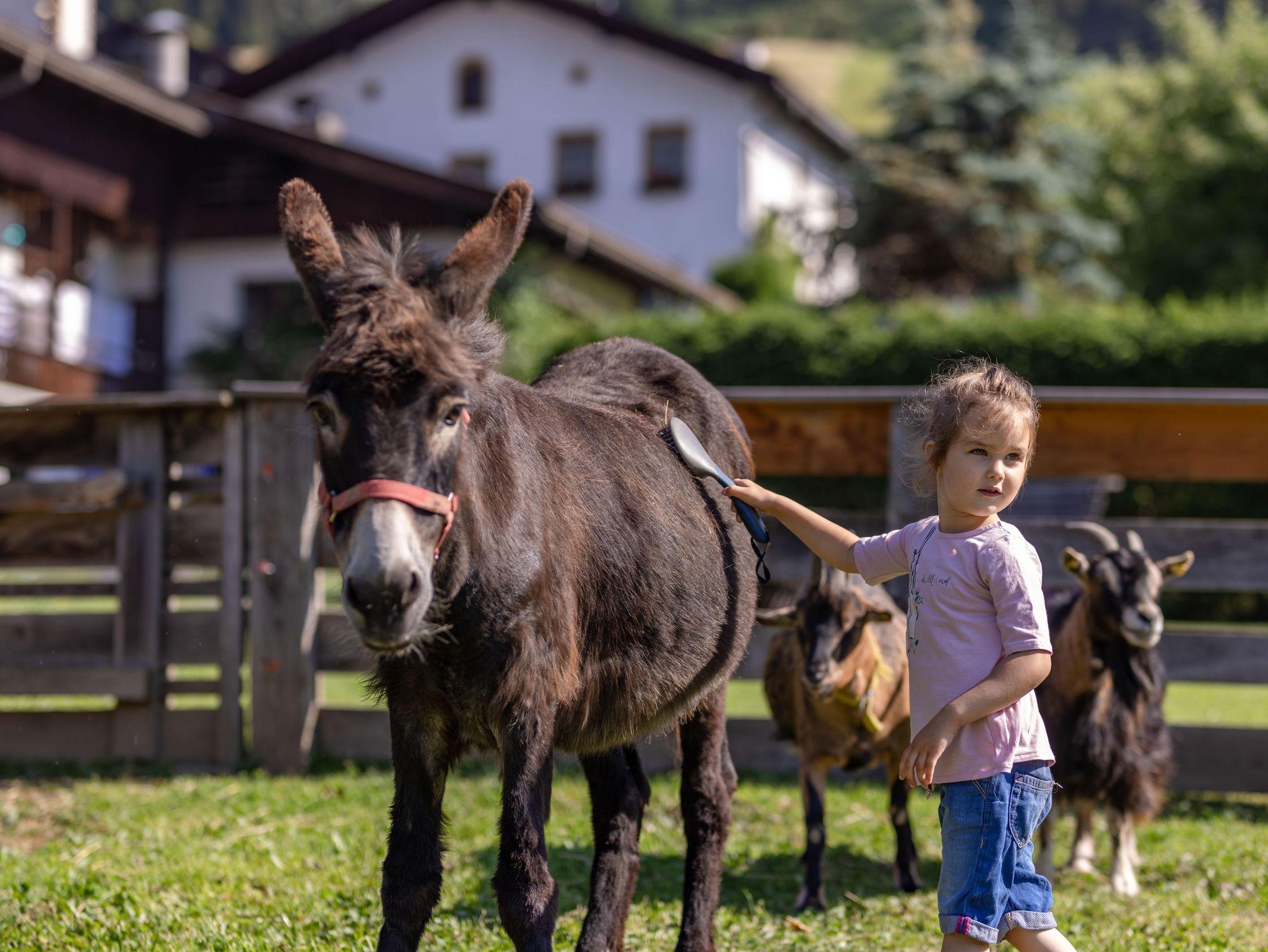 Unser Ferienhaus liegt am Ortsrand mit großer Spielwiese und kleiner Viehhütte für unsere Streicheltiere, Gartenhaus mit Grillmöglichkeit, Tourentipps, Wanderkarten zum ausleihen, Überdachter PKW Parkplatz. Spieleraum mit Tischtennis, Tischfußball, Dart und Stadelkino. Auf unserem Hof gibt es Kühe, Hühner, Katzen, Zwergziegen Jenny und Ella und unsere beiden Eselin SINA.