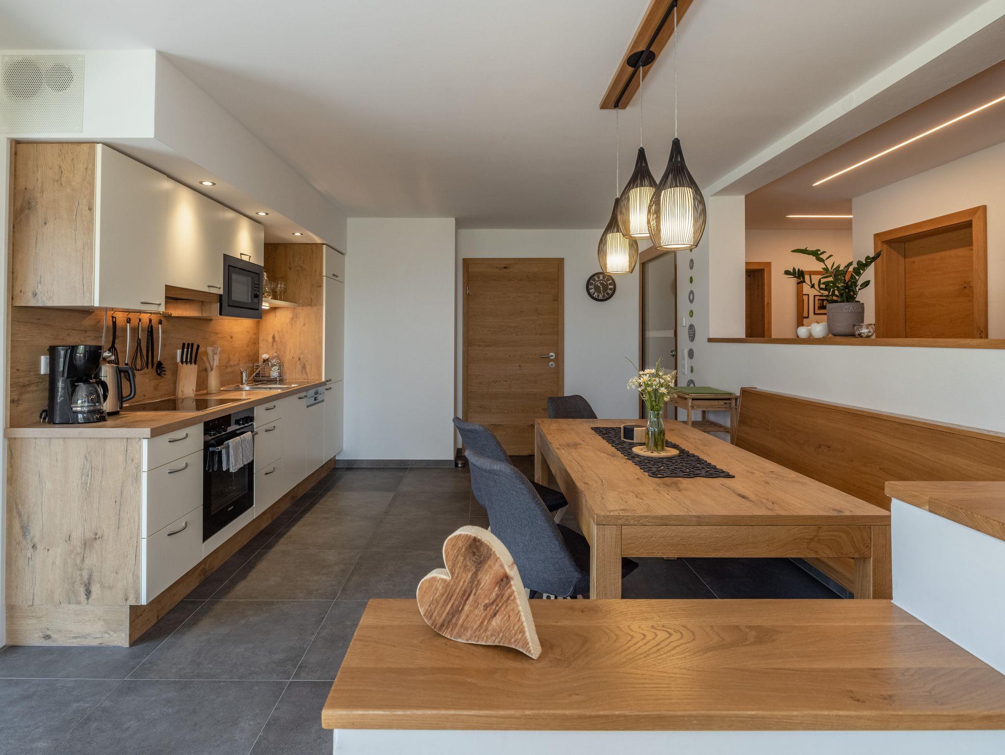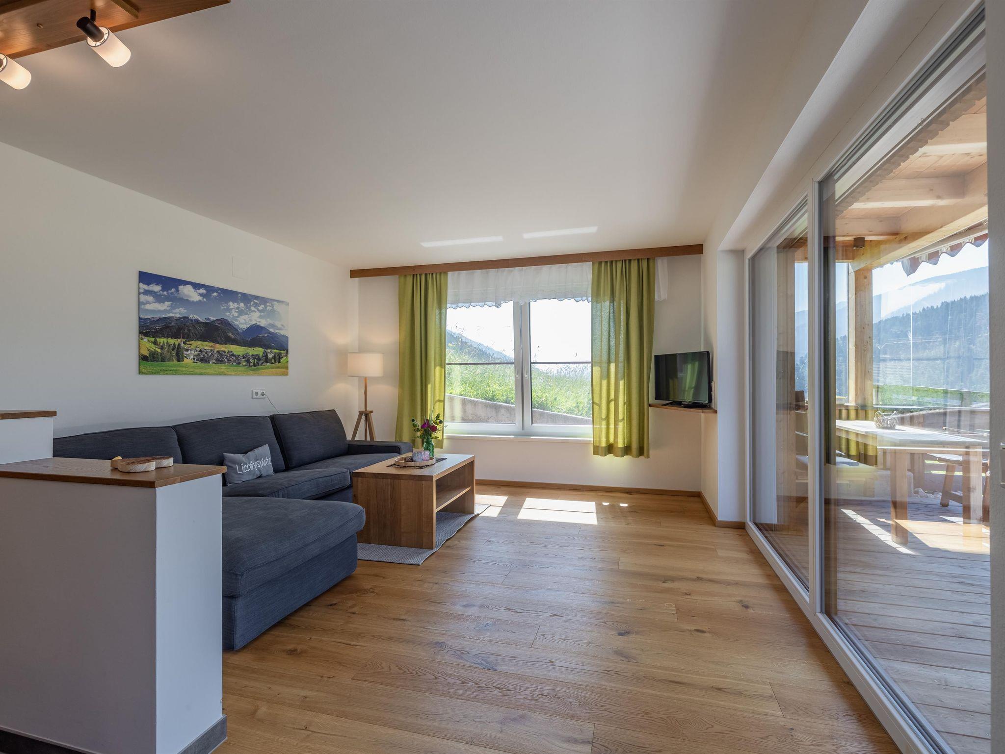 Die Fewo Alpenblick mit 55 m² befindet sich im Dachgeschoss unseres Ferienhauses. Sie ist mit mit heimischem Holz liebevoll und komplett eingerichtet und besteht aus einer Küche, einem Doppelbettzimmer und einem Zimmer mit zwei getrennten Betten, Du/Wc, einem Wohn-Esszimmer mit Ausziehcouch, Sat/Tv, Wlan und Balkon mit herrlicher Aussicht auf die karnische Bergwelt.