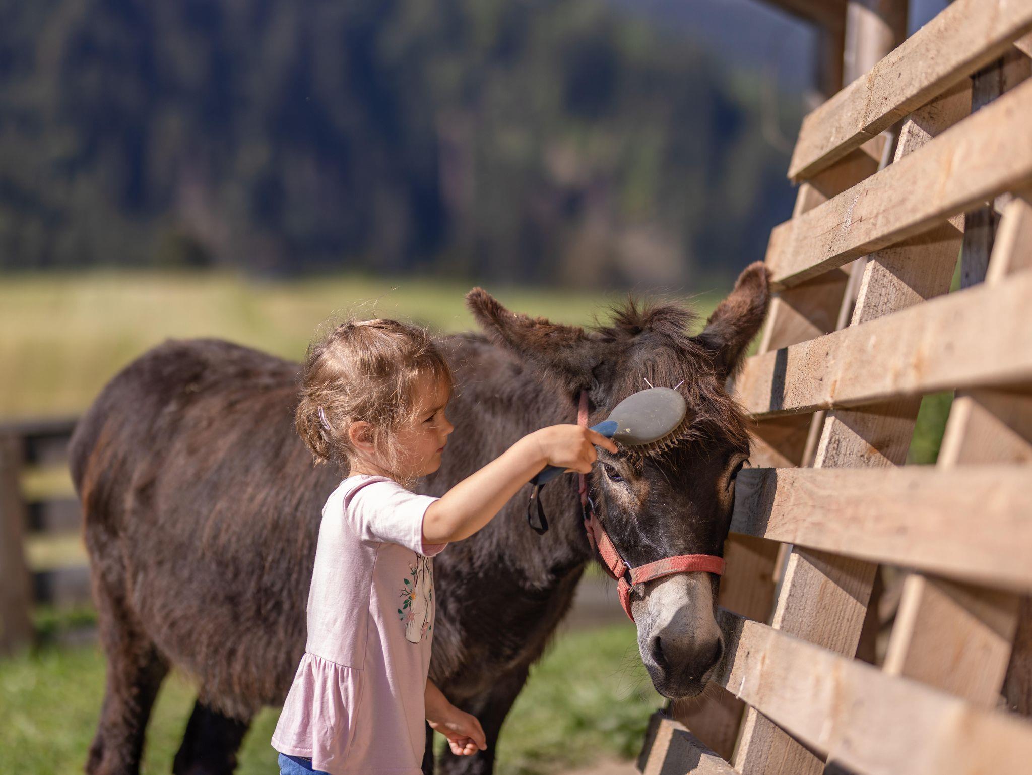 Unser Ferienhaus liegt am Ortsrand mit großer Spielwiese und kleiner Viehhütte für unsere Streicheltiere, Gartenhaus mit Grillmöglichkeit, Tourentipps, Wanderkarten zum ausleihen, Überdachter PKW Parkplatz. Spieleraum mit Tischtennis, Tischfußball, Dart und Stadelkino. Auf unserem Hof gibt es Kühe, Hühner, Katzen, Zwergziegen Jenny und Ella und unsere beiden Eselin SINA.