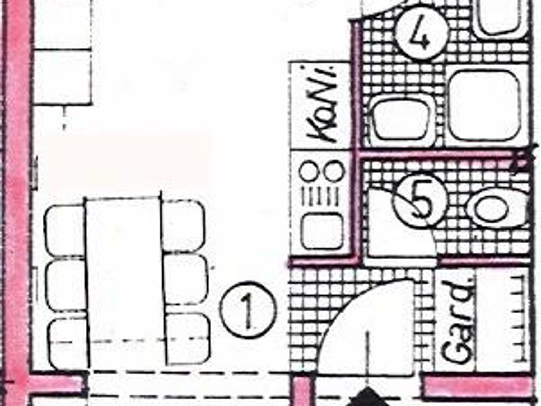 Einrichung aus Holz- Großer Wohnraum (E-Herd mit Backrohr,Kaffeemaschine, Kühlschrank,Geschirr) Couch, Eckbank mit Eßtisch Dusche/WC getrennt Schlafzimmer mit Doppelbett, Schlafzimmer mit Etagenbett, Balkon
