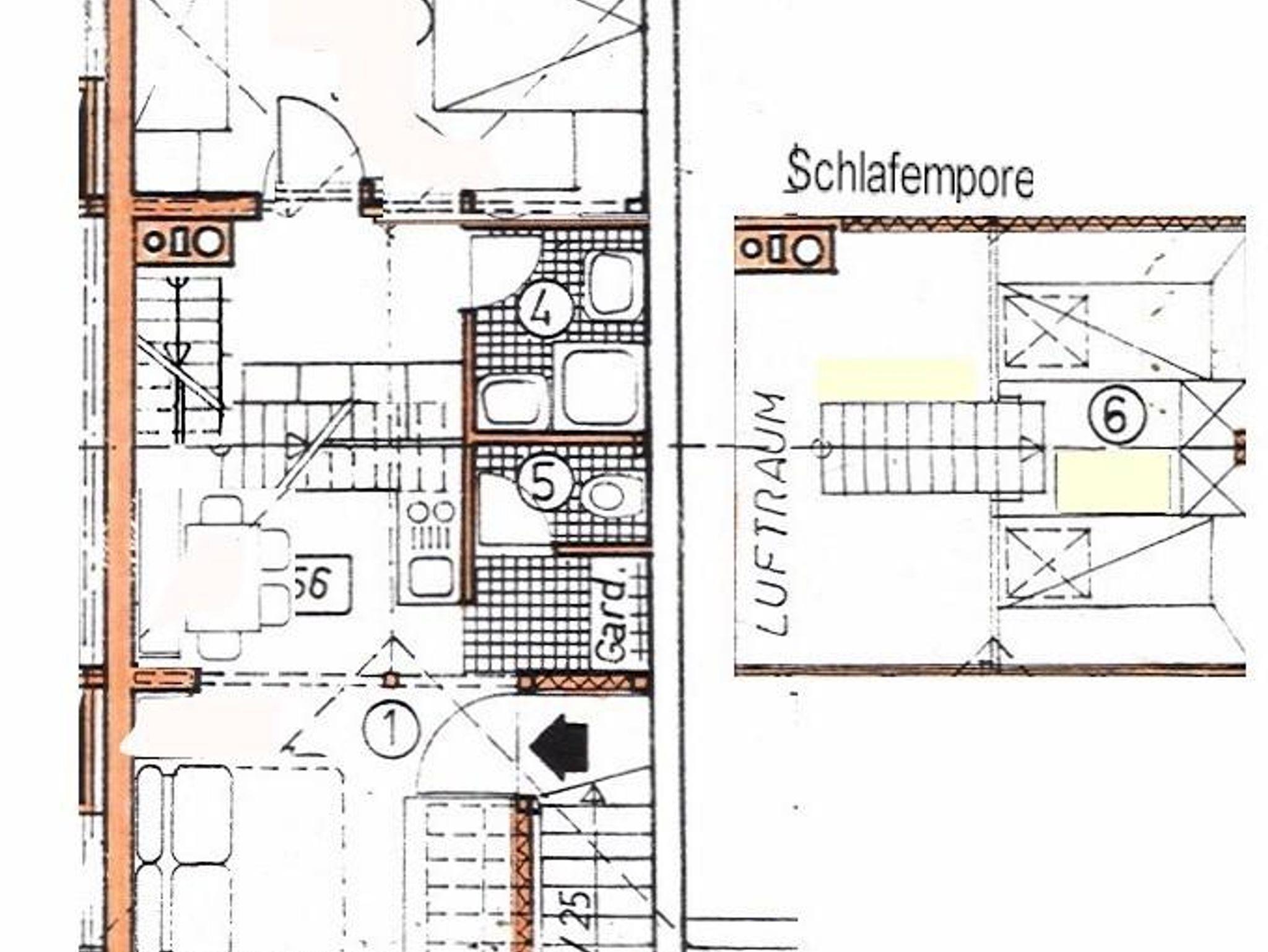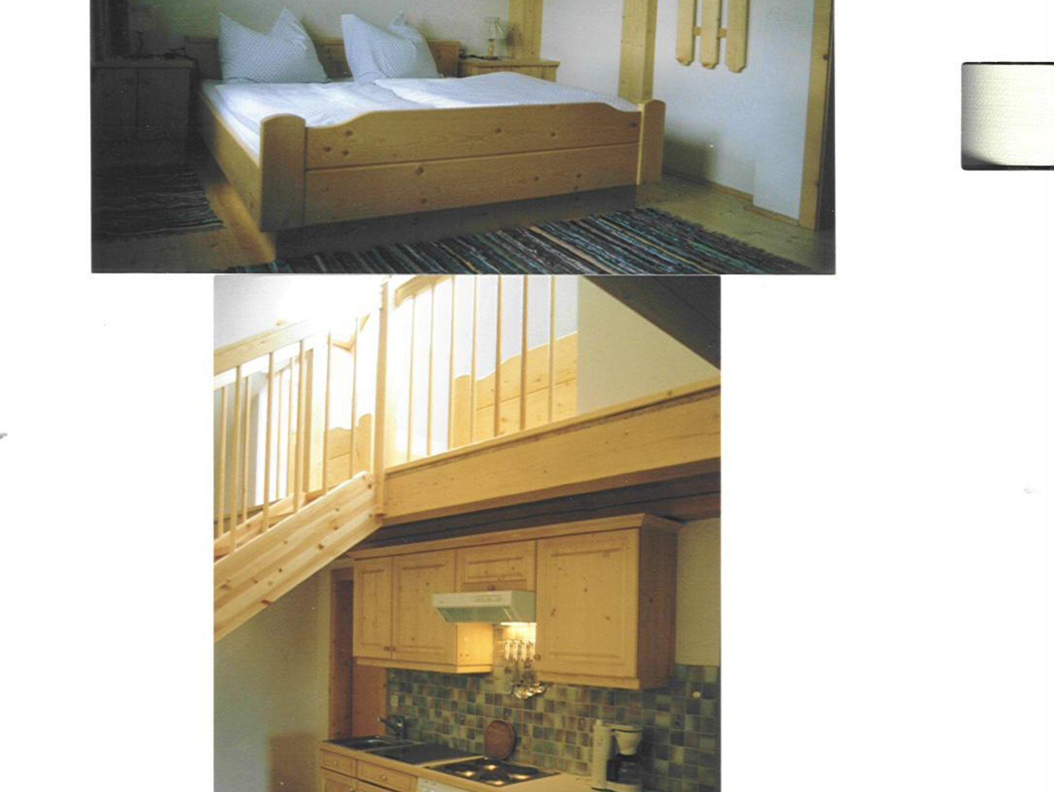Mit viel Holz eingerichtete Wohnung, sehr hell/gemütlich. Großer Wohnraum: Küchenblock ( E-Herd - Backrohr, Kaffeemaschine, Kühlschrank, Geschirrspülmaschine, Geschirr) Eckbank, Couch und einer reizenden Schlafempore- 2 Betten, extra Schlafzimmer mit Doppelbett und Einzelbett DU/WC getrennt, Balkon
