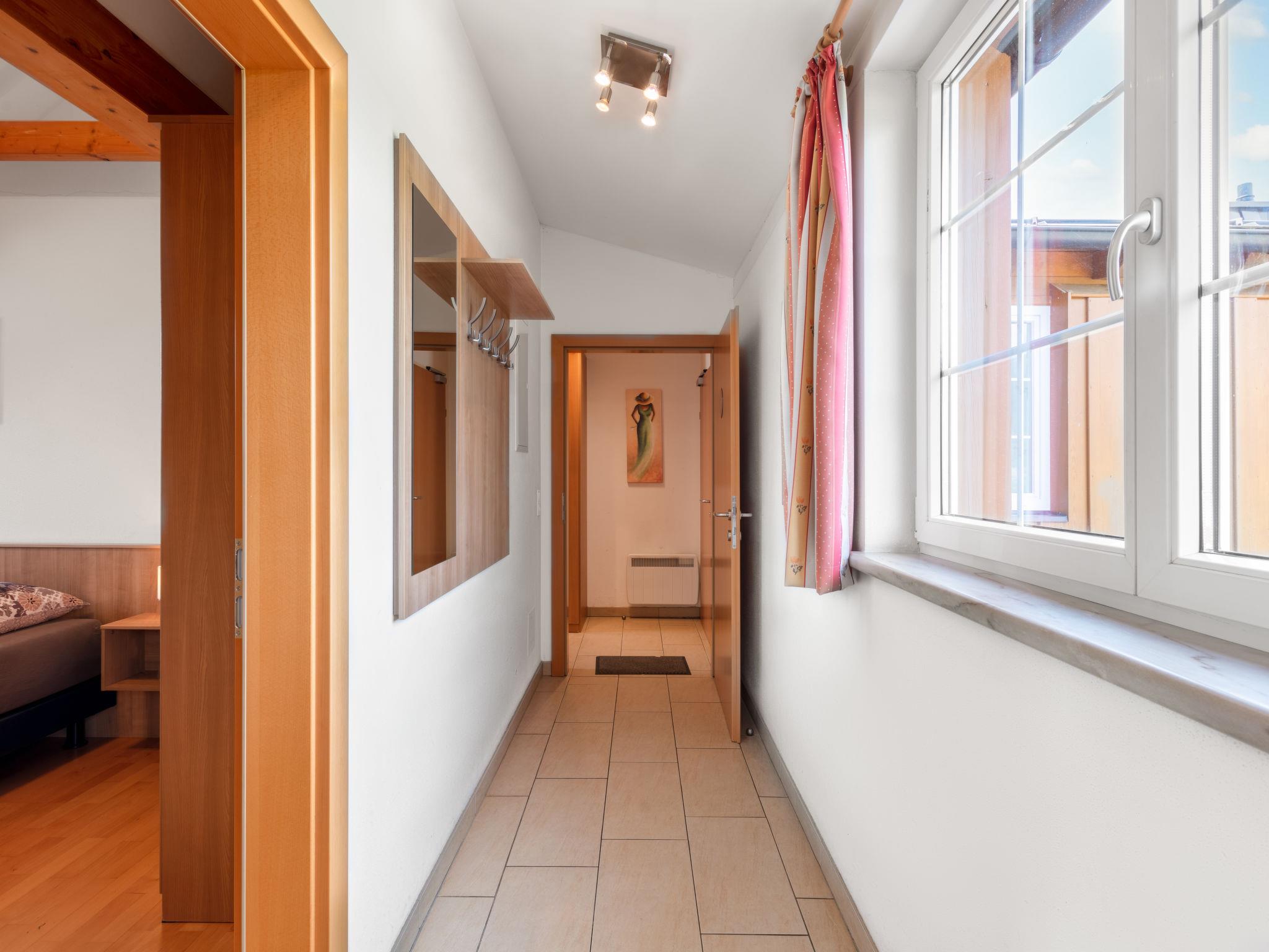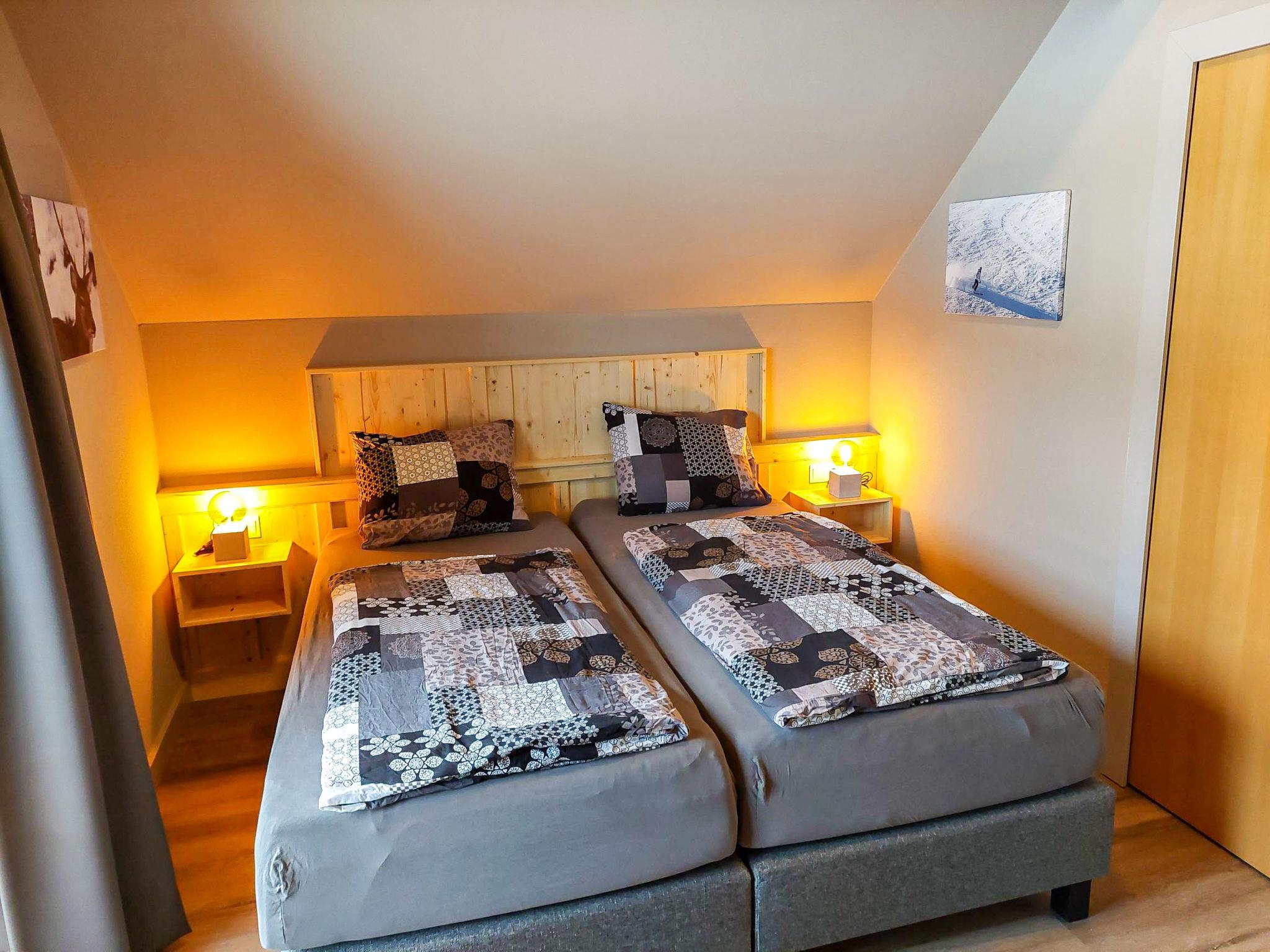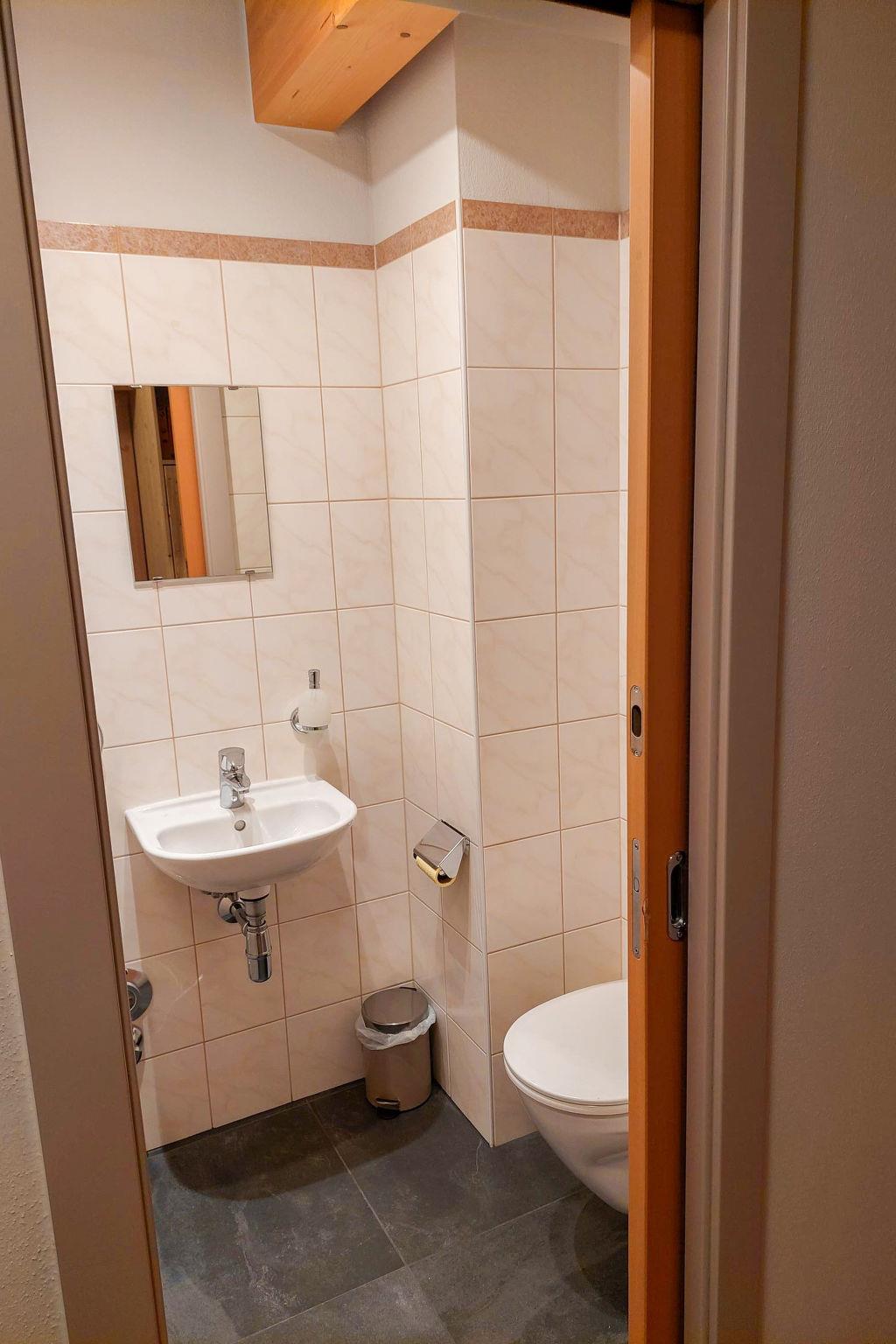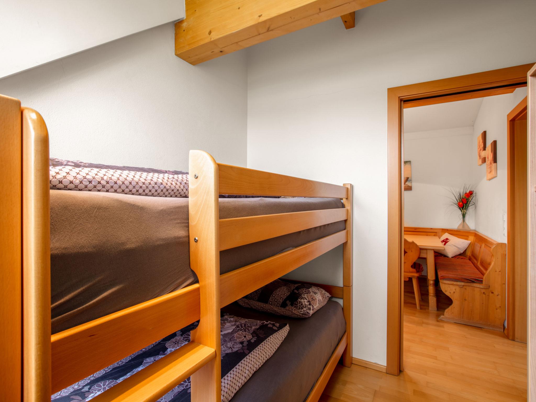 "Top 13", 4-room penthouse 81 m2. Partly with sloping ceilings, comfortable and cosy furnishings: entrance hall. Large living/dining room with 1 double sofabed (160 cm), dining table and satellite TV (flat screen). Exit to the terrace. 1 double bedroom with sliding door. Exit to the balcony. 1 double bedroom. 1 children's room with sliding door with 1 x 2 bunk beds. Open kitchen (oven, dishwasher, 4 ceramic glass hob hotplates, freezer, electric coffee machine). Bath/shower, sep. WC, double hand-basin. Parquet floors. Terrace 13 m2. Terrace furniture. Panoramic view of the ski run and the countryside. Facilities: Internet (WiFi, free). Garage space n 13. Please note: non-smokers only. Fire extinguisher. 50508-025013-2020