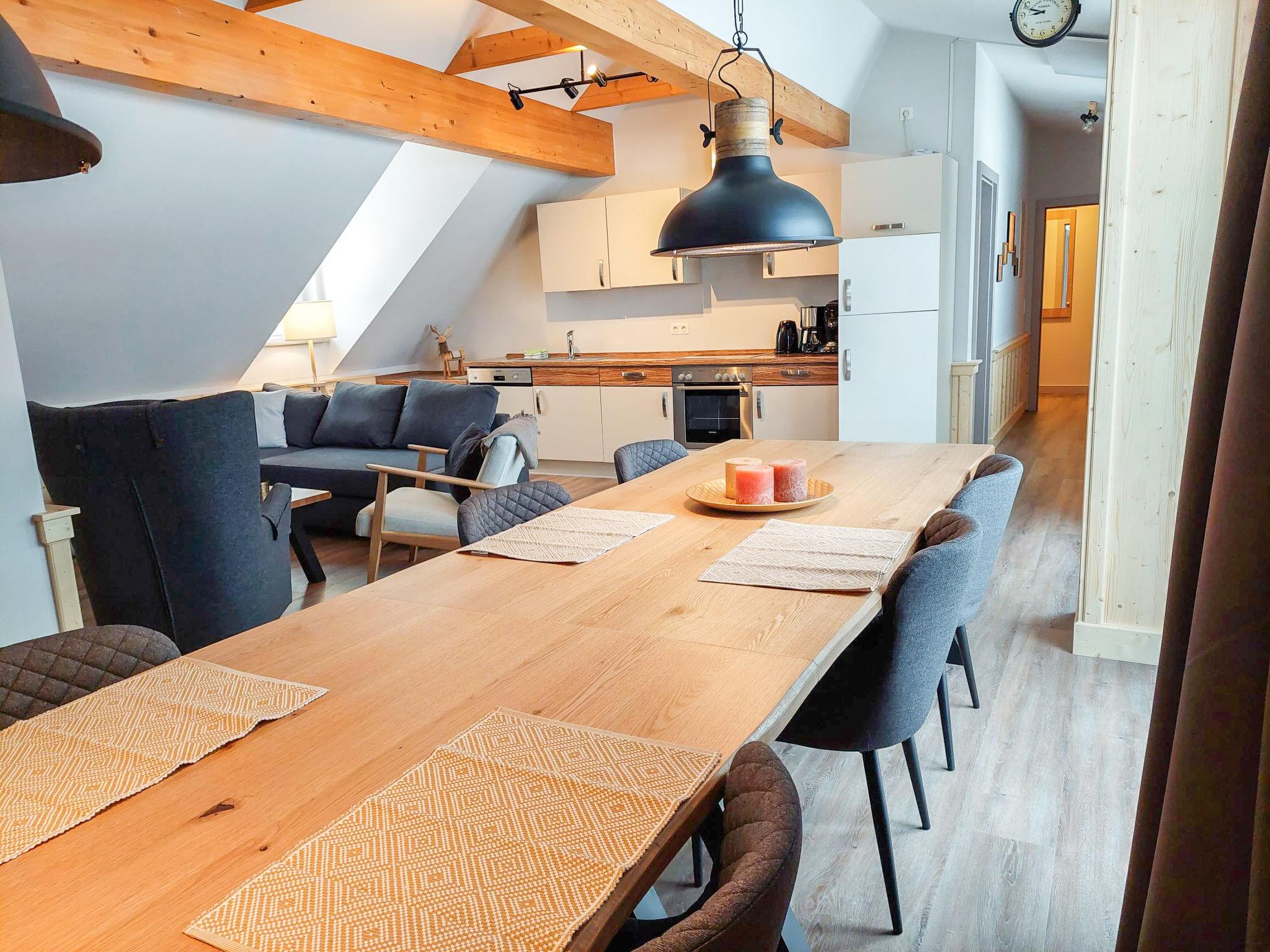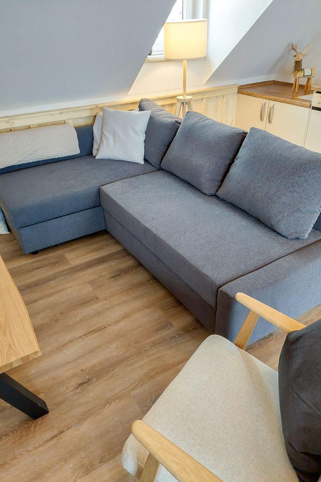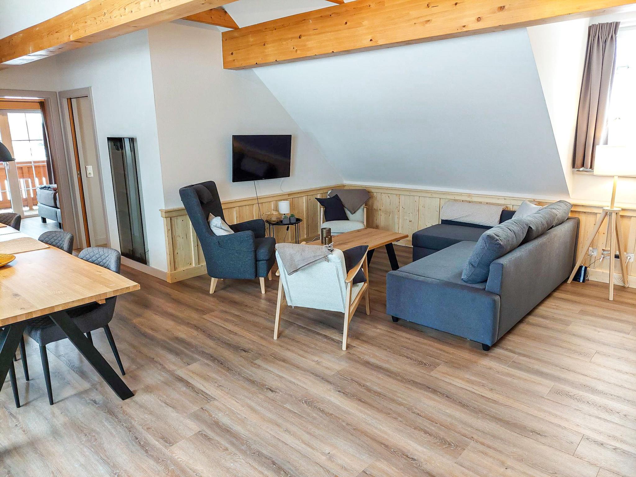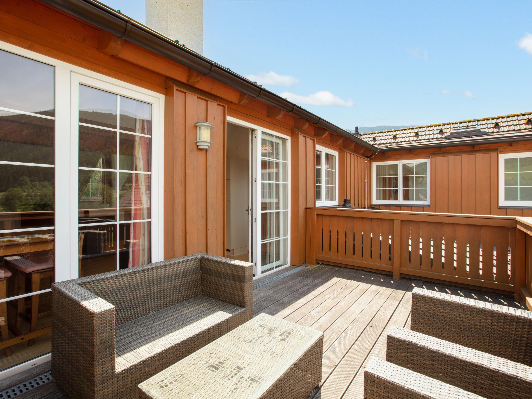 "Top 13", 4-room penthouse 81 m2. Partly with sloping ceilings, comfortable and cosy furnishings: entrance hall. Large living/dining room with 1 double sofabed (160 cm), dining table and satellite TV (flat screen). Exit to the terrace. 1 double bedroom with sliding door. Exit to the balcony. 1 double bedroom. 1 children's room with sliding door with 1 x 2 bunk beds. Open kitchen (oven, dishwasher, 4 ceramic glass hob hotplates, freezer, electric coffee machine). Bath/shower, sep. WC, double hand-basin. Parquet floors. Terrace 13 m2. Terrace furniture. Panoramic view of the ski run and the countryside. Facilities: Internet (WiFi, free). Garage space n 13. Please note: non-smokers only. Fire extinguisher. 50508-025013-2020