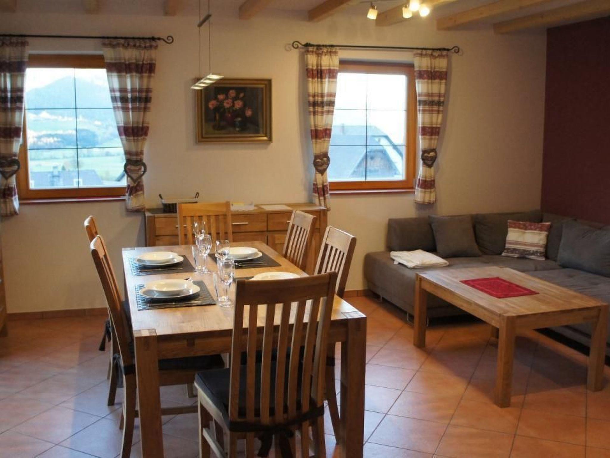 Beautiful brick-built holiday homes in a dream location. You have a marvellous view of the mountains and the world heritage castle Moosham. The beautiful living-dining room with large flat-screen TV and wood-burning stove offers everything you need for a great holiday. the corner kitchen is comfortably equipped and offers: Dishwasher, microwave, coffee machine, oven with ceramic hob, kettle, toaster, egg cooker, plenty of crockery and cutlery.From the living area you can reach the covered veranda with garden furniture with cushions and a barbecue through a double door. On the ground floor there is a utility room with washing machine and tumble dryer and a bathroom with sauna, shower and WC. Another bathroom with shower and WC and Pelipal furniture is on the upper floor. 2 of the 3 bedrooms (with double beds) have direct balcony access. The house is ideal for 1 - 6 people and we also rent to fitters / workers welcome. Non smoking house.
